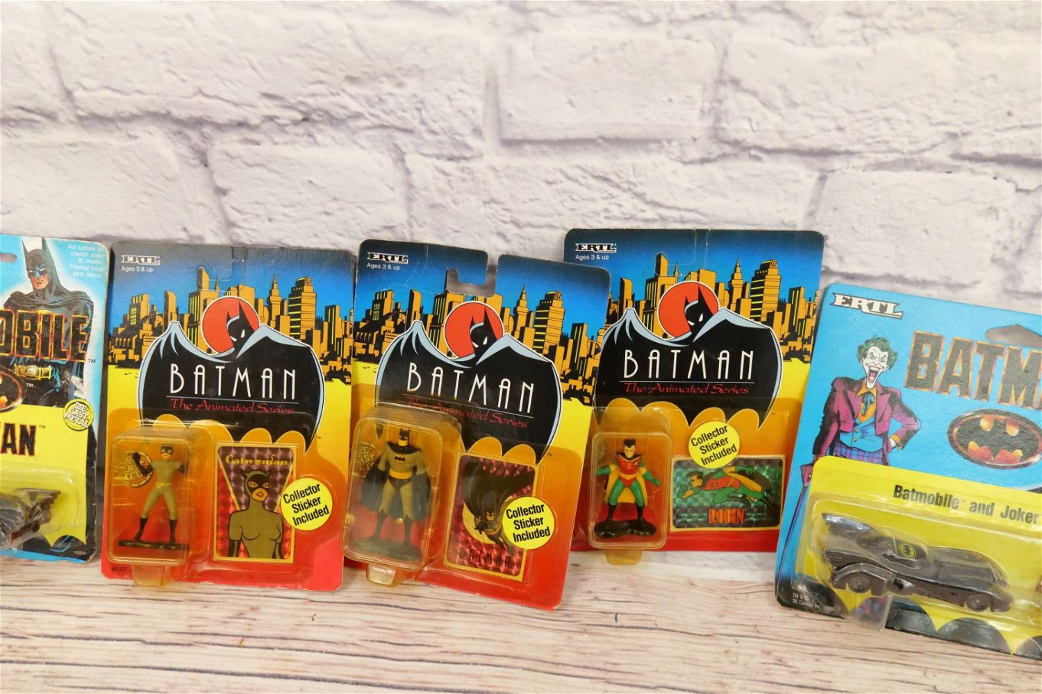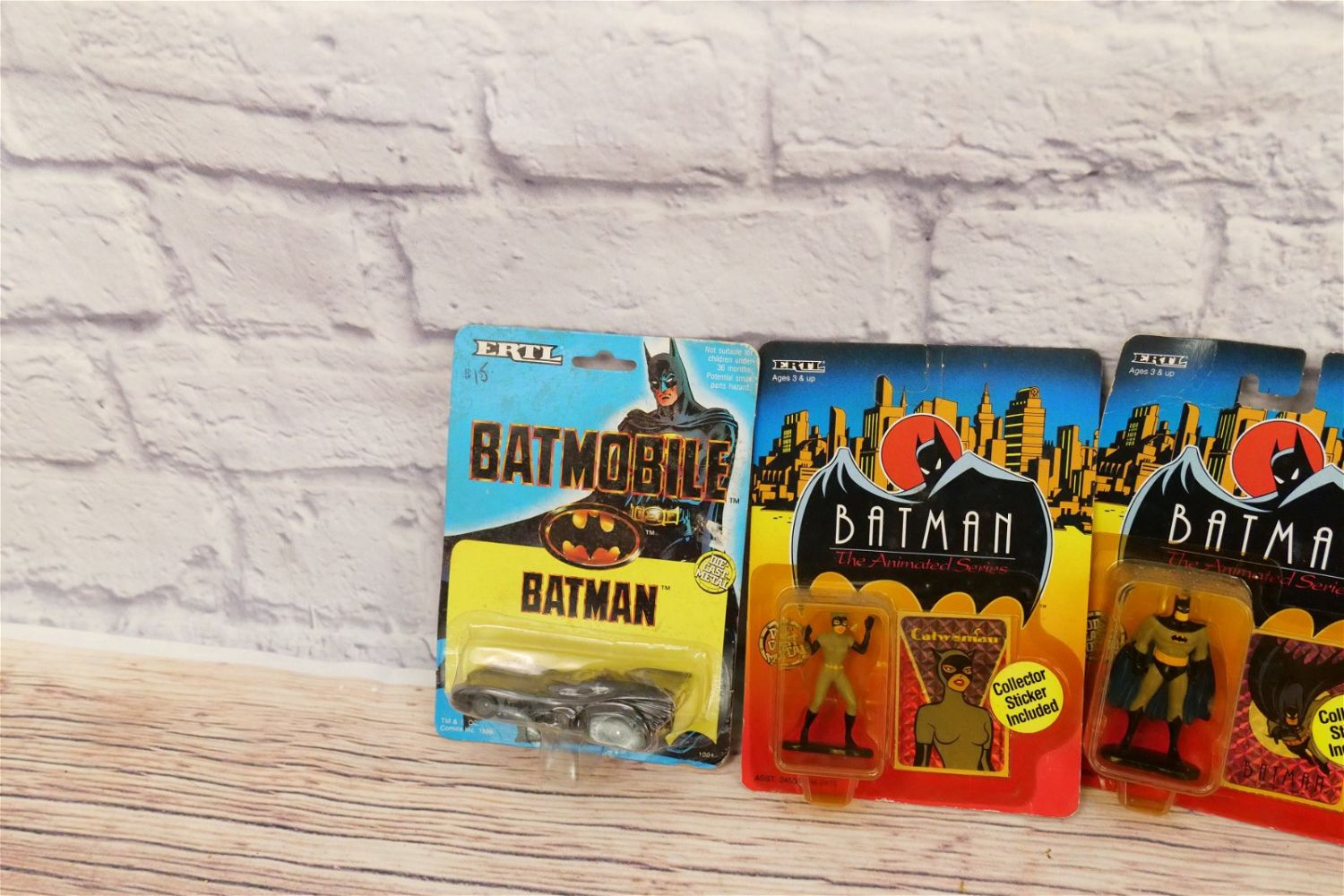 Lot of Vintage Ertl Batman Figures and Cars. All mint on card. Including Batman Animated Series (Robin, Batman, Catwoman), Batman Returns Catwoman, Batman Batmobile, and Joker Van. All invoices must be paid for within 24 hours. We offer multiple shipping options, please read the terms as they have changed. We also offer pick ups on Friday, Saturday and Monday immediately following the sale BY APPOINTMENT ONLY. PLEASE READ THE TERMS!!!
