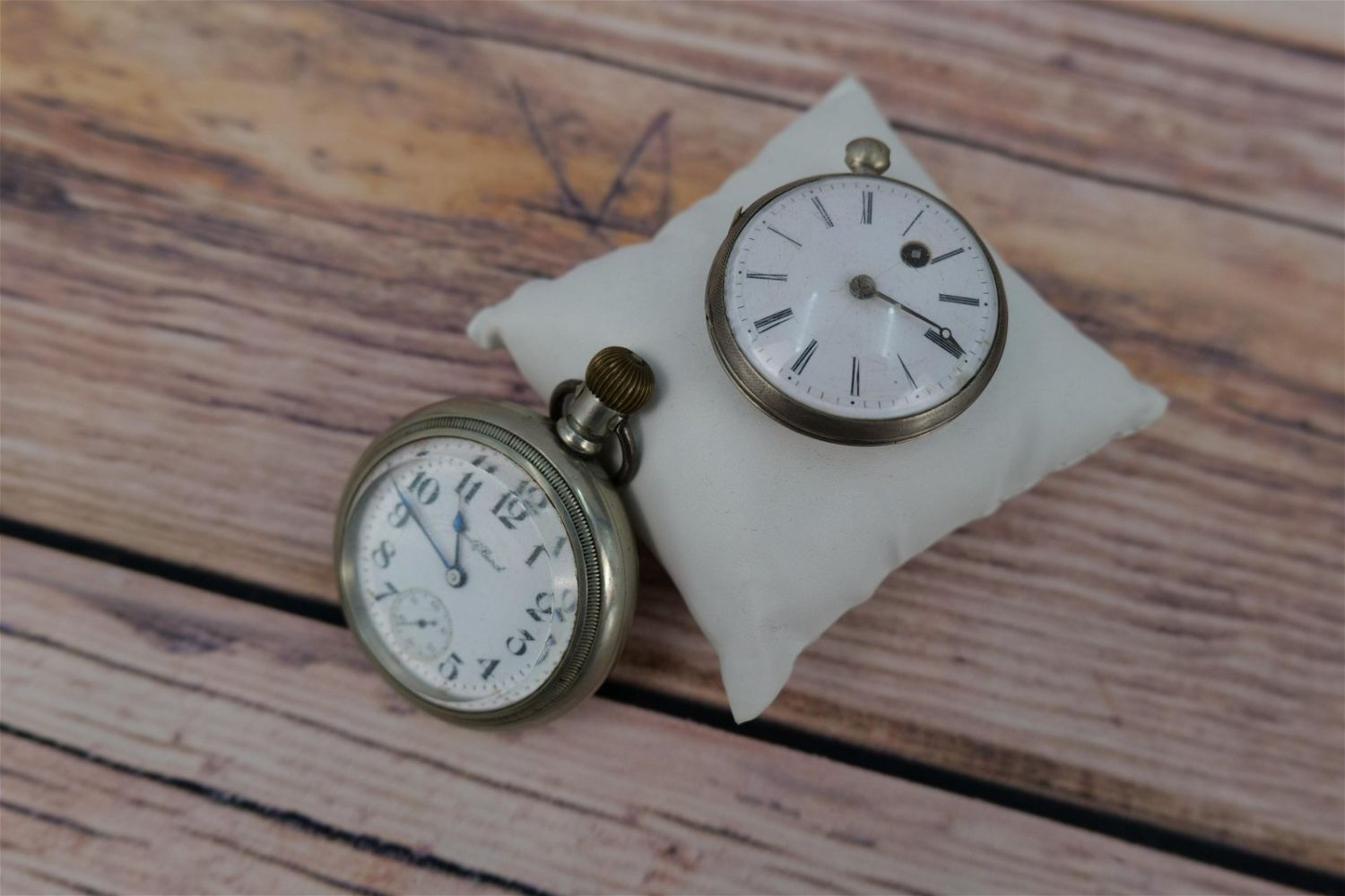 Lot of 2 Silvertone Pocket Watches. The larger of the 2 is South Bend and other is unmarked. Not in running condition. All invoices must be paid for within 24 hours. We offer multiple shipping options, please read the terms as they have changed. We also offer pick ups on Friday, Saturday and Monday immediately following the sale BY APPOINTMENT ONLY. PLEASE READ THE TERMS!!!