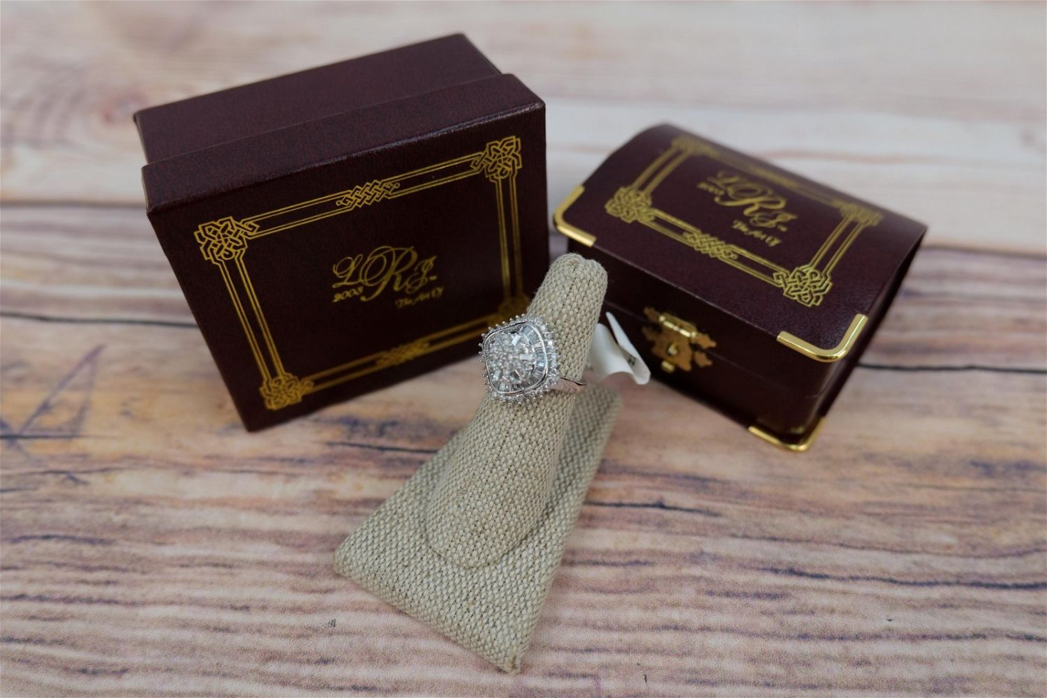 14K white gold ladies ring with many, many round and baguette cut diamonds all over the front of the ring. Size 6. Marked on the inside of the band. Comes with the original box, outer box and tags still attached. All invoices must be paid for within 24 hours. We offer multiple shipping options, please read the terms as they have changed. We also offer pick ups on Friday, Saturday and Monday immediately following the sale BY APPOINTMENT ONLY. PLEASE READ THE TERMS!!!