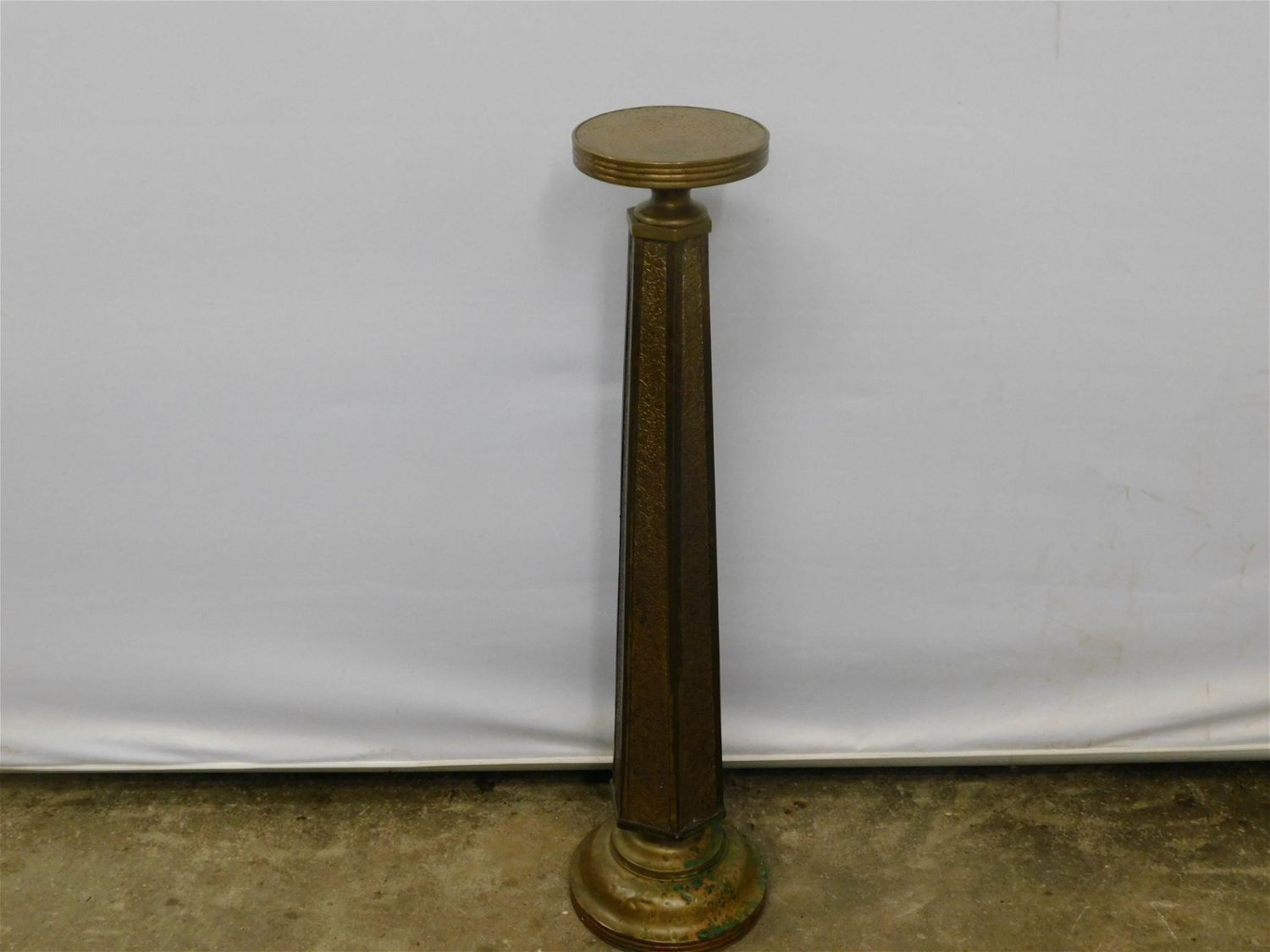 Art Nouveau Hand Hammered Copper Pedestal. Has green tarnishing to base. Could be buffed out. Measures 40" tall x 10" diameter. All invoices must be paid within 24 hours of the sale. All items are local pick up or UPS shipping and will be billed separately. PLEASE READ THE TERMS. Local pickups are at our Monmouth Junction location on Thursday, Friday, Saturday and Monday ONLY! All pickups are by appointment only. Any condition issues will be listed in the description. Please read the terms for full information.