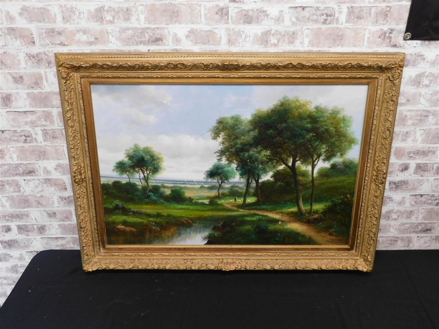 Contemporary oil on canvas landscape scene with shepherd and sheep. Signed lower left – signature illegible. In excellent condition. Measures approx. 32" t x 43 1/2" w x 2" d. All invoices must be paid for within 24 hours. We offer multiple shipping options, please read the terms as they have changed. We also offer pick ups on Friday, Saturday and Monday immediately following the sale BY APPOINTMENT ONLY. PLEASE READ THE TERMS!!!