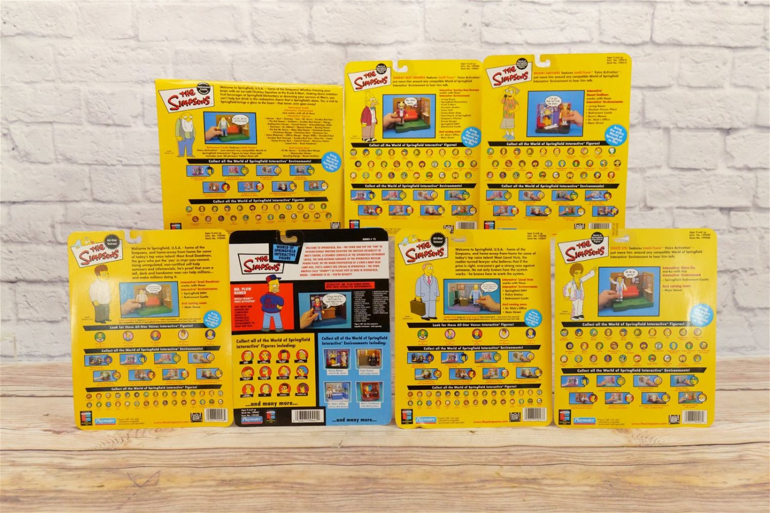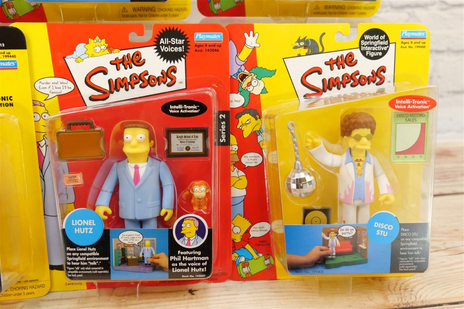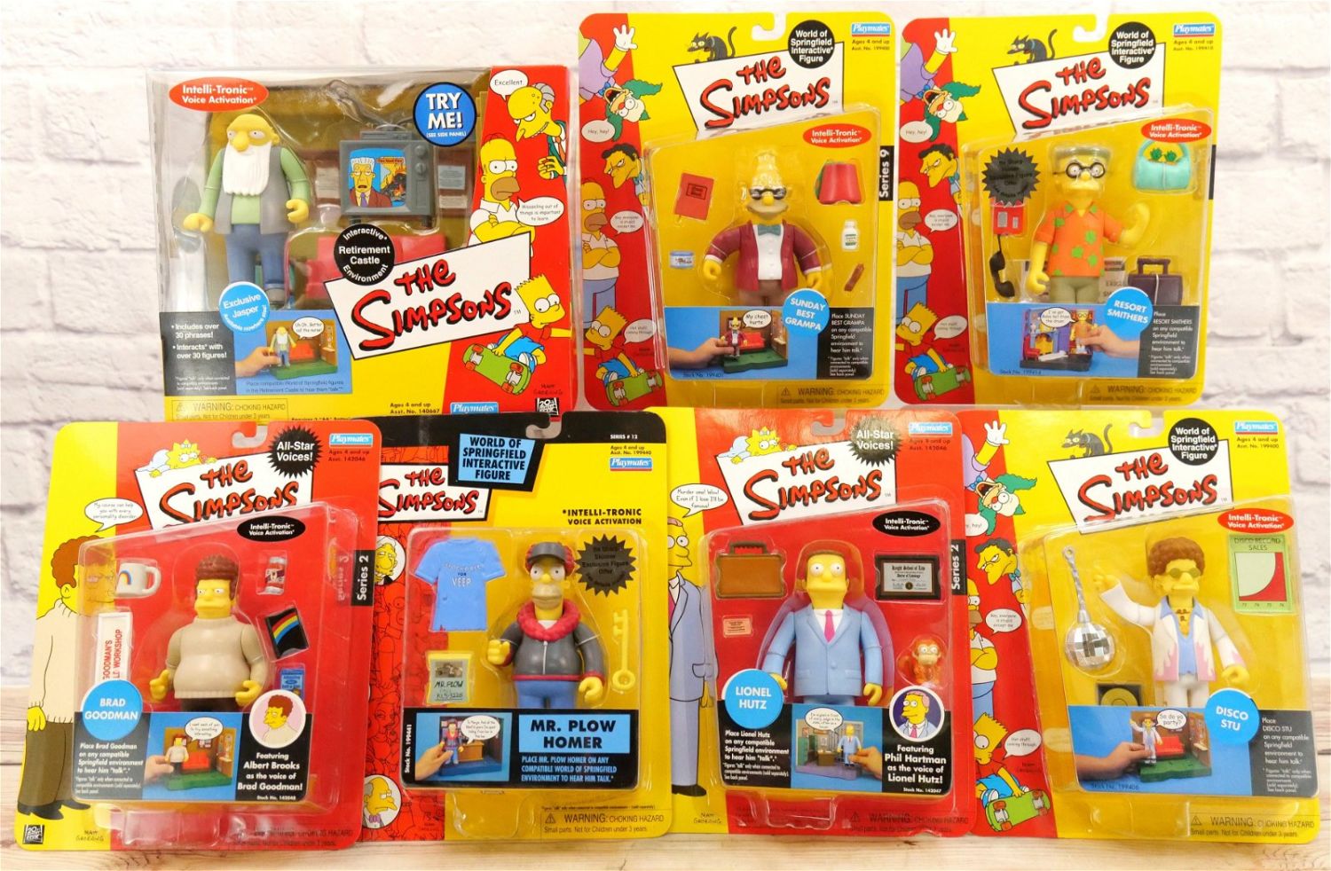 Lot of The Simpsons Interactive Figures by Playmates including Interactive Retirement Castle Environment, Lionel Hutz, Mr. Plow Homer, Resort Smithers, Sunday Best Grampa, Disco Stu and Brad Goodman. All new in packages. All invoices must be paid within 24 hours of the sale. We offer multiple shipping options, please read the terms as they have changed. We also offer Pick-Ups Friday, Saturday, and Monday immediately following the sale. BY APPOINTMENT ONLY. PLEASE READ THE NEW TERMS!!!