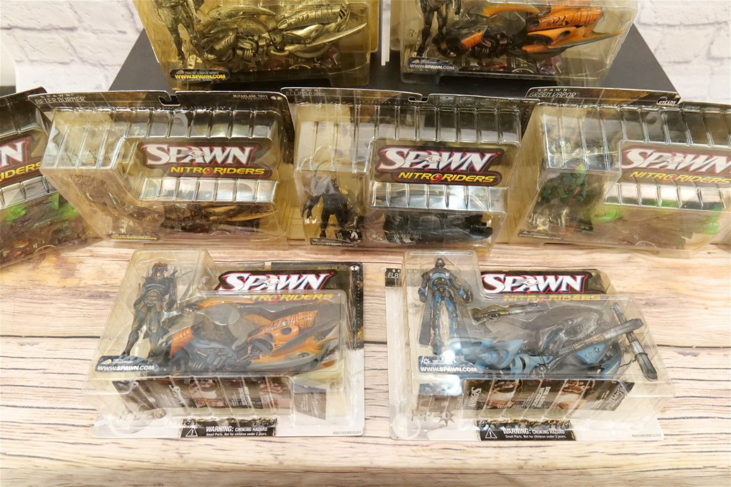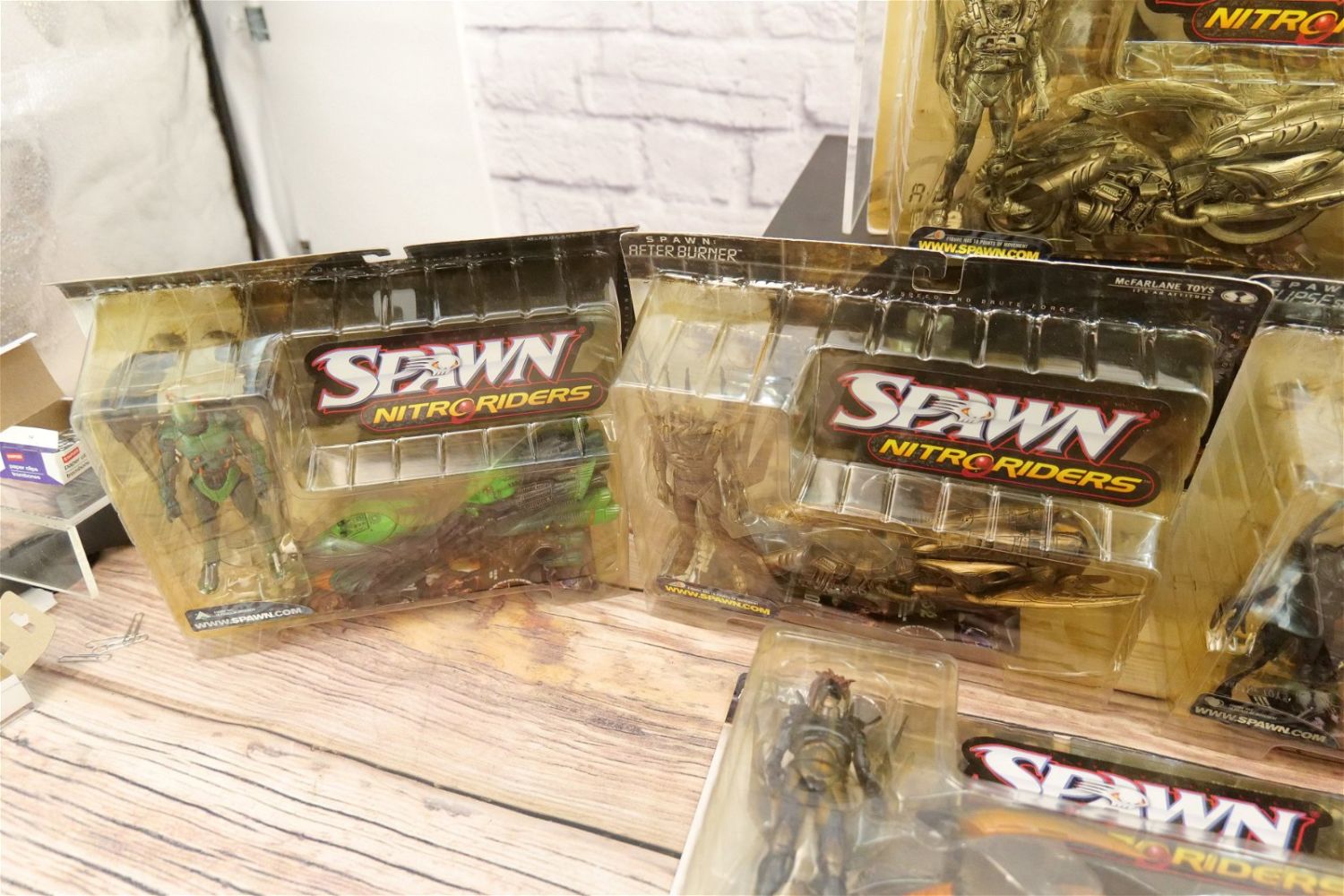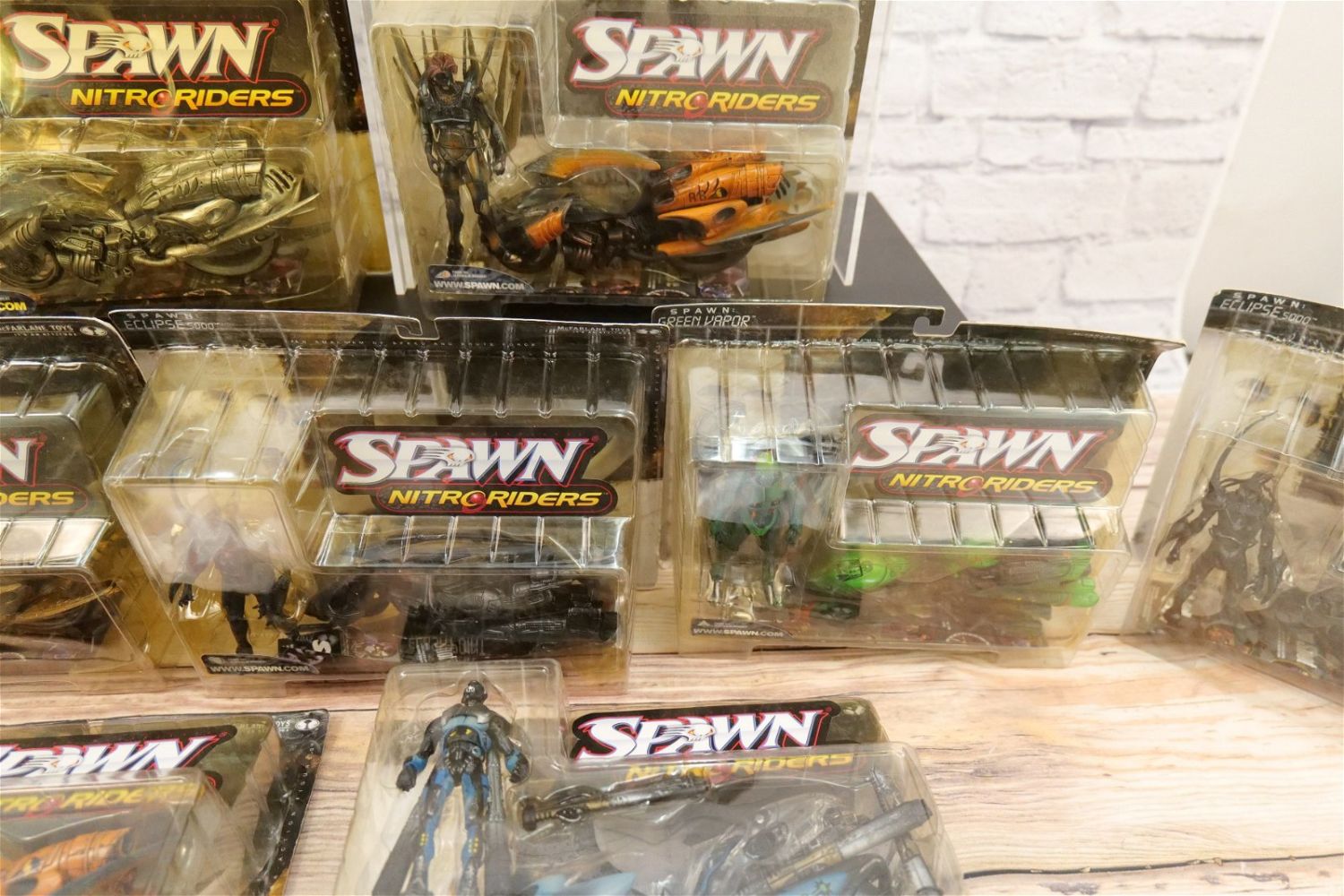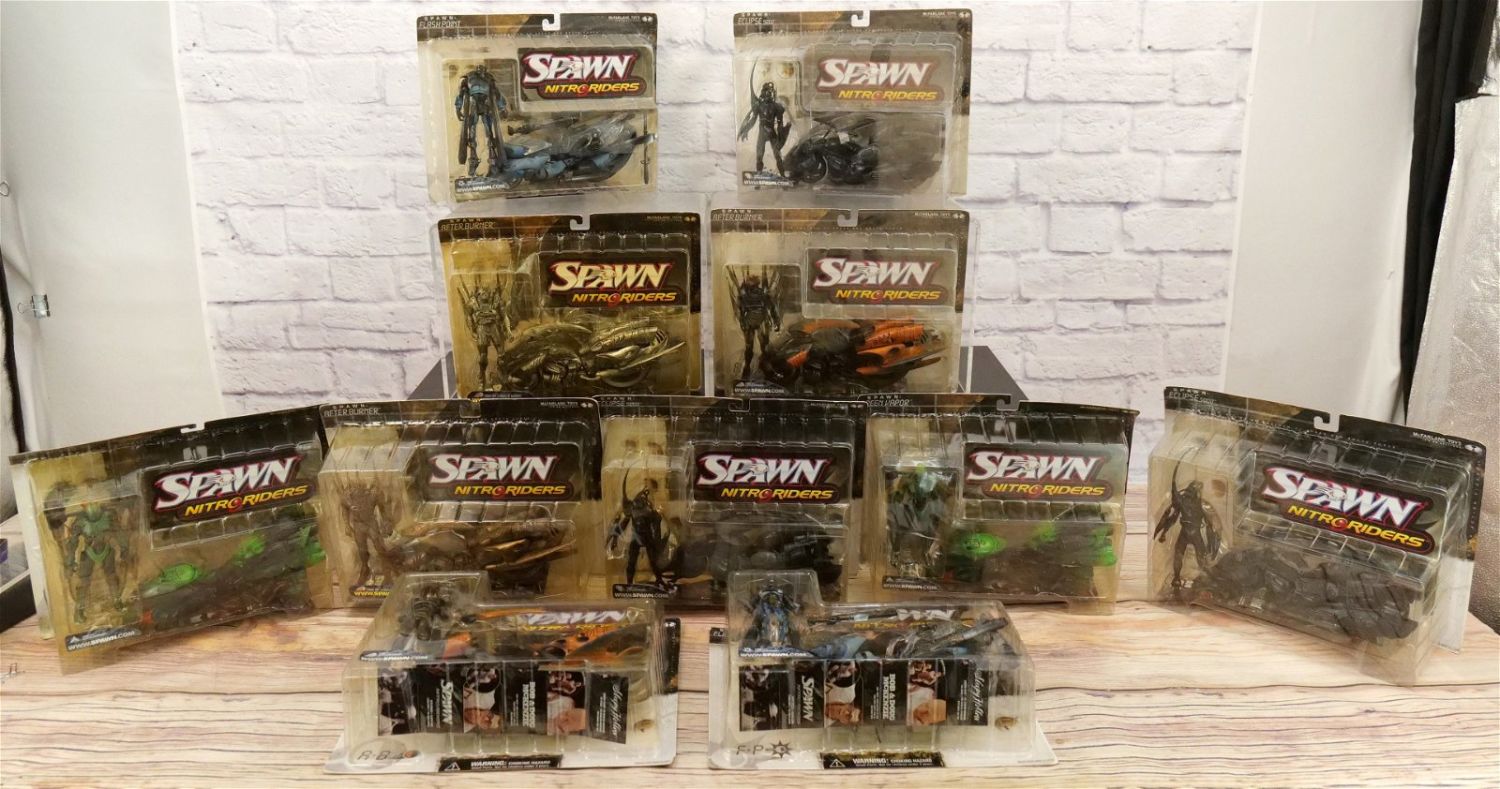 Lot of 11 Spawn Nitroriders Action Figures. All sealed in package. Some discoloration to the blister packs. All invoices must be paid within 24 hours of the sale. We offer multiple shipping options, please read the terms as they have changed. We also offer Pick-Ups Friday, Saturday, and Monday immediately following the sale. BY APPOINTMENT ONLY. PLEASE READ THE NEW TERMS!!!