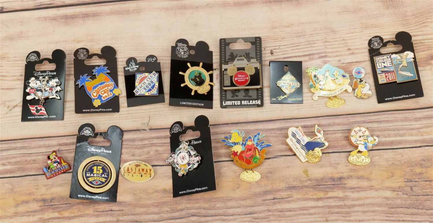 Lot of 16 Disney Vacations and Resort Pins including DCL, Beach Club, and Castaway Cay. Various Characters featured include Sebastian & Flounder, Donald, Lady, Mickey and More. Flounder is loose from pin and will need a repair. Some are Limited Editions. Approx. half come on card backs. All invoices must be paid within 24 hours of the sale. We offer multiple shipping options, please read the terms as they have changed. We also offer Pick-Ups Thursday, Friday, Saturday, and Monday immediately following the sale. BY APPOINTMENT ONLY. PLEASE READ THE NEW TERMS!!!