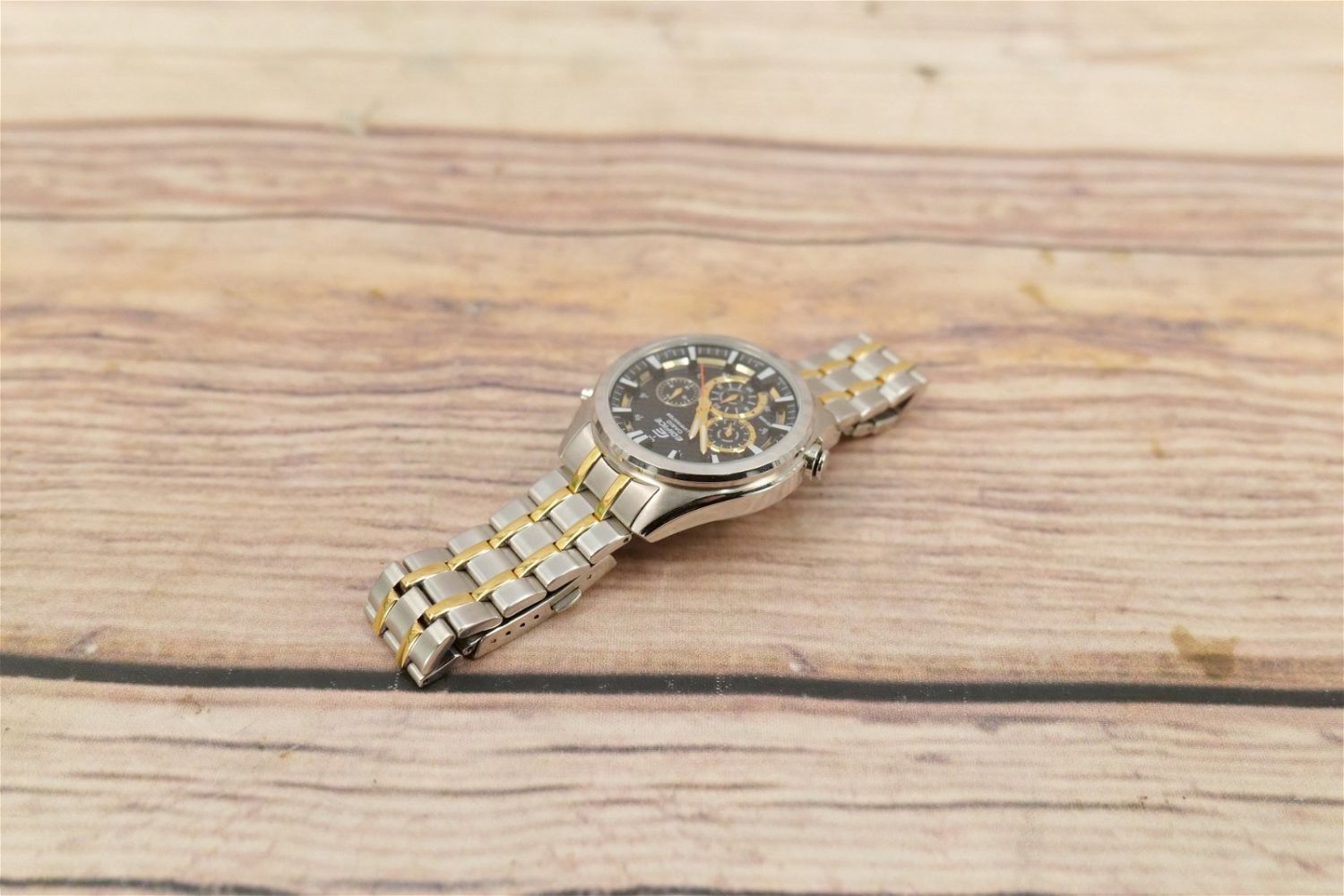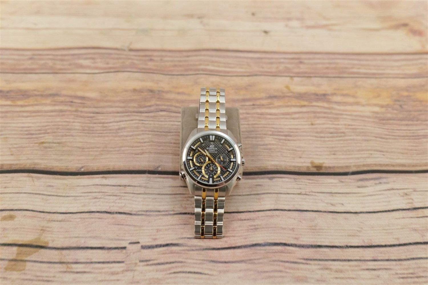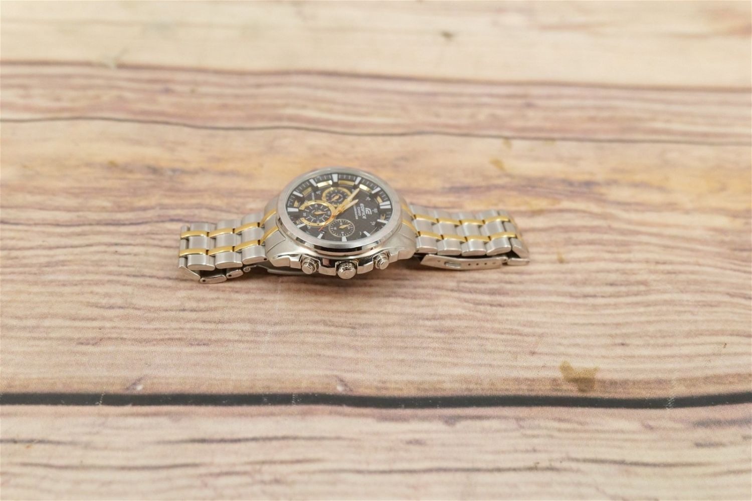 Casio Edifice Neon Illuminator Two Tone Men’s Stainless Steel Watch. Japan Movement. Water Resistant – 100 Meters. Wrist measures 6.5". All invoices must be paid within 24 hours of the sale. We offer multiple shipping options, please read the terms as they have changed. We also offer Pick-Ups Friday, Saturday, and Monday immediately following the sale. BY APPOINTMENT ONLY. PLEASE READ THE NEW TERMS!!!