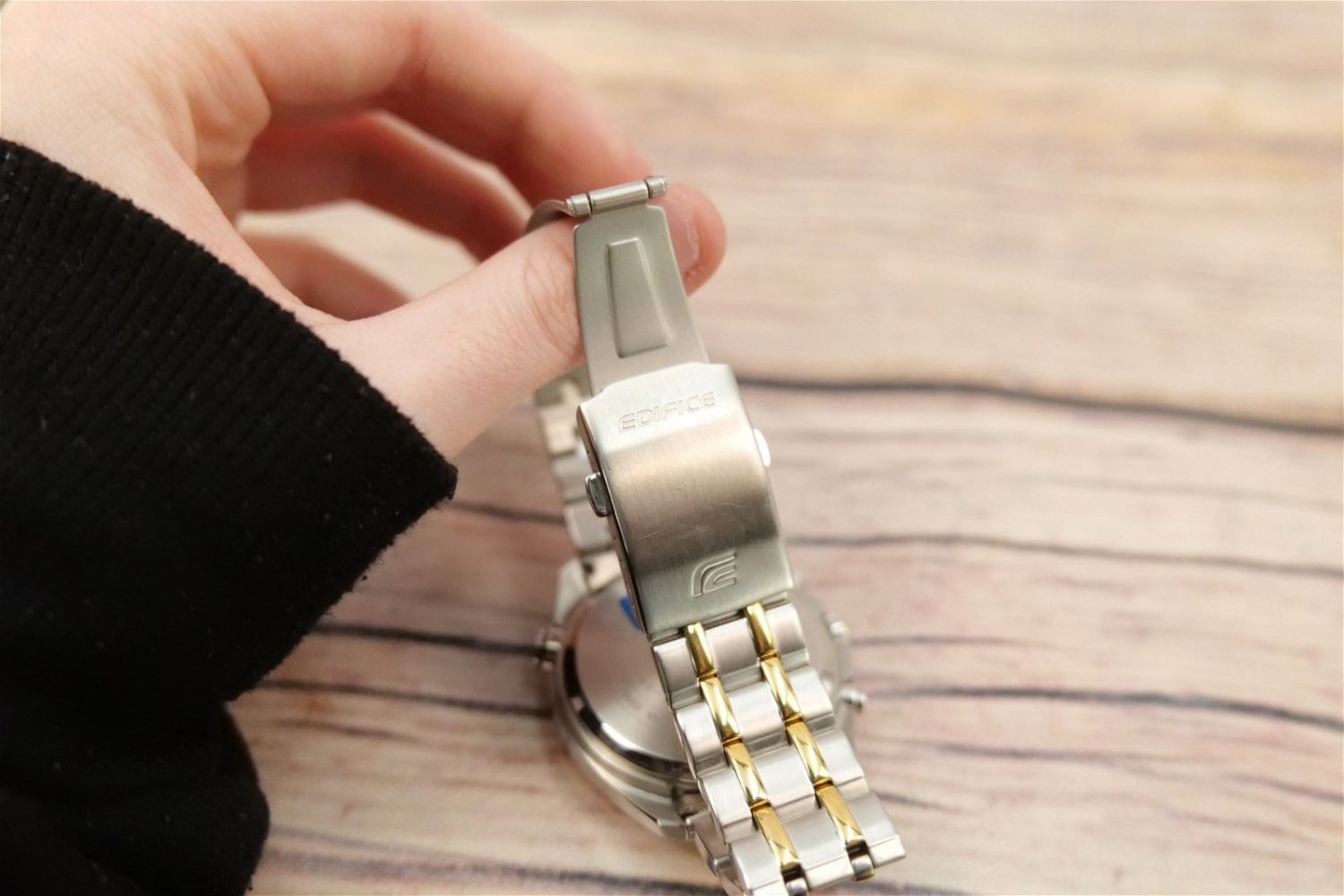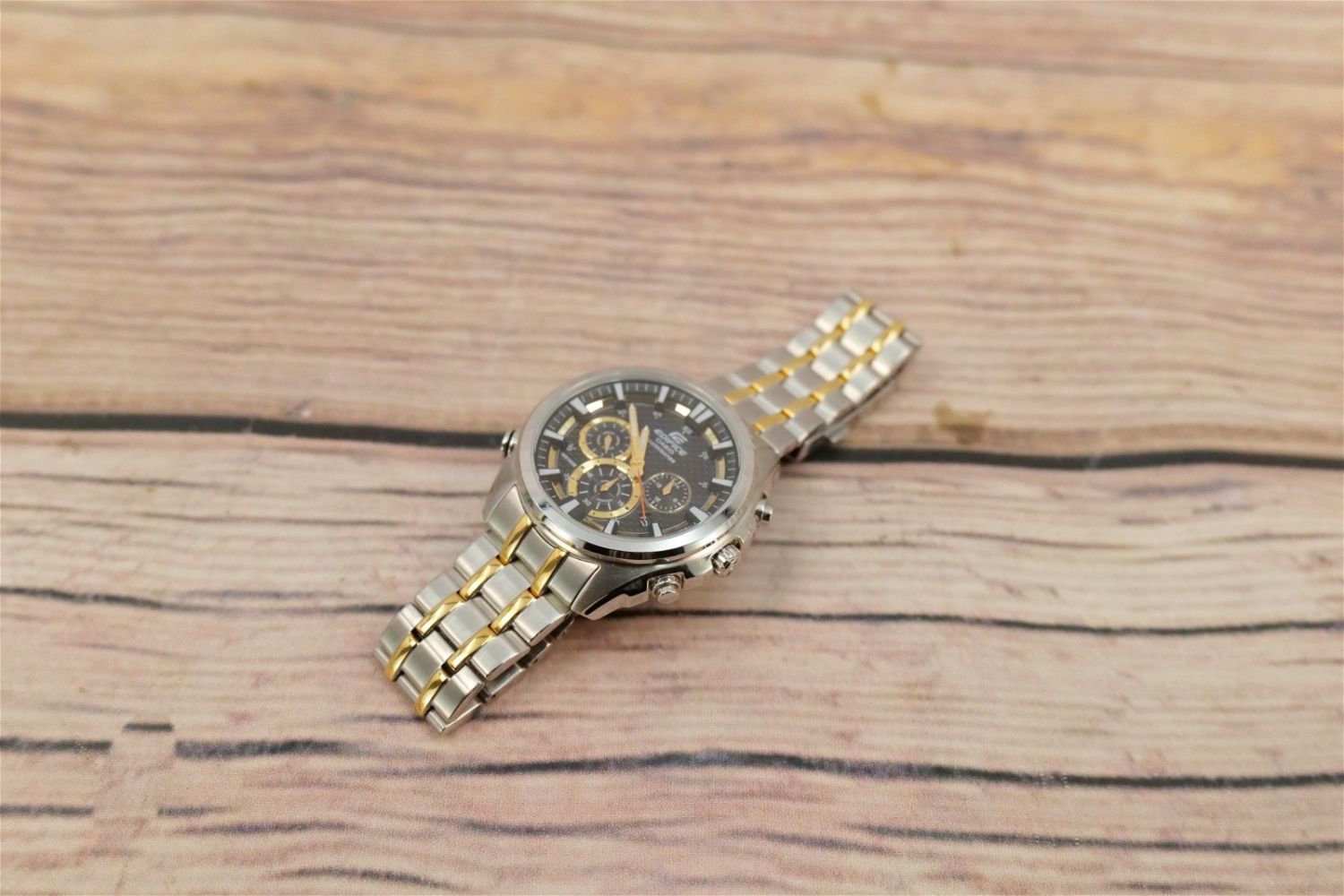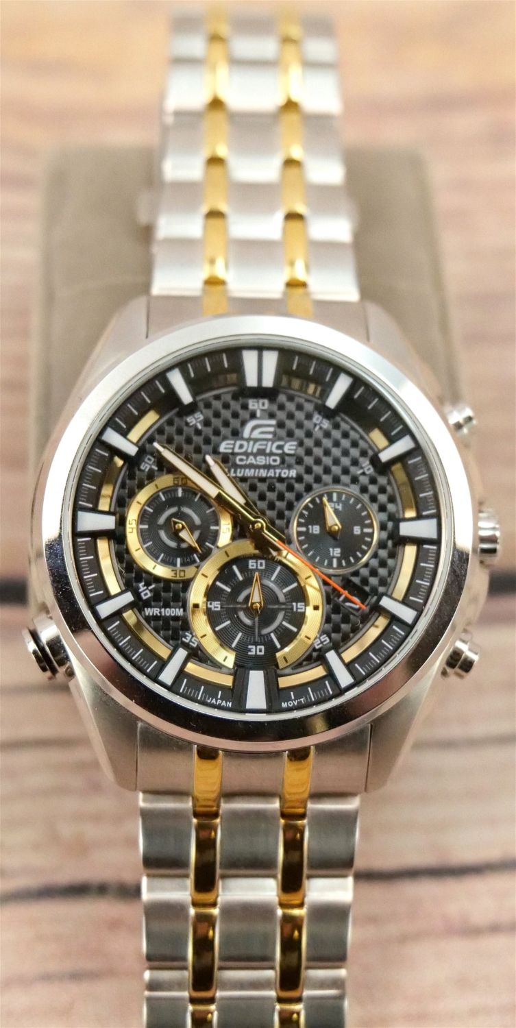 Casio Edifice Neon Illuminator Two Tone Men’s Stainless Steel Watch. Japan Movement. Water Resistant – 100 Meters. Wrist measures 6.5". All invoices must be paid within 24 hours of the sale. We offer multiple shipping options, please read the terms as they have changed. We also offer Pick-Ups Friday, Saturday, and Monday immediately following the sale. BY APPOINTMENT ONLY. PLEASE READ THE NEW TERMS!!!