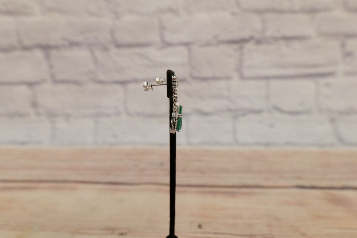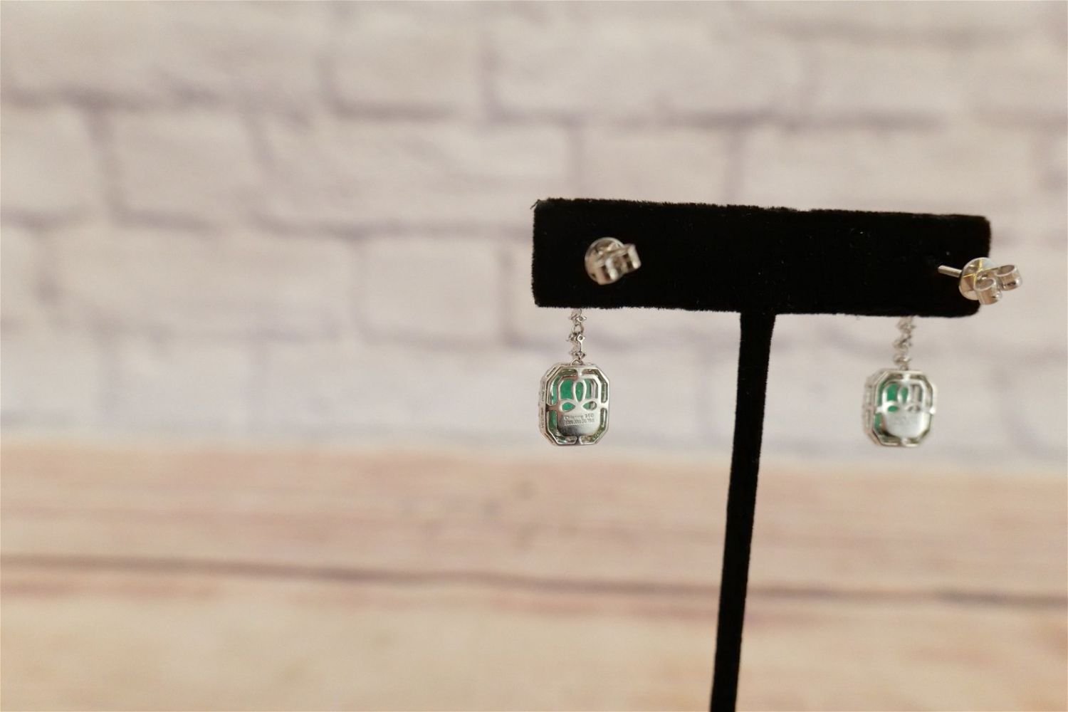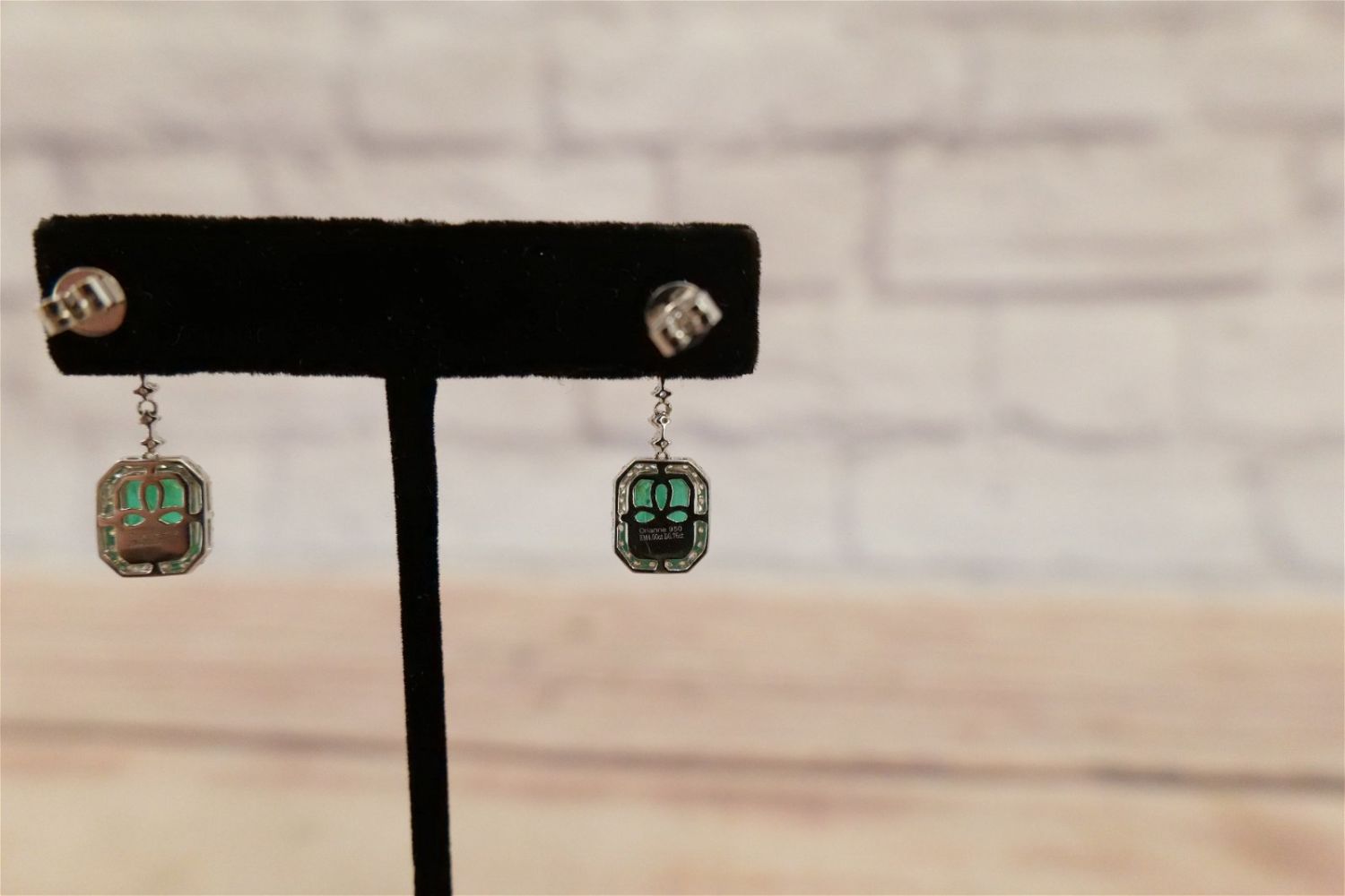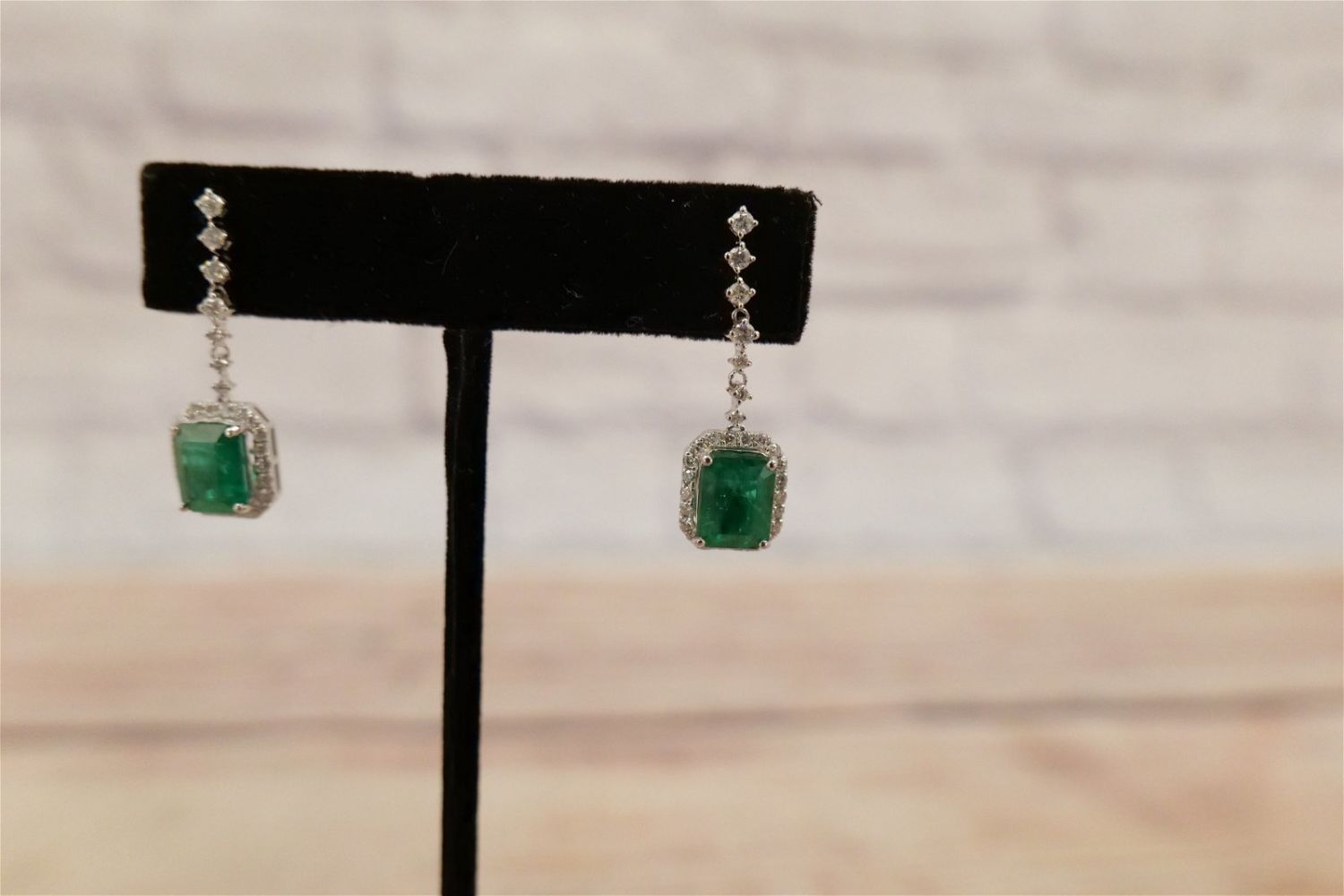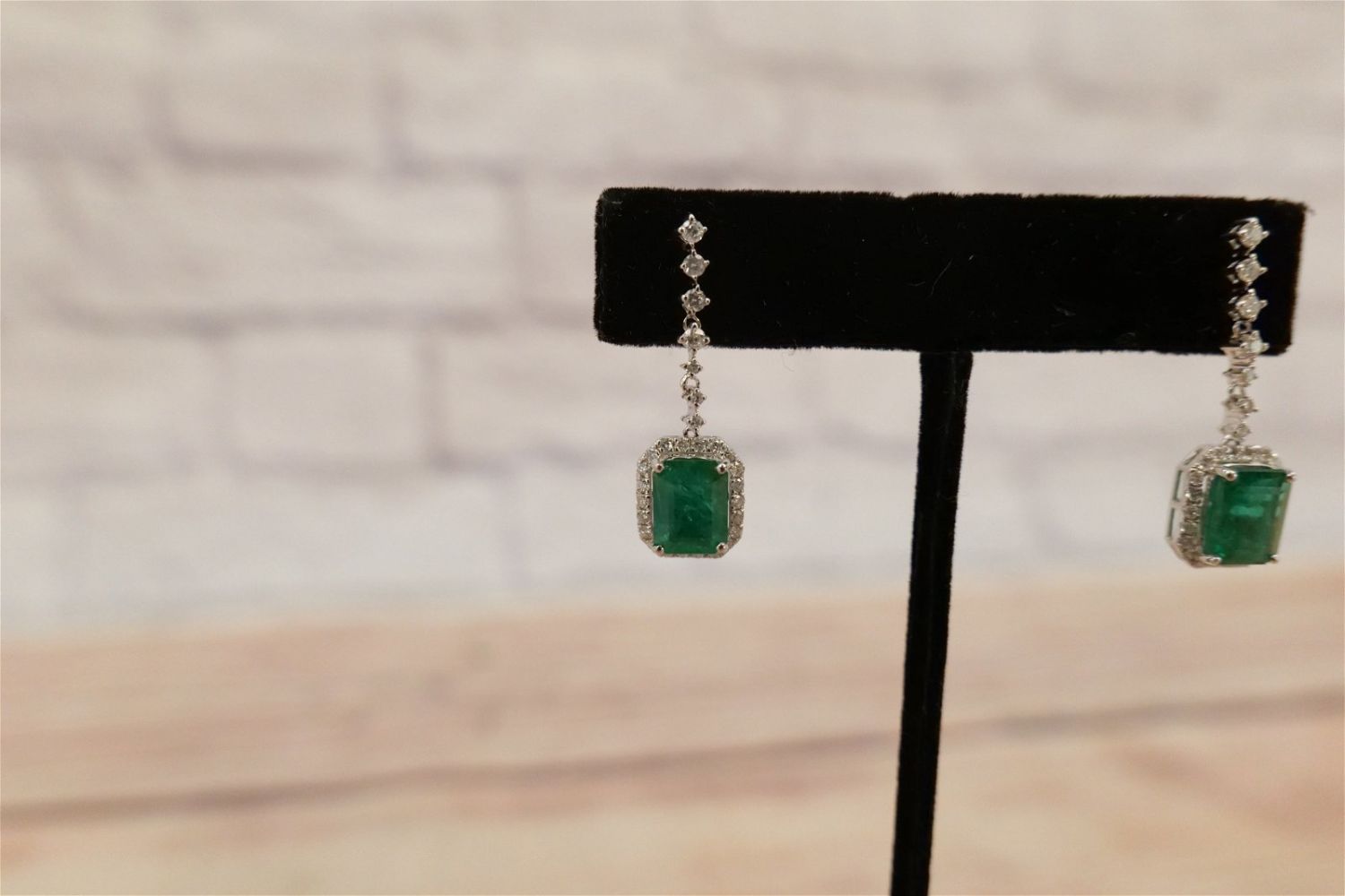 Platinum, Emerald, & Diamond Earrings. Mounted with 2 genuine faceted emeralds weighing approx. 4 carats and 58 genuine faceted diamonds weighing approx. .76 carats. Comes with AIGL Report. All invoices must be paid within 24 hours of the sale. We offer multiple shipping options, please read the terms as they have changed. We also offer Pick-Ups Friday, Saturday, and Monday immediately following the sale. BY APPOINTMENT ONLY. PLEASE READ THE NEW TERMS!!!