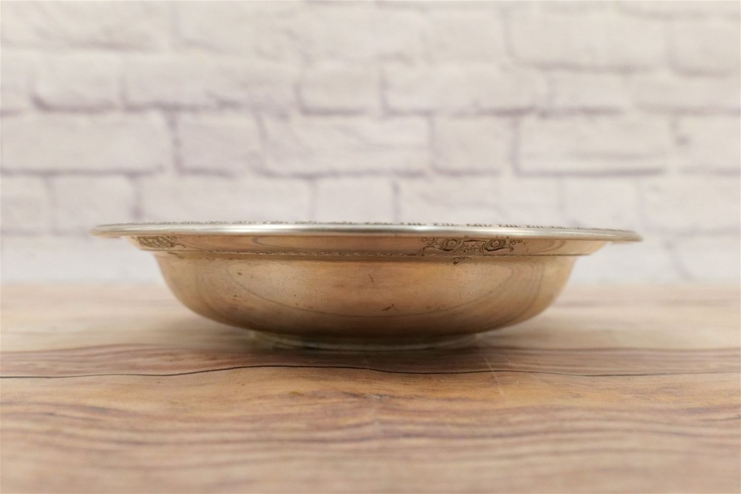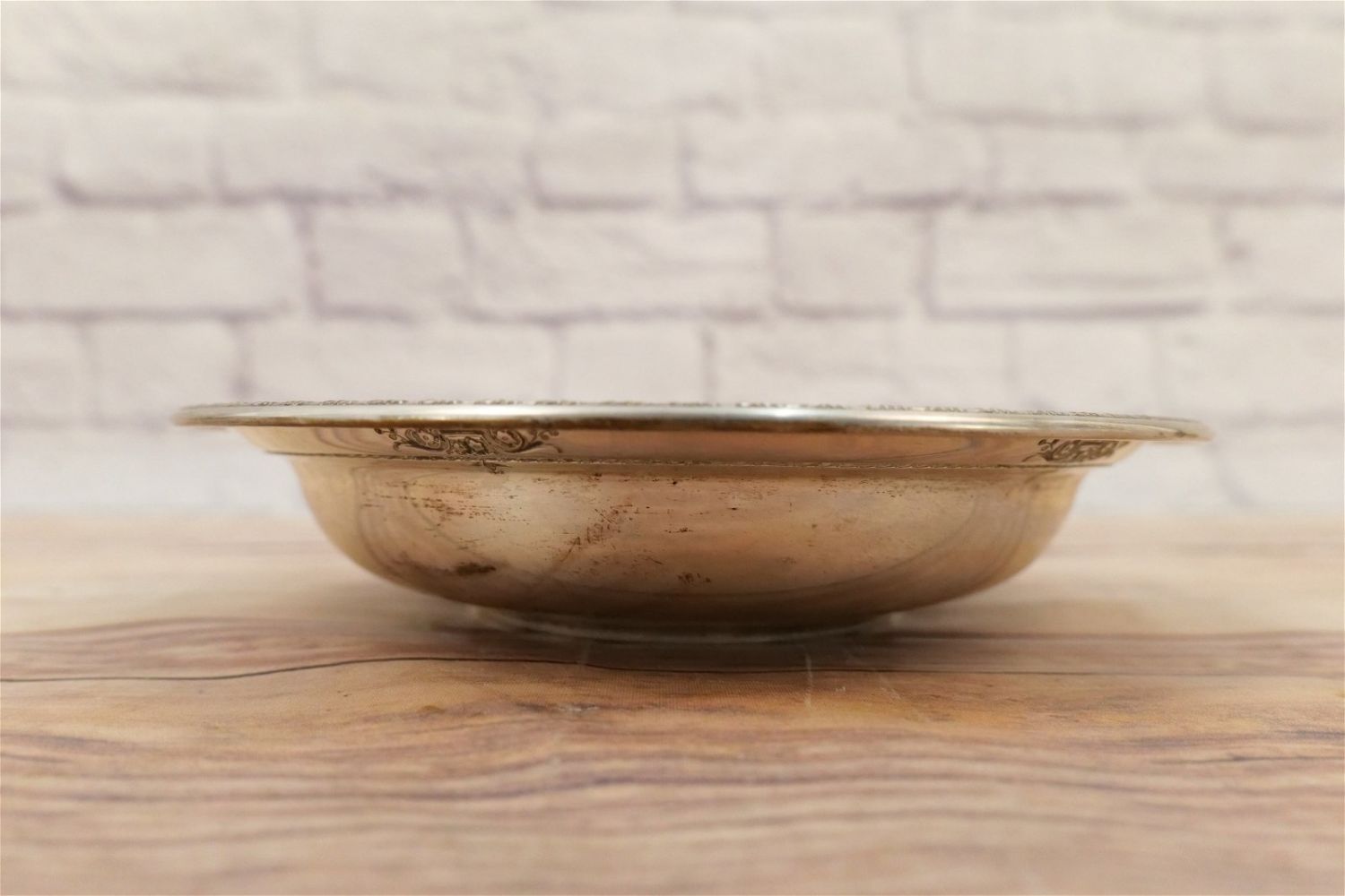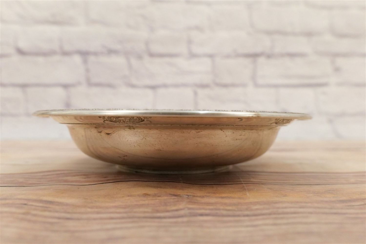 Wallace Sterling Silver Bowl with Decorative Rim and Flower Design. Marked Wallace 4275-9. Weighs approx. 10.1 oz. Measures 10" diameter. All invoices must be paid within 24 hours of the sale. We offer multiple shipping options, please read the terms as they have changed. We also offer Pick-Ups Friday, Saturday, and Monday immediately following the sale. BY APPOINTMENT ONLY. PLEASE READ THE NEW TERMS!!!
