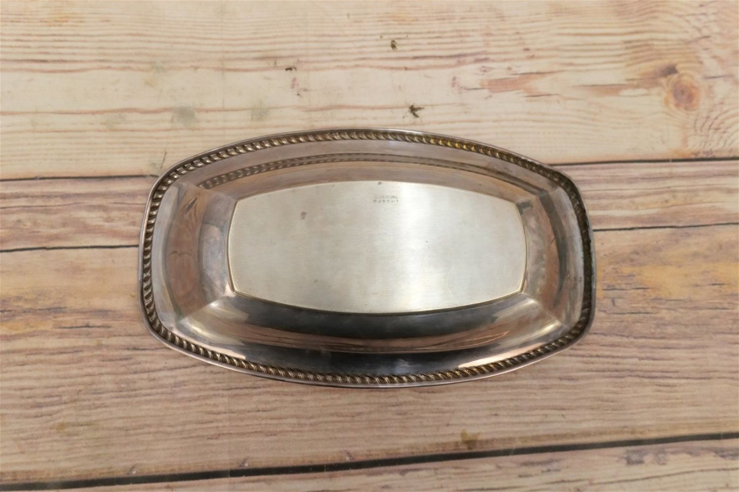 Sterling Silver Bread Dish. Marked Sterling PJ55-1. Hallmarked Watrous Mfg. Co. Connecticut – Crescent Moon with Capital W. Weighs approx. 8.5 oz. Measures 11.25" long x 6.25" wide. All invoices must be paid within 24 hours of the sale. We offer multiple shipping options, please read the terms as they have changed. We also offer Pick-Ups Friday, Saturday, and Monday immediately following the sale. BY APPOINTMENT ONLY. PLEASE READ THE NEW TERMS!!!