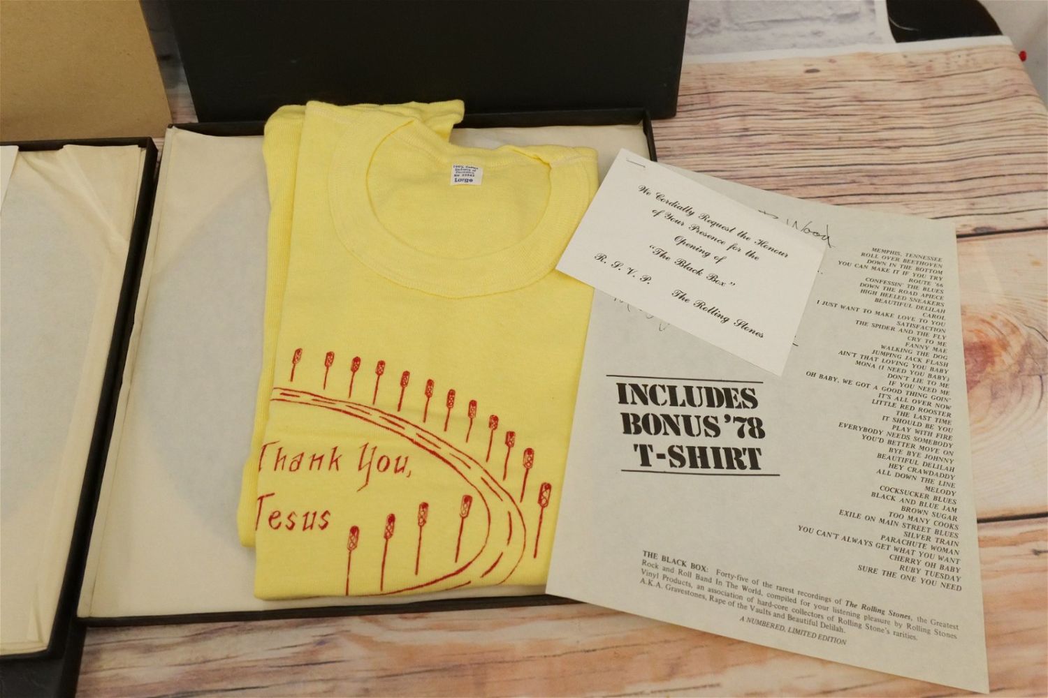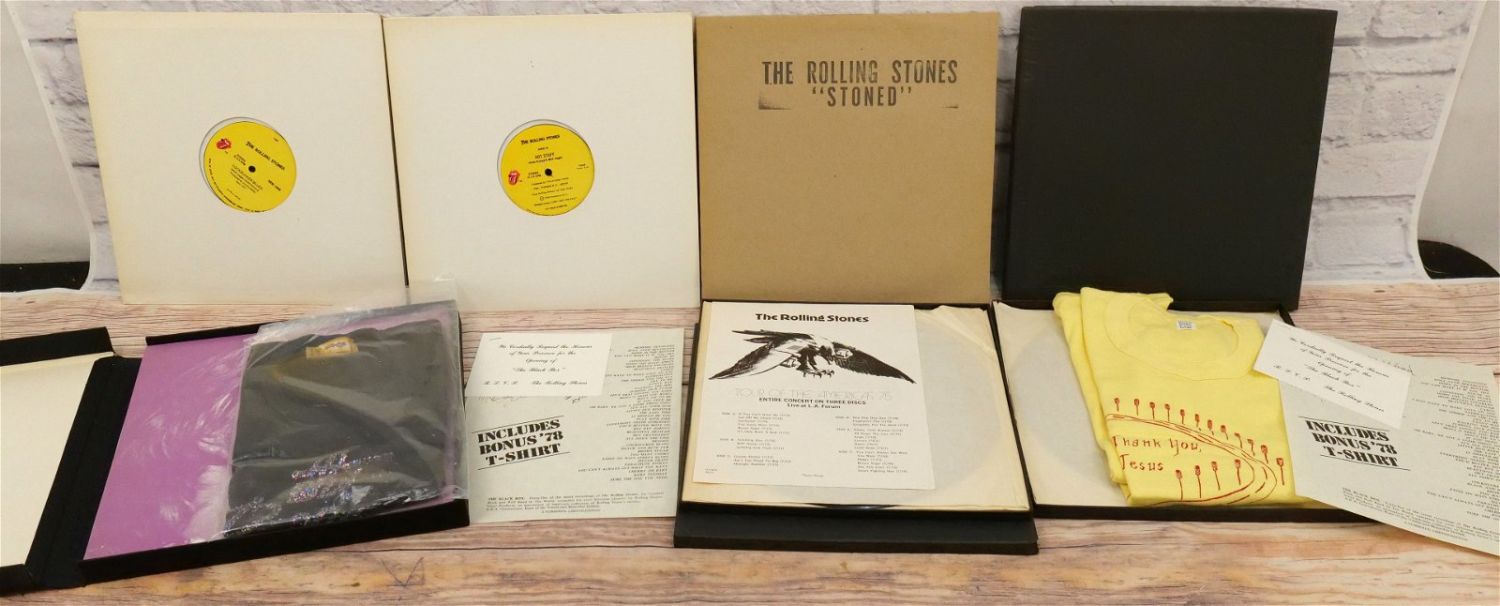 Lot of 6 Rolling Stones Vinyl Records including Hot Stuff Promotional, Cocksucker Blues Promotional, Stoned – Bootleg, Black Box Limited Edition Set with ’78 Bonus T-Shirt, Decca with Tee Shirt Set, and Tour of the Americas Set. All invoices must be paid within 24 hours of the sale. We offer multiple shipping options, please read the terms as they have changed. We also offer Pick-Ups Friday, Saturday, and Monday immediately following the sale. BY APPOINTMENT ONLY. PLEASE READ THE NEW TERMS!!!