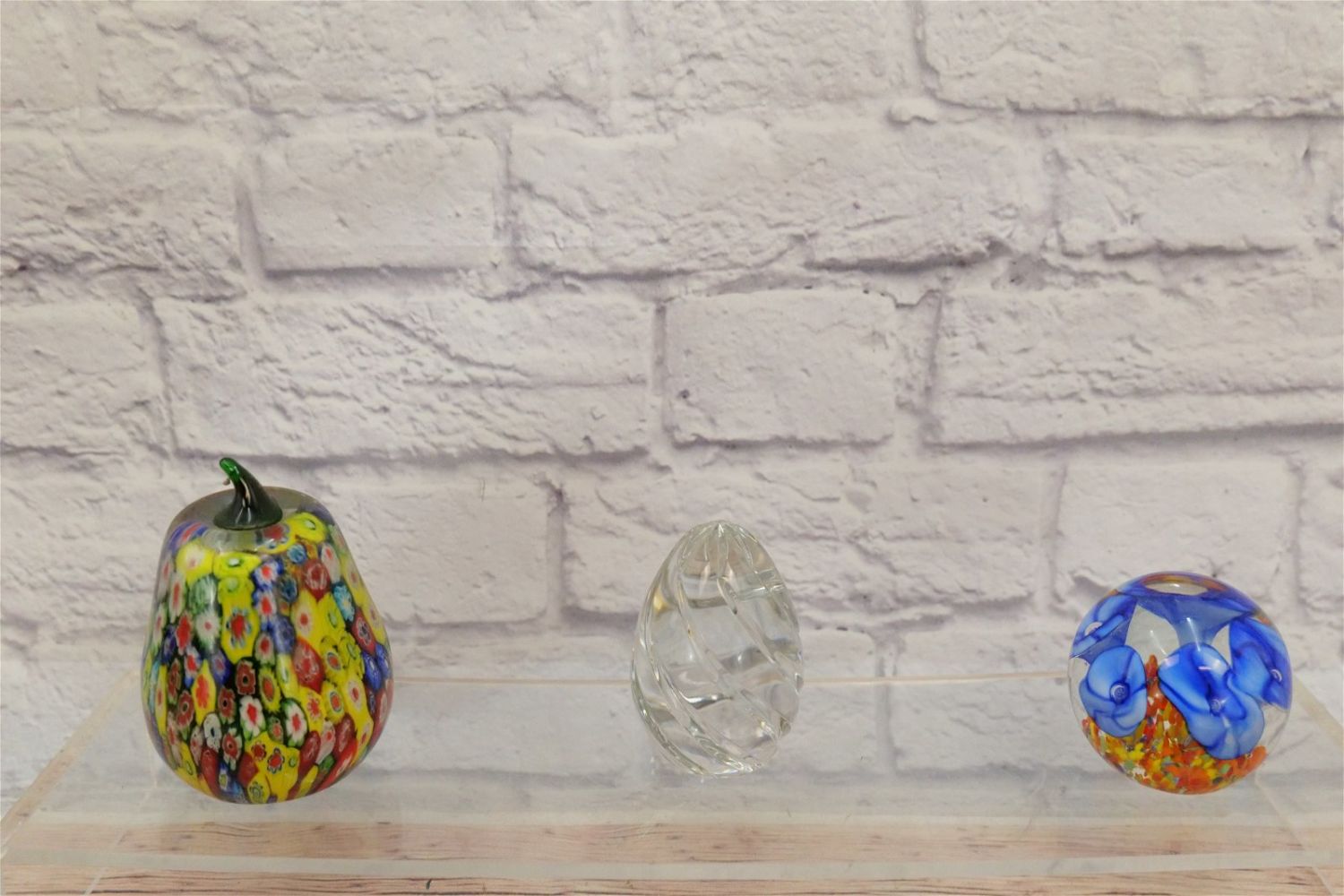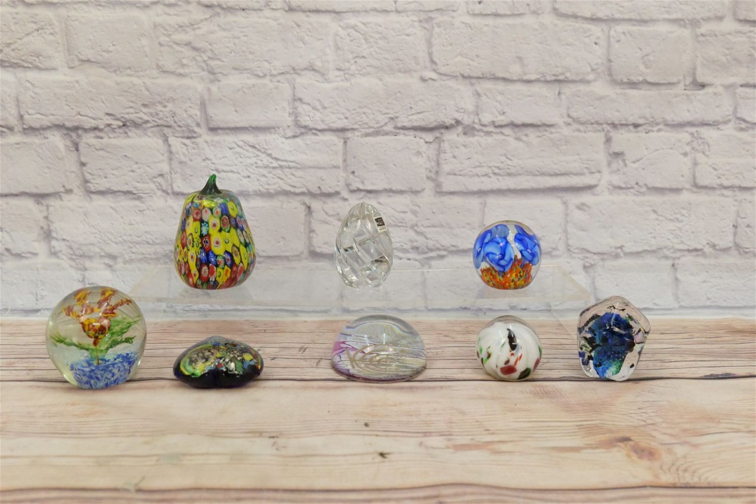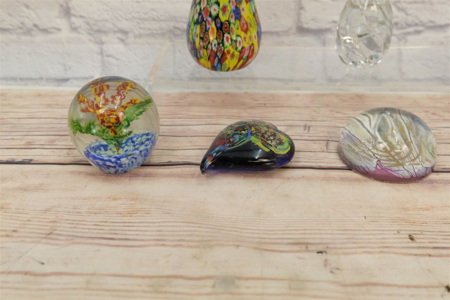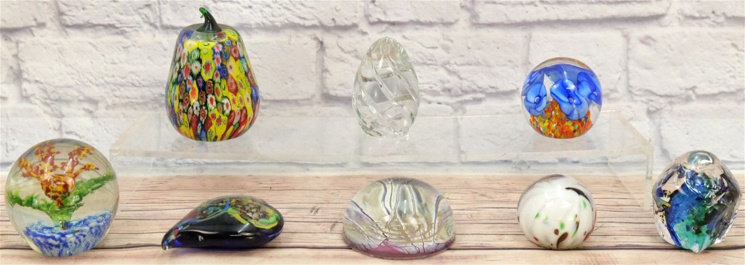Lot of 8 Hand Blown Glass Paperweights including Miller Rogaska Crystal Paperweight, Dynasty Gallery Heirloom Collectibles, Murano Glass Pear, and other various unsigned paperweights (Judaica, Hearts, Flowers). Largest measures 5" tall. All invoices must be paid within 24 hours of the sale. We offer multiple shipping options, please read the terms as they have changed. We also offer Pick-Ups Friday, Saturday, and Monday immediately following the sale. BY APPOINTMENT ONLY. PLEASE READ THE NEW TERMS!!!