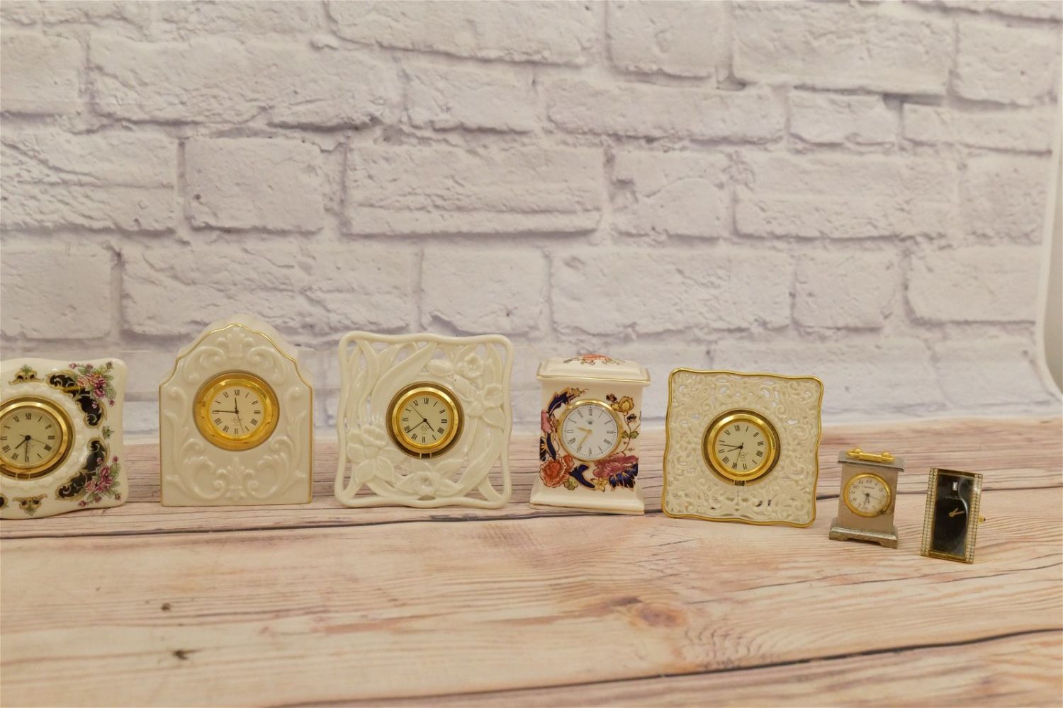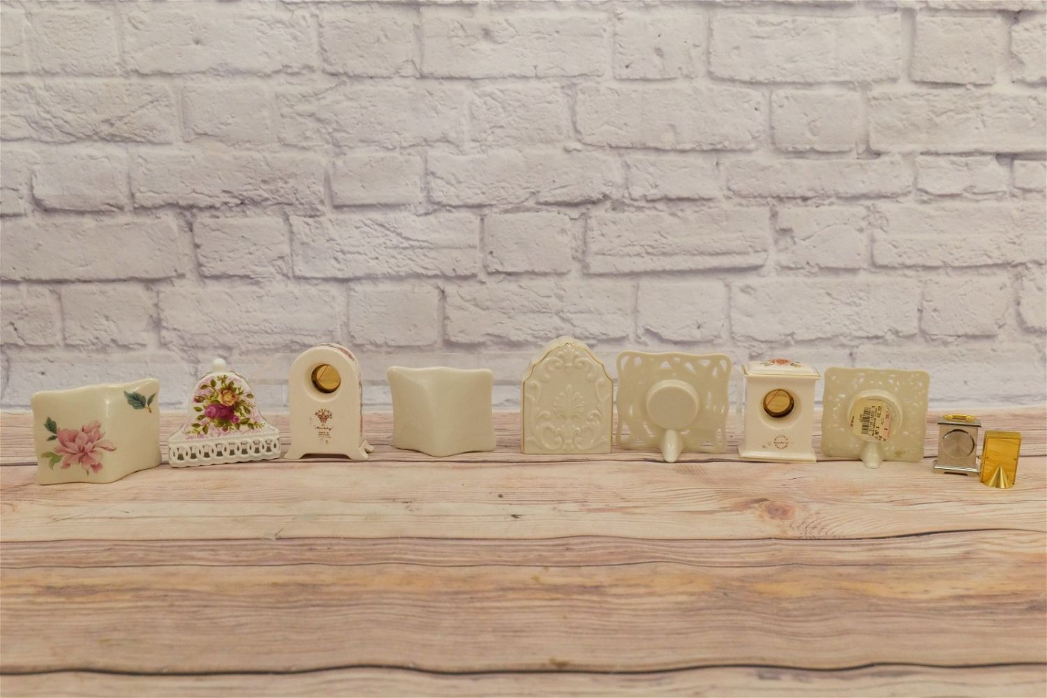 Lot of 10 Decorative Desk Clocks including Mason’s, Lenox, Royal Albert, Seth Thomas and More. Largest measures 4" tall. All invoices must be paid within 24 hours of the sale. We offer multiple shipping options, please read the terms as they have changed. We also offer Pick-Ups Friday, Saturday, and Monday immediately following the sale. BY APPOINTMENT ONLY. PLEASE READ THE NEW TERMS!!!