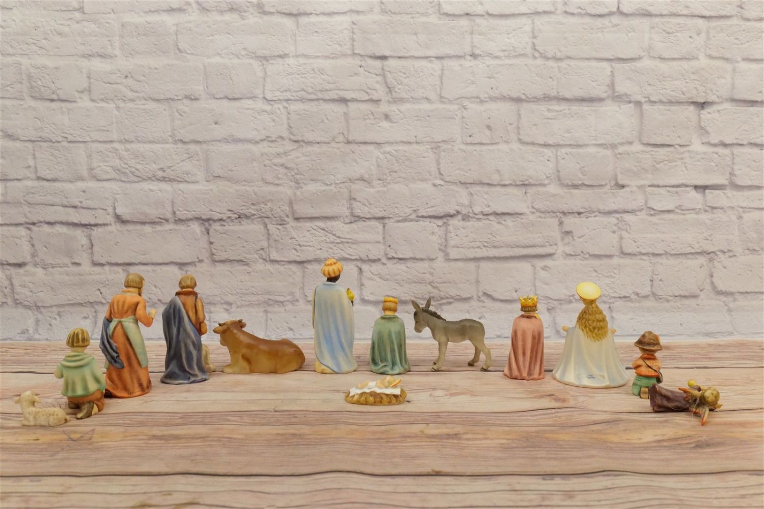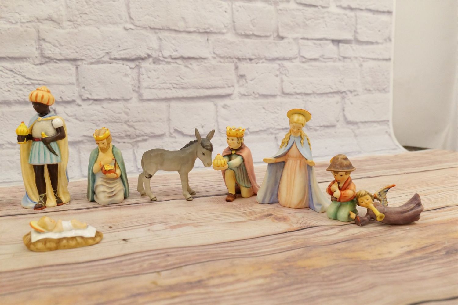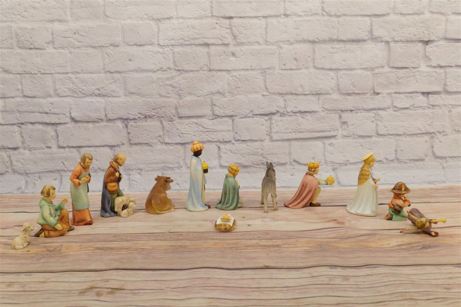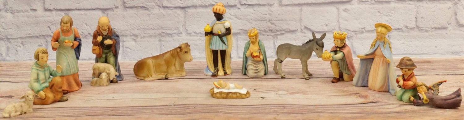 13 Piece Hummel Nativity Set. Including (3) Kings, (2) Shepherd, Mary, Joseph, Jesus, Donkey, Cow, Sheep, Flying Angel, and Kneeling Shepherd. Trademark 6 and 7. Largest measures 6.5" tall. All invoices must be paid within 24 hours of the sale. We offer multiple shipping options, please read the terms as they have changed. We also offer Pick-Ups Friday, Saturday, and Monday immediately following the sale. BY APPOINTMENT ONLY. PLEASE READ THE NEW TERMS!!!