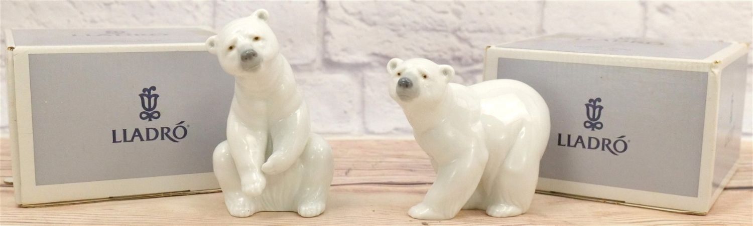 Lot of 2 Lladro Figurines including Polar Bear Seated #1208 and Polar Bear Walking #1207. Both come with original boxes. Largest measures 5" tall. All invoices must be paid within 24 hours of the sale. We offer multiple shipping options, please read the terms as they have changed. We also offer Pick-Ups Friday, Saturday, and Monday immediately following the sale. BY APPOINTMENT ONLY. PLEASE READ THE NEW TERMS!!!