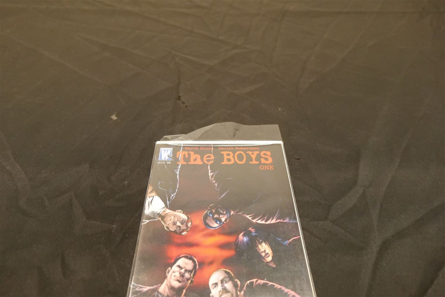 The Boys #1. VF-NM. All invoices must be paid within 24 hours of the sale. We offer multiple shipping options, please read the terms as they have changed. We also offer Pick-Ups Thursday, Friday, Saturday, and Monday immediately following the sale. BY APPOINTMENT ONLY. PLEASE READ THE NEW TERMS!!!