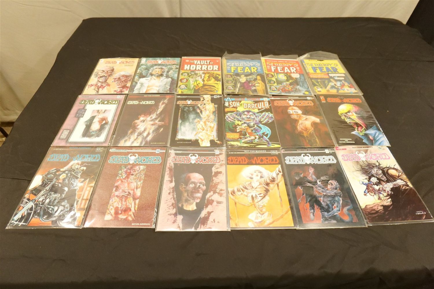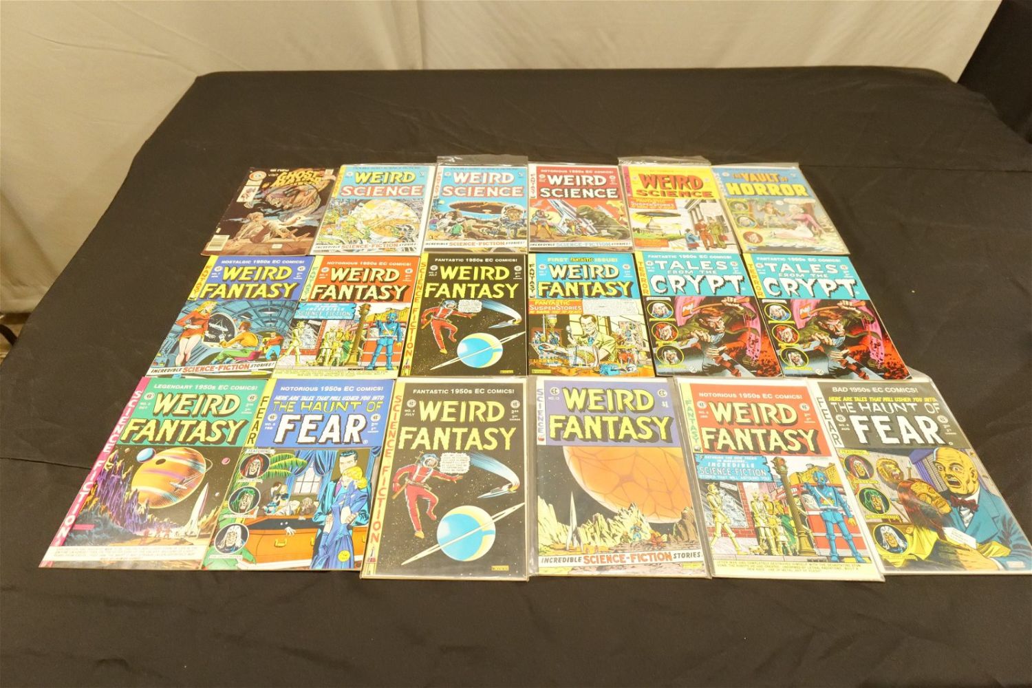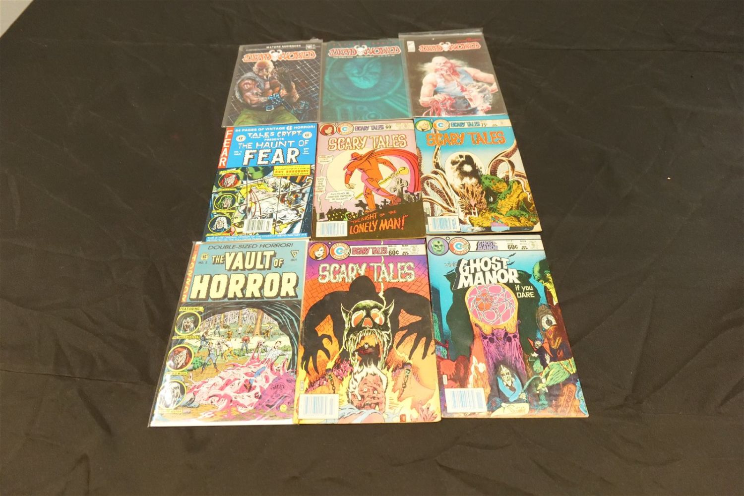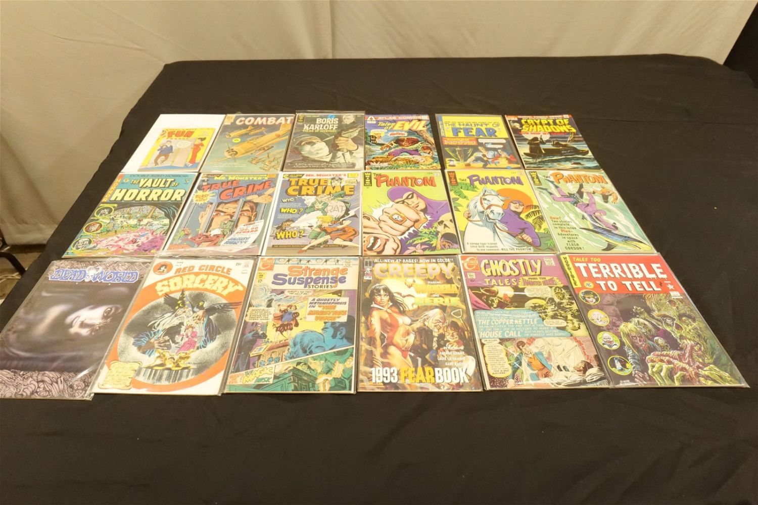 Short Box of Independent Horror Comics including Boris Karloff, The Phantom, Mr. Monsters True Crime, Ghostly Tales, Dead World, The Vault of Horror, Tales from the Crypt, The Haunt of Fear, Weird Fantasy, and More. Many EC Reprints. Short Box is approx. 90% Full. All invoices must be paid within 24 hours of the sale. We offer multiple shipping options, please read the terms as they have changed. We also offer Pick-Ups Thursday, Friday, Saturday, and Monday immediately following the sale. BY APPOINTMENT ONLY. PLEASE READ THE NEW TERMS!!!
