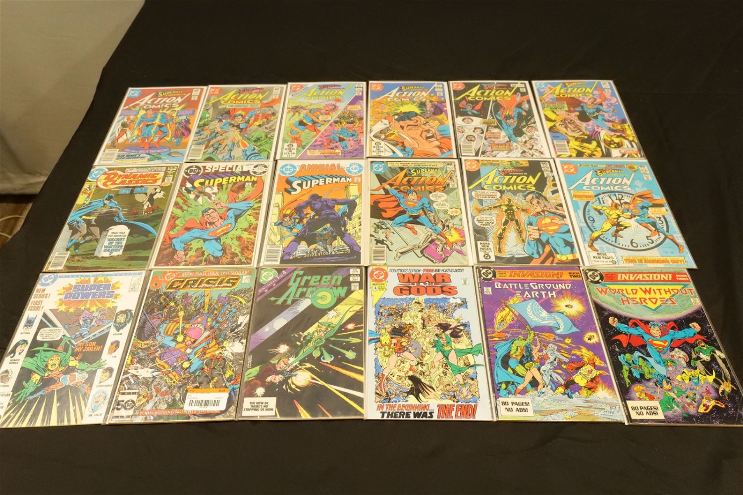 Short Box of 80’s DC Comics including Superman, Starfire, Green Lantern, Camelot 3000 and More. Short Box is Full. All invoices must be paid within 24 hours of the sale. We offer multiple shipping options, please read the terms as they have changed. We also offer Pick-Ups Thursday, Friday, Saturday, and Monday immediately following the sale. BY APPOINTMENT ONLY. PLEASE READ THE NEW TERMS!!!