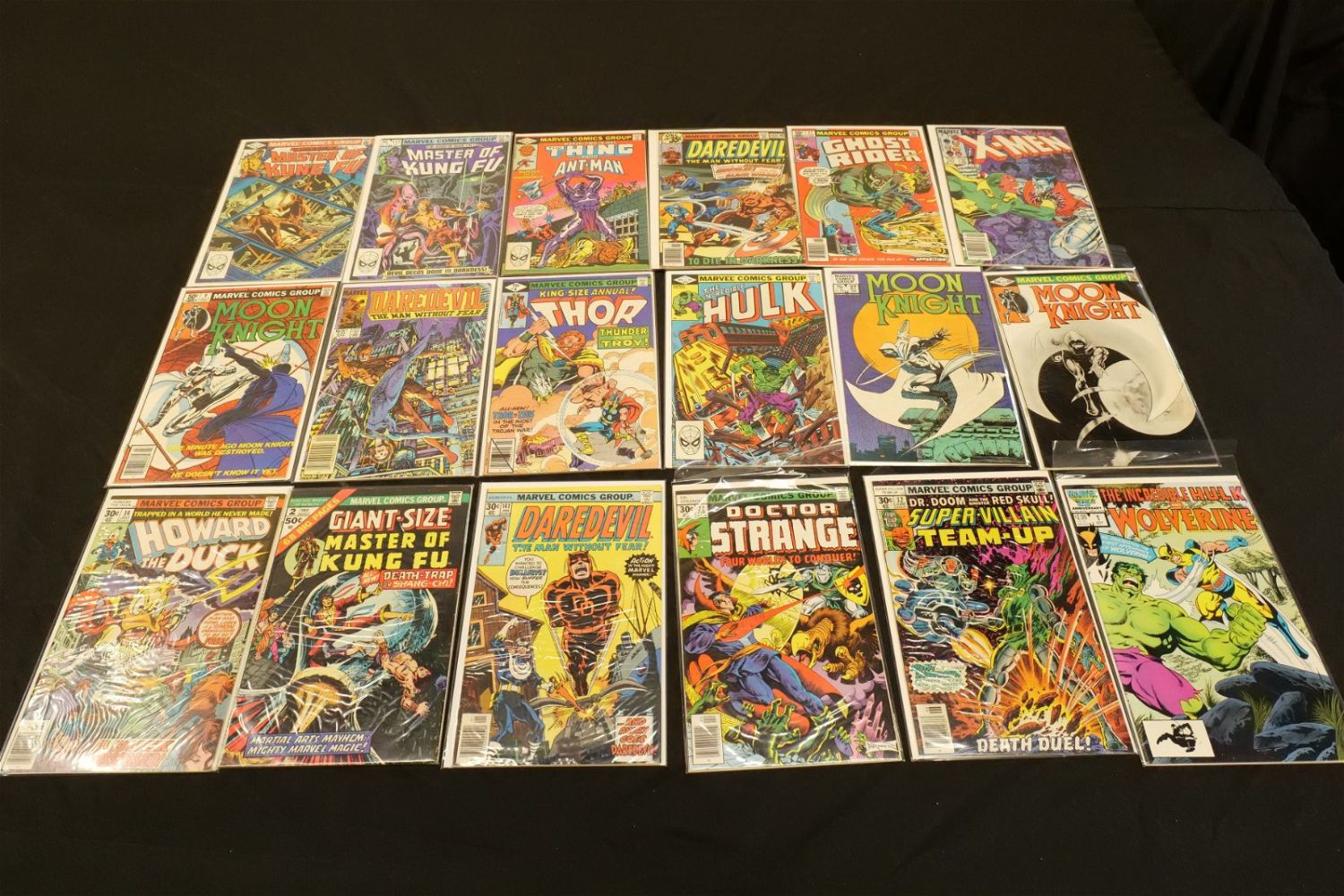 Short Box of Bronze Age 70’s and 80’s Comics including Moon Knight, Ghost Rider, The Mighty Thor, Micronauts, The Uncanny X-Men, Wolverine, Kull, Iron Man, Conan and More. Short Box is Full. All invoices must be paid within 24 hours of the sale. We offer multiple shipping options, please read the terms as they have changed. We also offer Pick-Ups Thursday, Friday, Saturday, and Monday immediately following the sale. BY APPOINTMENT ONLY. PLEASE READ THE NEW TERMS!!!