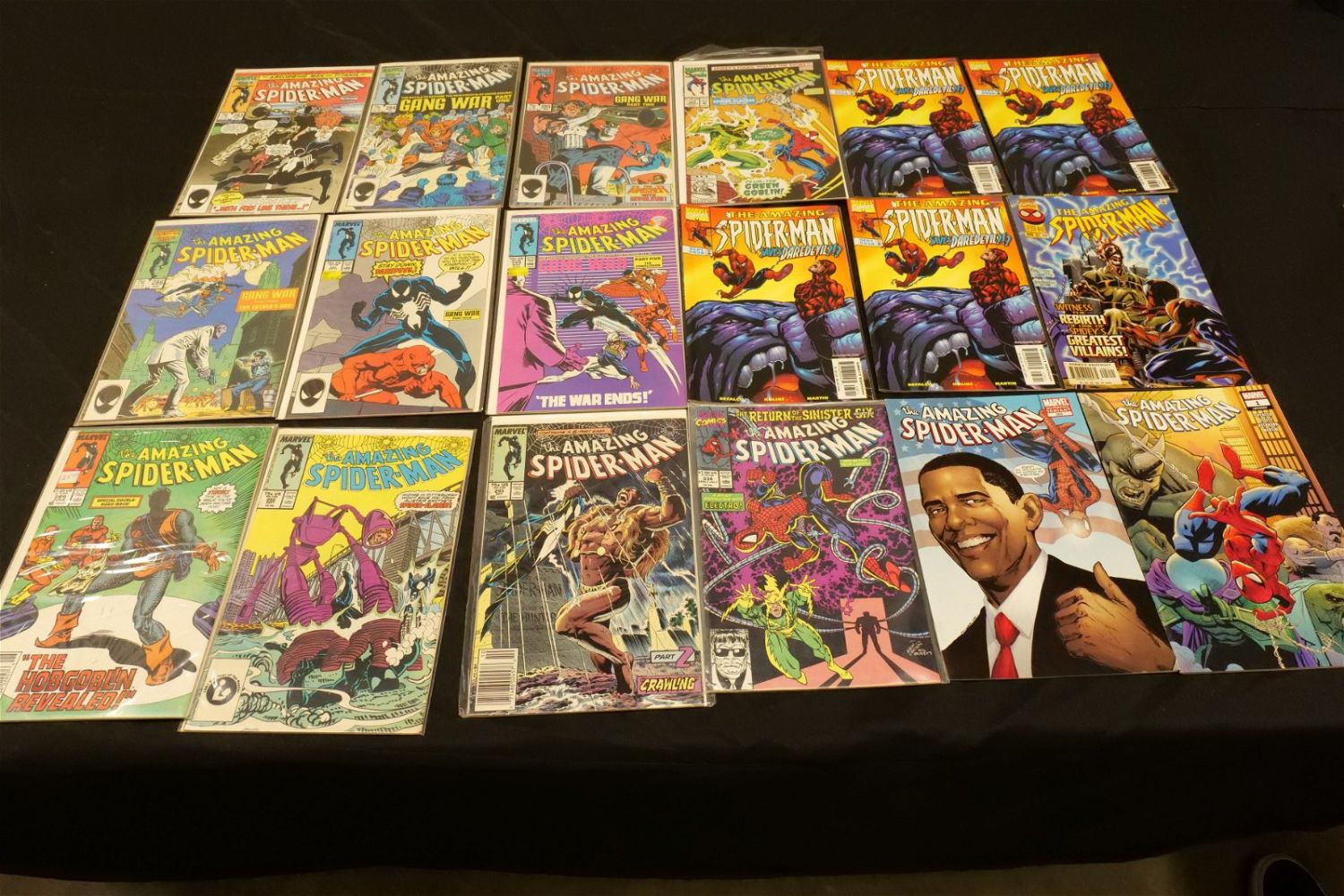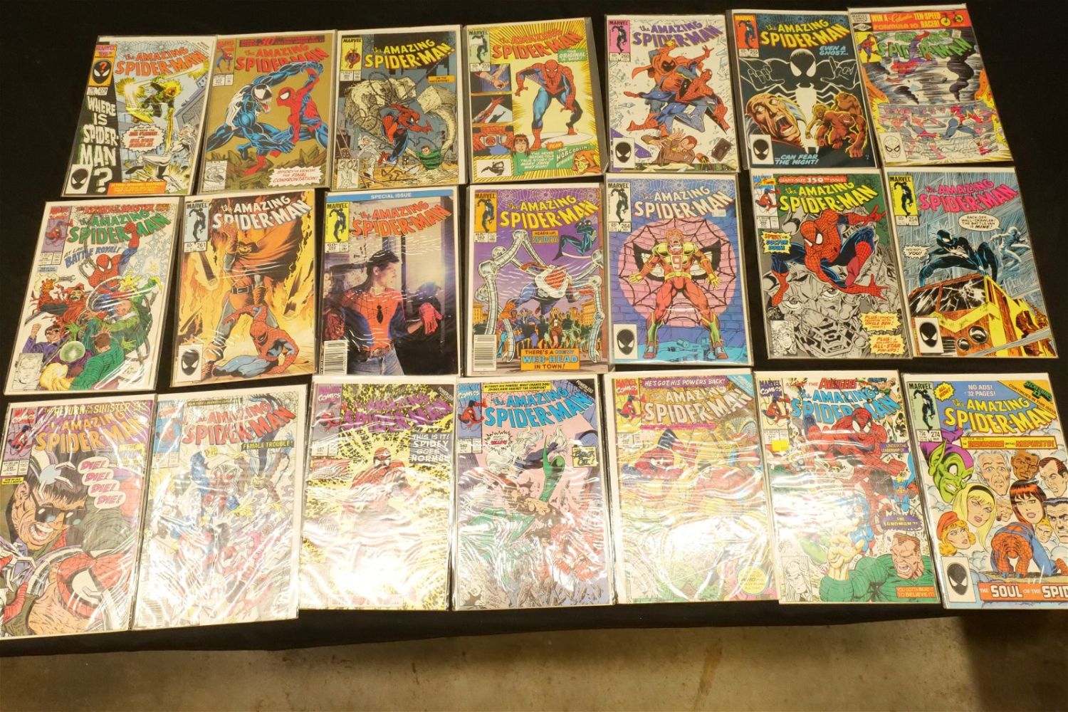 Short Box of The Amazing Spider-Man Comics – Copper Age. Includes Keys. Some notable issues are #200, #400, and McFarlane’s. Short Box is Full. All invoices must be paid within 24 hours of the sale. We offer multiple shipping options, please read the terms as they have changed. We also offer Pick-Ups Thursday, Friday, Saturday, and Monday immediately following the sale. BY APPOINTMENT ONLY. PLEASE READ THE NEW TERMS!!!