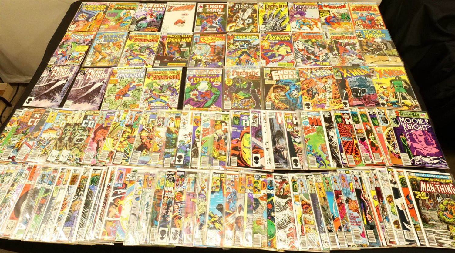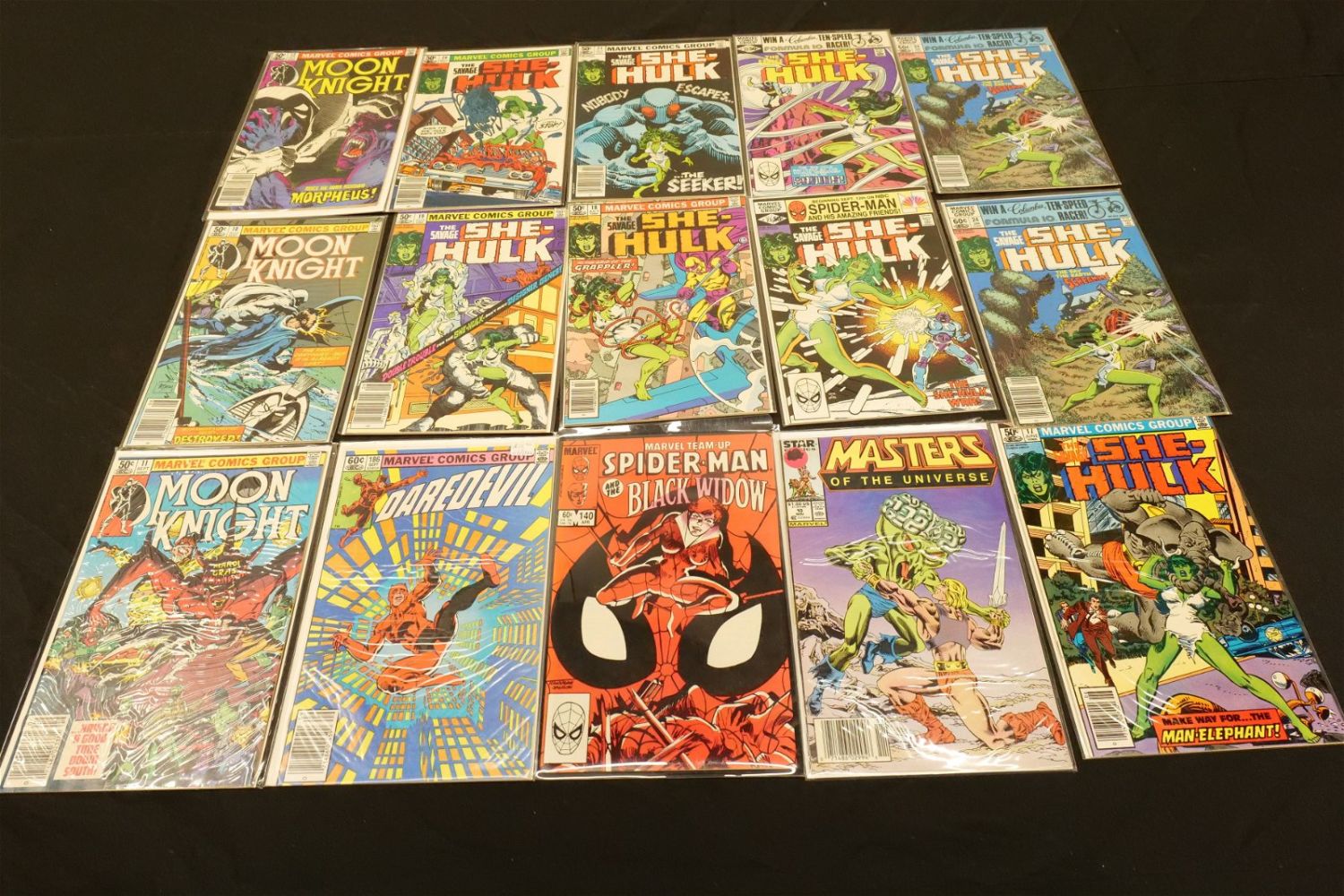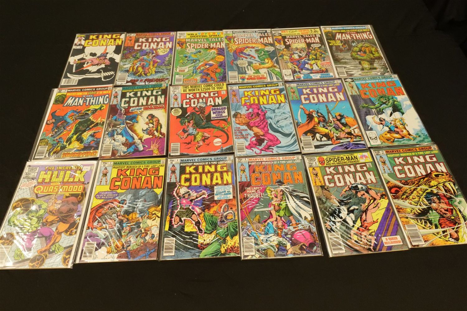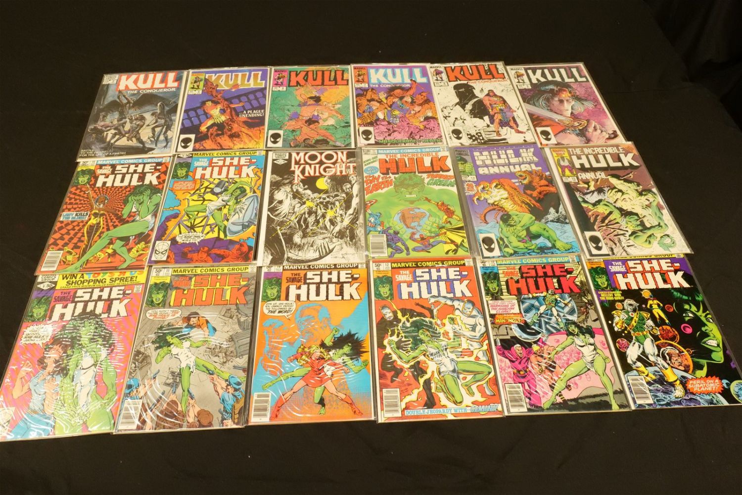 Short Box of 70’s Marvel Comics – Mostly Bronze Age. Including She-Hulk, Moon Knight, The Incredible Hulk, Kull, King Conan, The Man-Thing, Marvel Team Up and More. Short Box is Full. All invoices must be paid within 24 hours of the sale. We offer multiple shipping options, please read the terms as they have changed. We also offer Pick-Ups Thursday, Friday, Saturday, and Monday immediately following the sale. BY APPOINTMENT ONLY. PLEASE READ THE NEW TERMS!!!