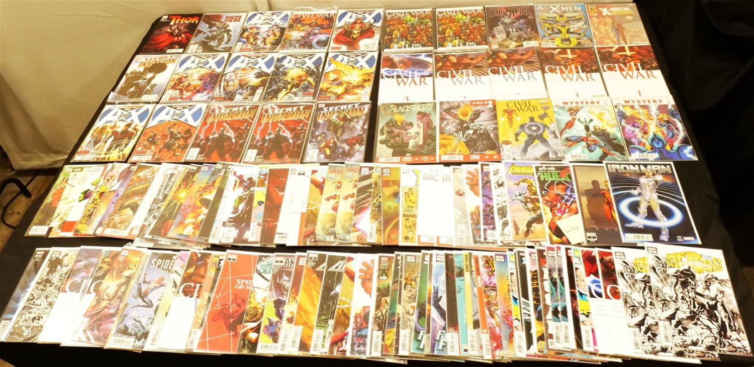 Short Box of 2000’s Marvel Comics including Civil War, Secret Invasion, Spider-Man, Marvel Tales, Infinity Wars, Variants and More. Box is approx. 85% Full. All invoices must be paid within 24 hours of the sale. We offer multiple shipping options, please read the terms as they have changed. We also offer Pick-Ups Thursday, Friday, Saturday, and Monday immediately following the sale. BY APPOINTMENT ONLY. PLEASE READ THE NEW TERMS!!!