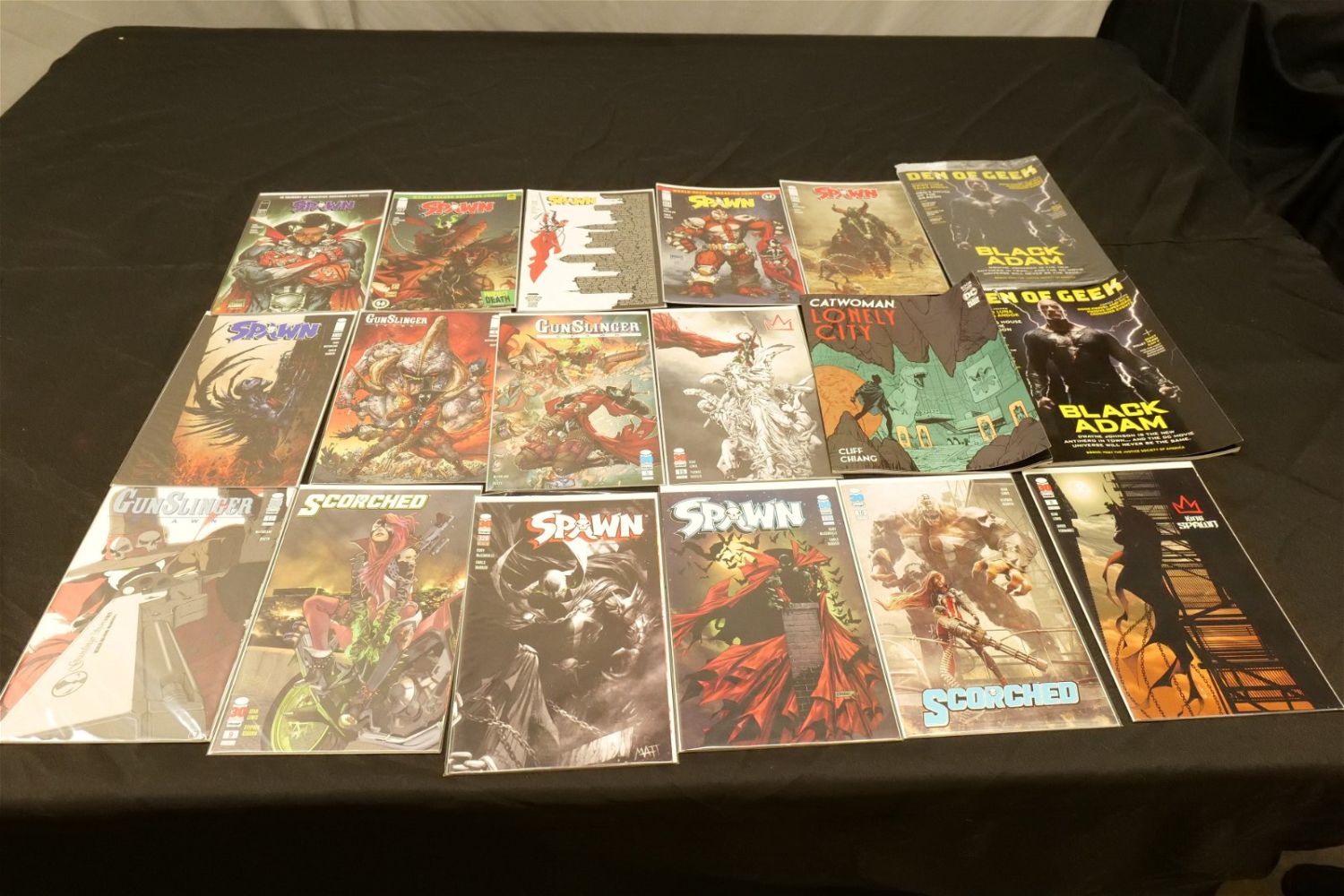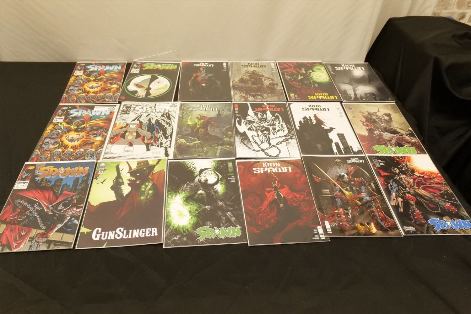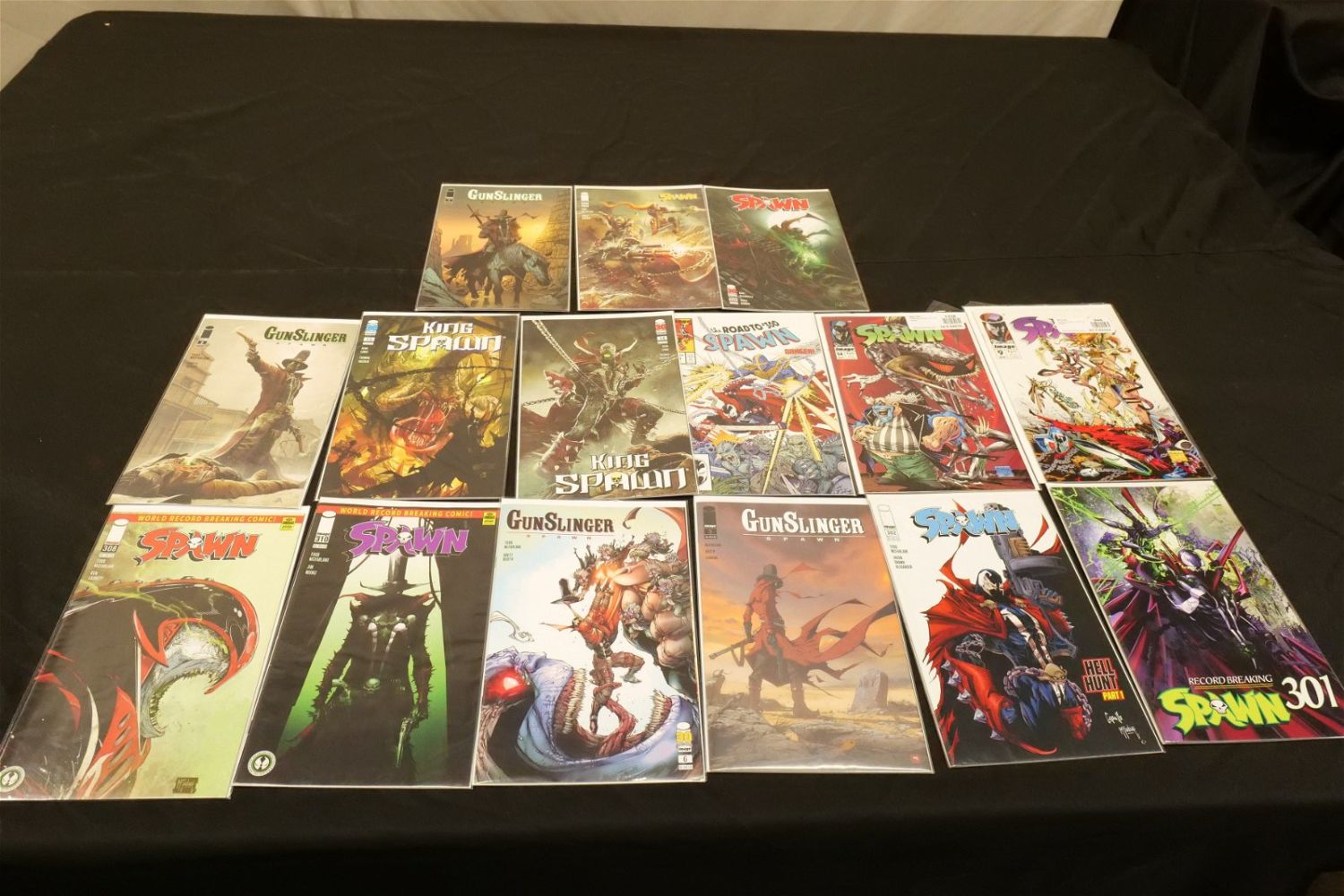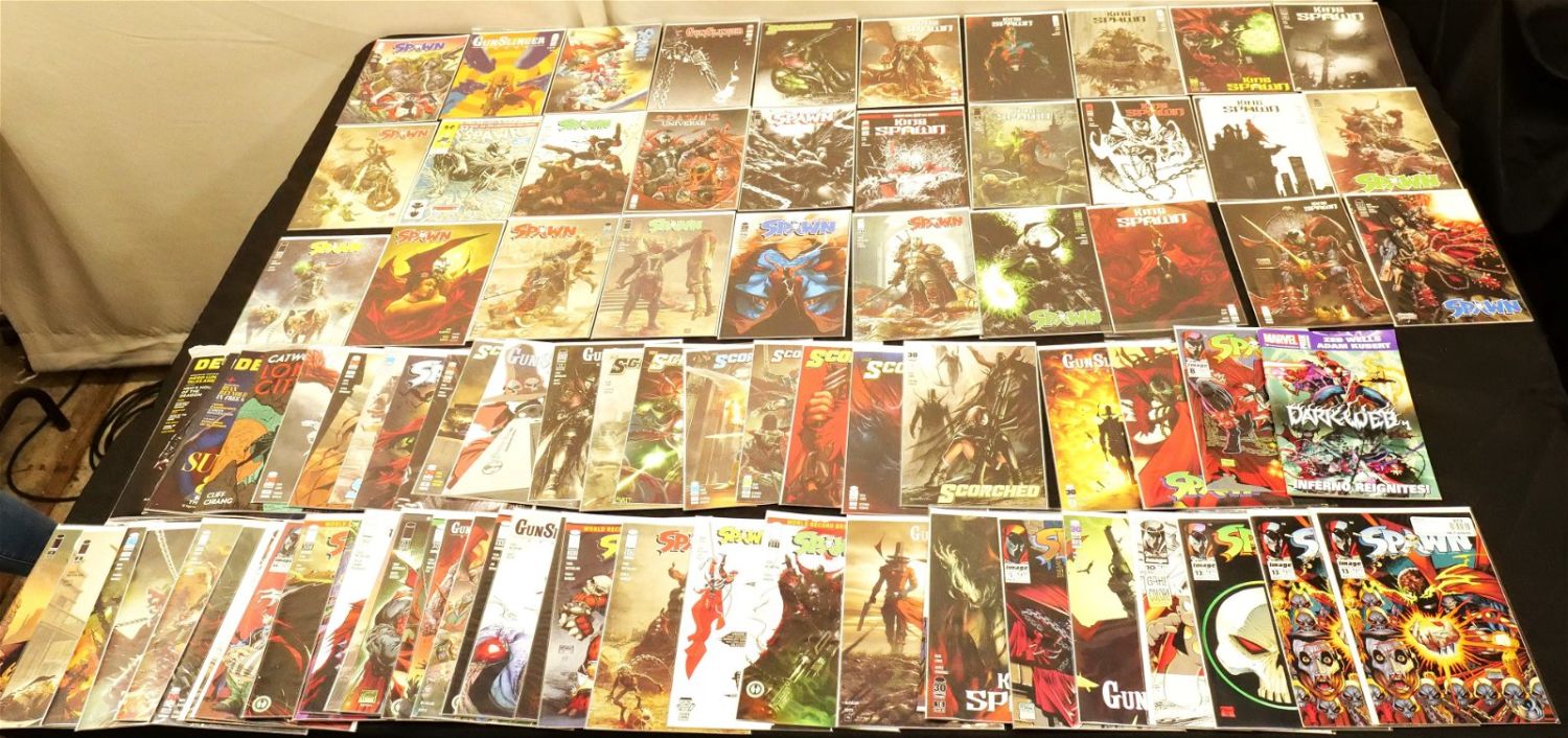 Short Box of Spawn Comics from 90’s-2020’s including Spawn #8, #9, #300, King Spawn, Gunslinger Spawn, and The Scorched. Also includes a few magazines in mid grade. Box is 2/3rds Full. All invoices must be paid within 24 hours of the sale. We offer multiple shipping options, please read the terms as they have changed. We also offer pick ups on Thursday, Friday, Saturday and Monday immediately following the sale BY APPOINTMENT ONLY. PLEASE READ THE TERMS!!!