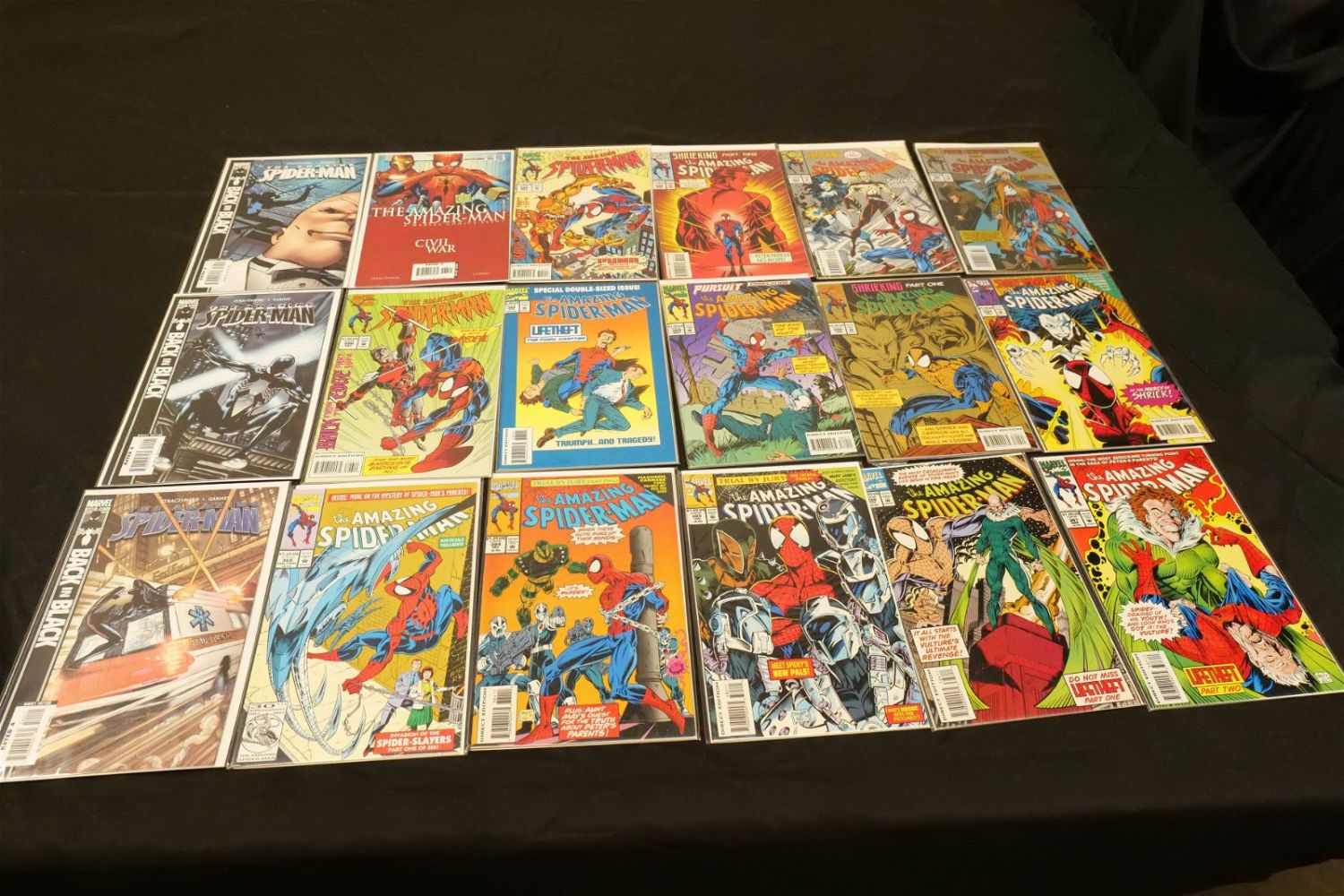 Short Box of 80’s and 90’s Spider-Man Comics. Mostly All Amazing Spider-Man. Short Box is Full. All invoices must be paid within 24 hours of the sale. We offer multiple shipping options, please read the terms as they have changed. We also offer Pick-Ups Thursday, Friday, Saturday, and Monday immediately following the sale. BY APPOINTMENT ONLY. PLEASE READ THE NEW TERMS!!!
