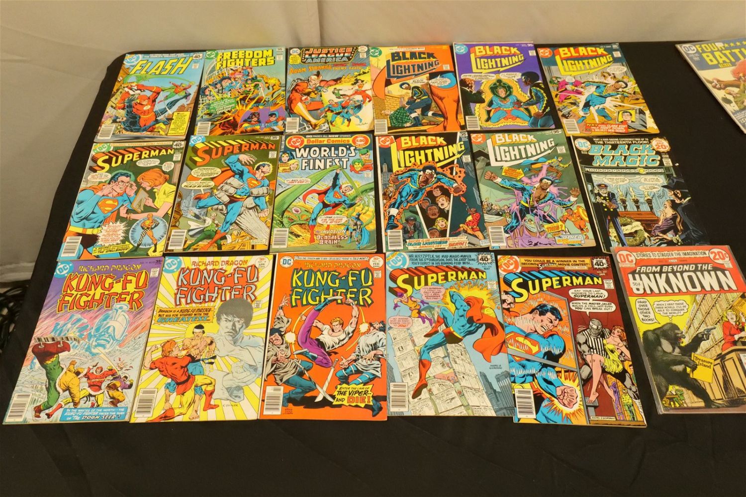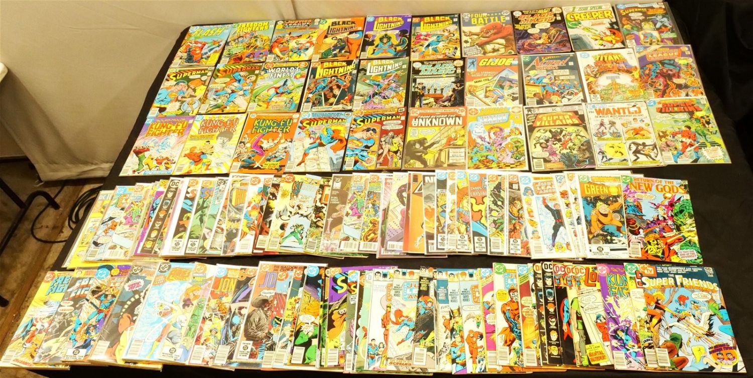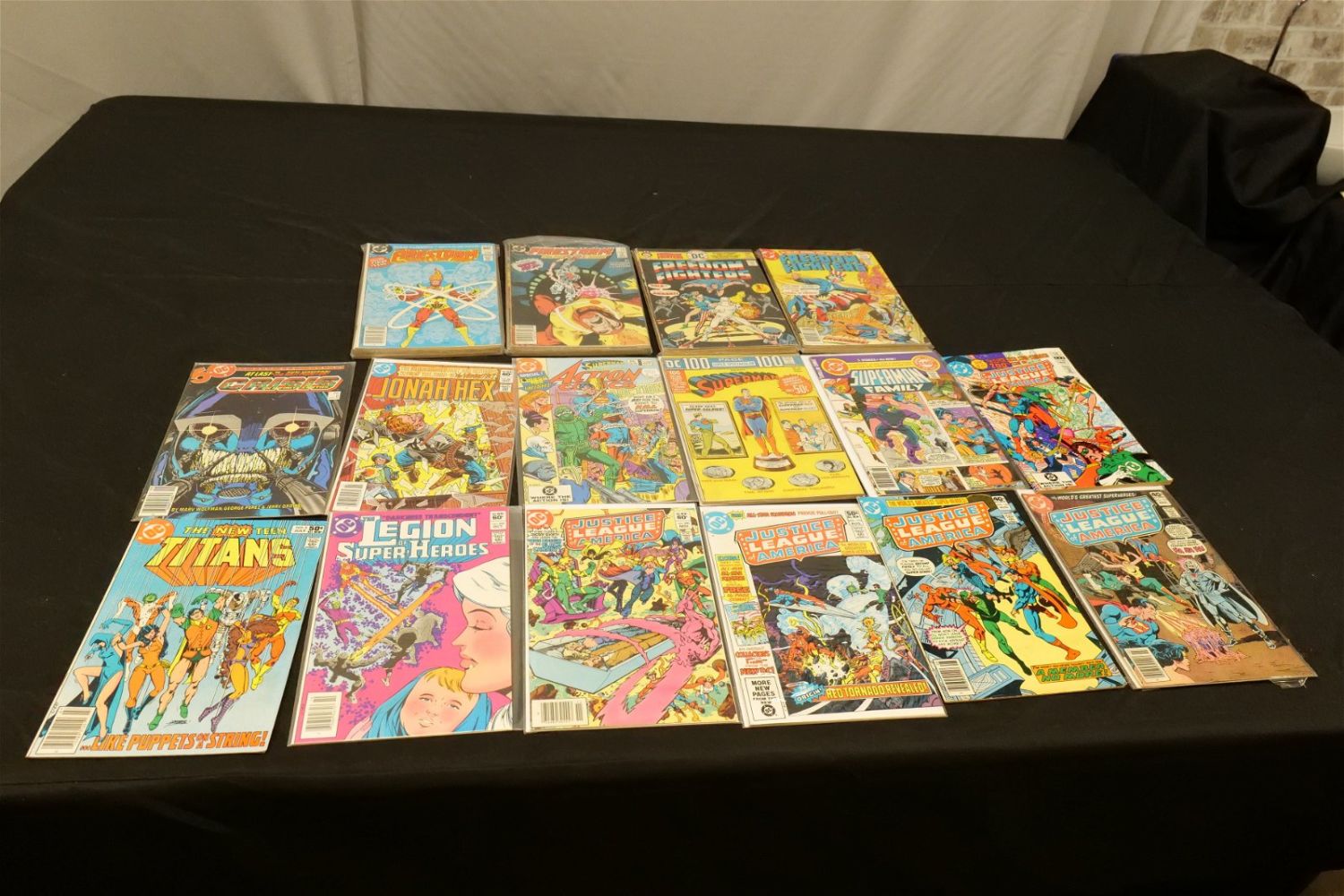 Short Box of DC Comics from the 70’s and 80’s including Superman, JLA, Super Villains, Crisis on Infinite Earths, Firestorm, Freedom Fighters, Jonah Hex, and More. Short Box is Full. All invoices must be paid within 24 hours of the sale. We offer multiple shipping options, please read the terms as they have changed. We also offer Pick-Ups Thursday, Friday, Saturday, and Monday immediately following the sale. BY APPOINTMENT ONLY. PLEASE READ THE NEW TERMS!!!