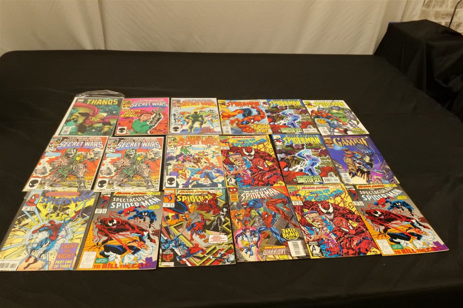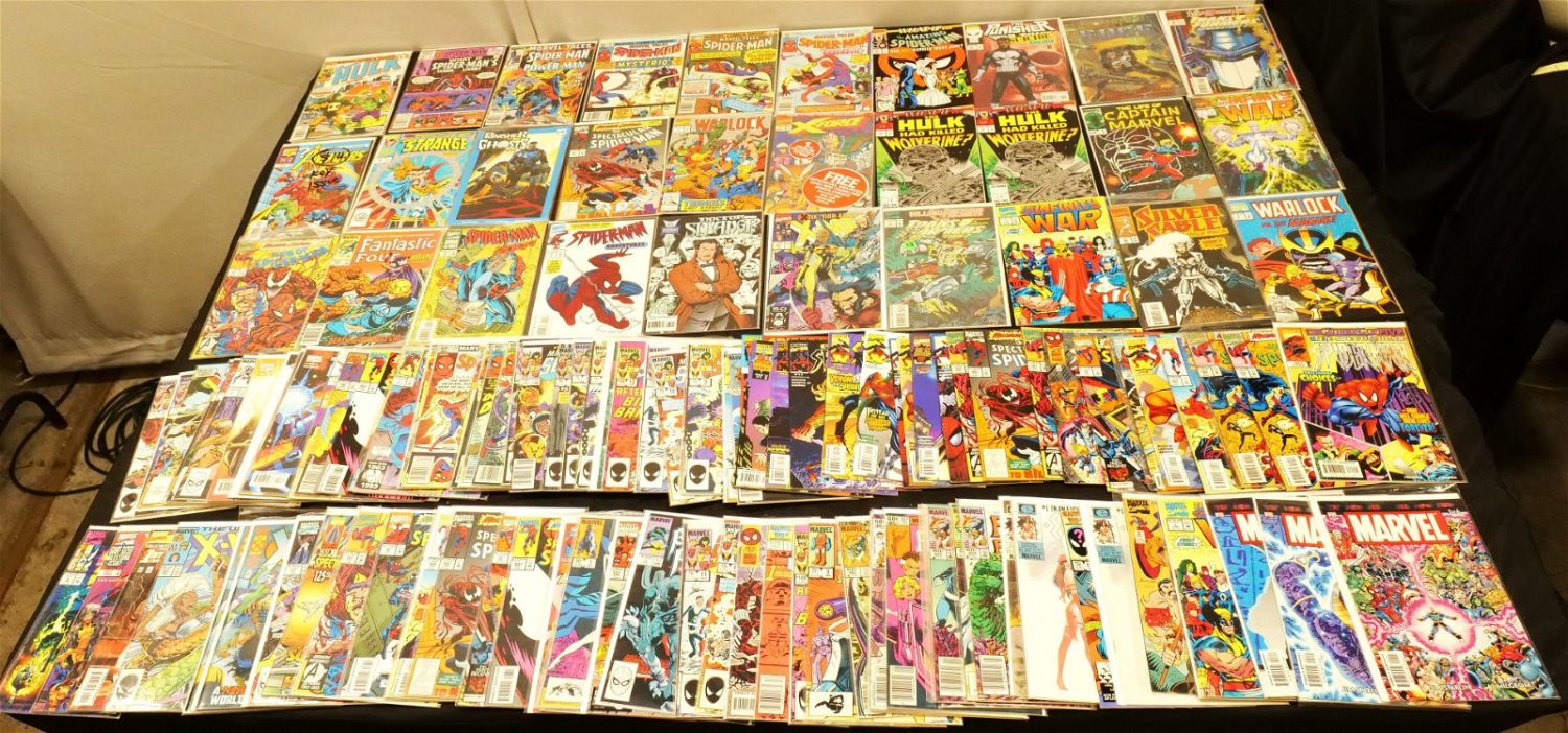 Short Box of Marvel Comics from the 80’s and 90’s including X-Men, Maximum Carnage, What If, Transformers, Punisher, Spectacular Spider-Man, Secret Wars, Daredevil, Fantastic Four and More. Short Box is Full. All invoices must be paid within 24 hours of the sale. We offer multiple shipping options, please read the terms as they have changed. We also offer Pick-Ups Thursday, Friday, Saturday, and Monday immediately following the sale. BY APPOINTMENT ONLY. PLEASE READ THE NEW TERMS!!!