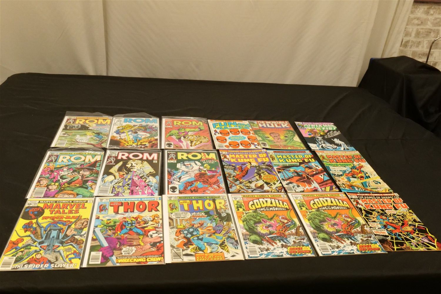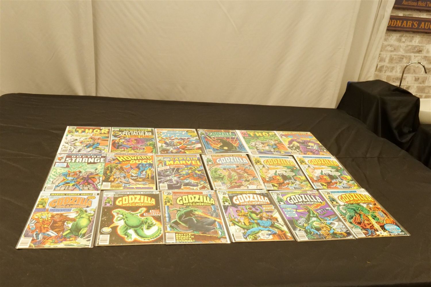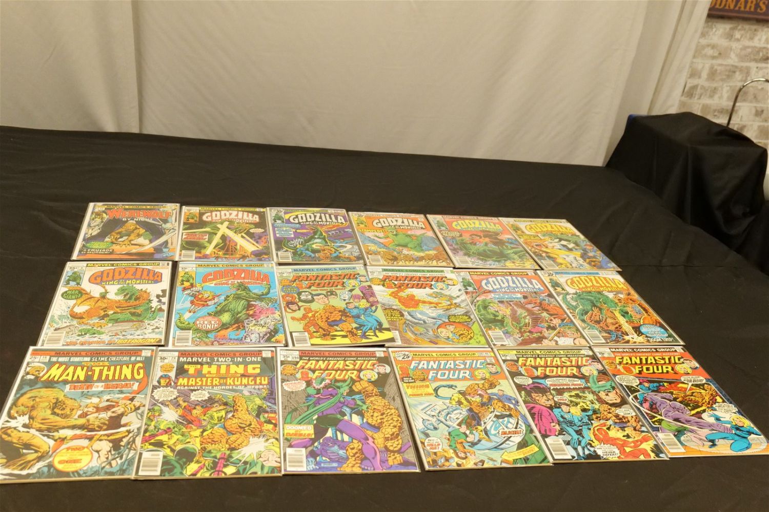 Short Box of Marvel Comics from the 70’s and 80’s including Godzilla, Fantastic Four, Marvel Tales, The Mighty Thor, Rom, Marvel Two-In-One, Marvel Collector’s Item Classics, and More. Short Box is Full. All invoices must be paid within 24 hours of the sale. We offer multiple shipping options, please read the terms as they have changed. We also offer Pick-Ups Thursday, Friday, Saturday, and Monday immediately following the sale. BY APPOINTMENT ONLY. PLEASE READ THE NEW TERMS!!!