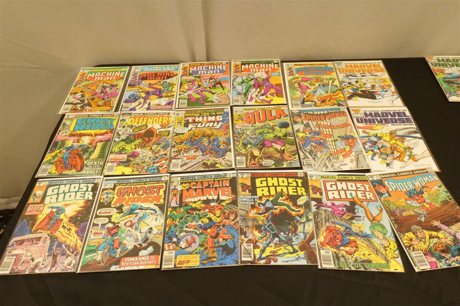 Short Box of Marvel Comics from the 70’s and 80’s. Including Ghost Rider, Spiderwoman, Official Handbook Marvel Universe, Tales to Astonish, Rom, The Avengers, Machine Man and More. Short Box is Full. All invoices must be paid within 24 hours of the sale. We offer multiple shipping options, please read the terms as they have changed. We also offer Pick-Ups Thursday, Friday, Saturday, and Monday immediately following the sale. BY APPOINTMENT ONLY. PLEASE READ THE NEW TERMS!!!