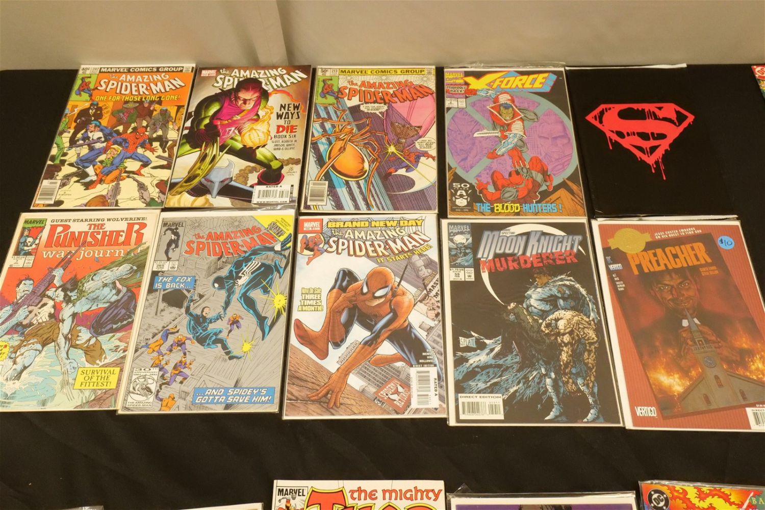 Lot of 42 Key Issue Comics including Platt, 1st Appearance of Stormbringer, Bartman #1, Death of Superman, Amazing Spider-Man Reprints, and More. All invoices must be paid within 24 hours of the sale. We offer multiple shipping options, please read the terms as they have changed. We also offer Pick-Ups Thursday, Friday, Saturday, and Monday immediately following the sale. BY APPOINTMENT ONLY. PLEASE READ THE NEW TERMS!!!