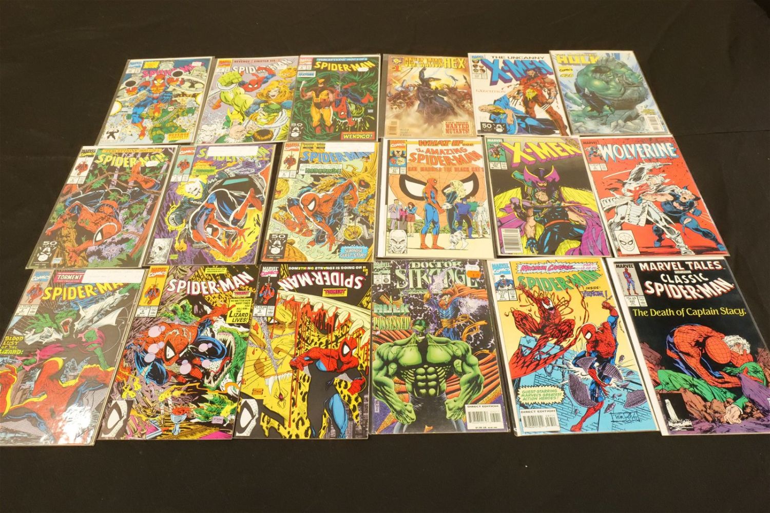 Short Box of Marvel Comics from the 1990’s including McFarlane Spider-Man, X-Men, The Marvels, Marvel Tales, Wolverine, Avengers West Coast and More. Short Box is Full. All invoices must be paid within 24 hours of the sale. We offer multiple shipping options, please read the terms as they have changed. We also offer Pick-Ups Thursday, Friday, Saturday, and Monday immediately following the sale. BY APPOINTMENT ONLY. PLEASE READ THE NEW TERMS!!!
