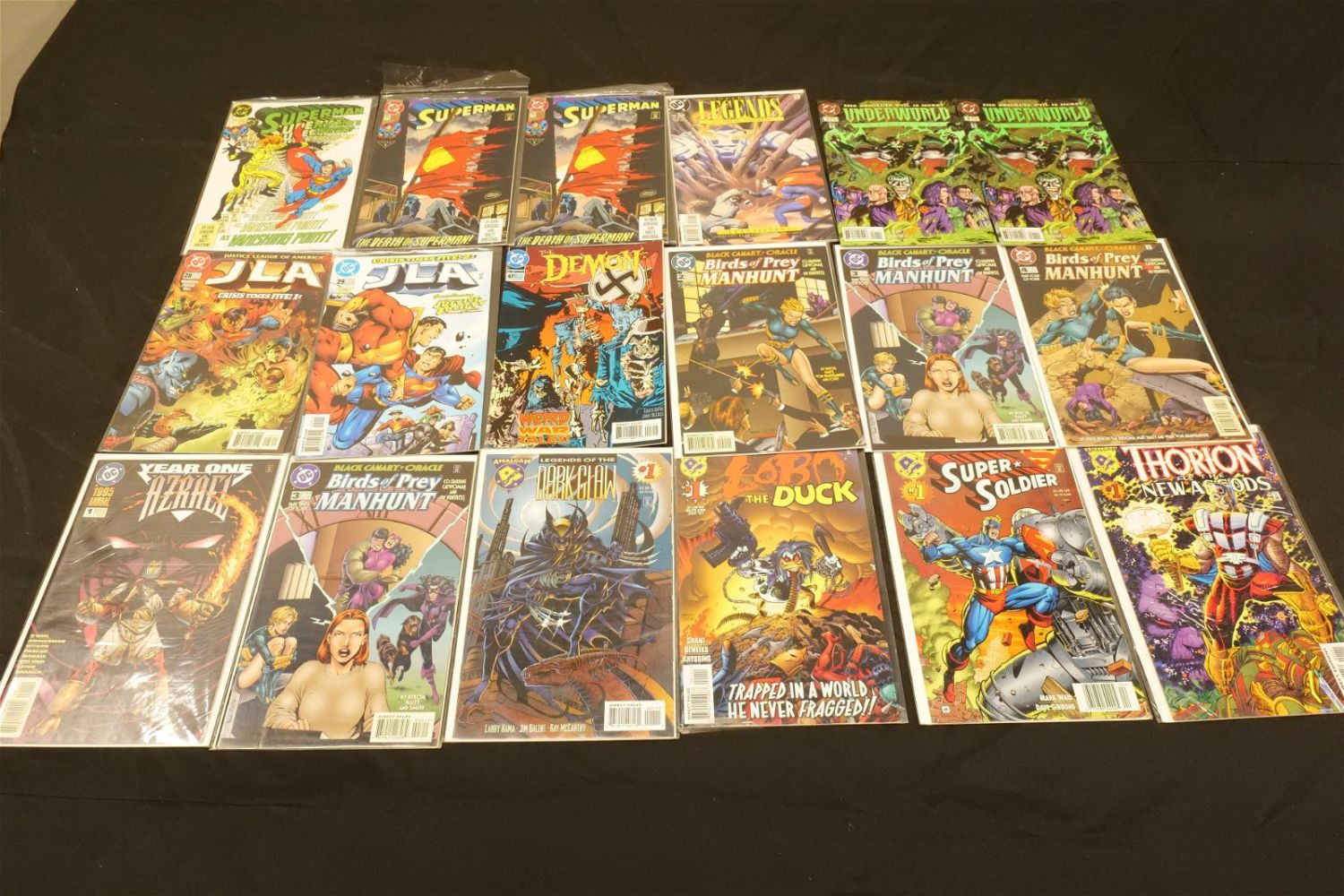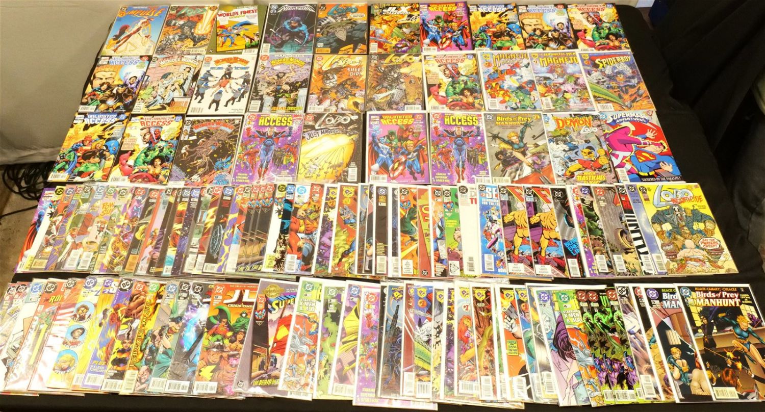 Short Box of DC Comics from the 90’s including The Flash, Superman, DC/Marvel Access, Lobo, Wonder Woman and More. Short Box is 90 % Full. All invoices must be paid within 24 hours of the sale. We offer multiple shipping options, please read the terms as they have changed. We also offer Pick-Ups Thursday, Friday, Saturday, and Monday immediately following the sale. BY APPOINTMENT ONLY. PLEASE READ THE NEW TERMS!!!