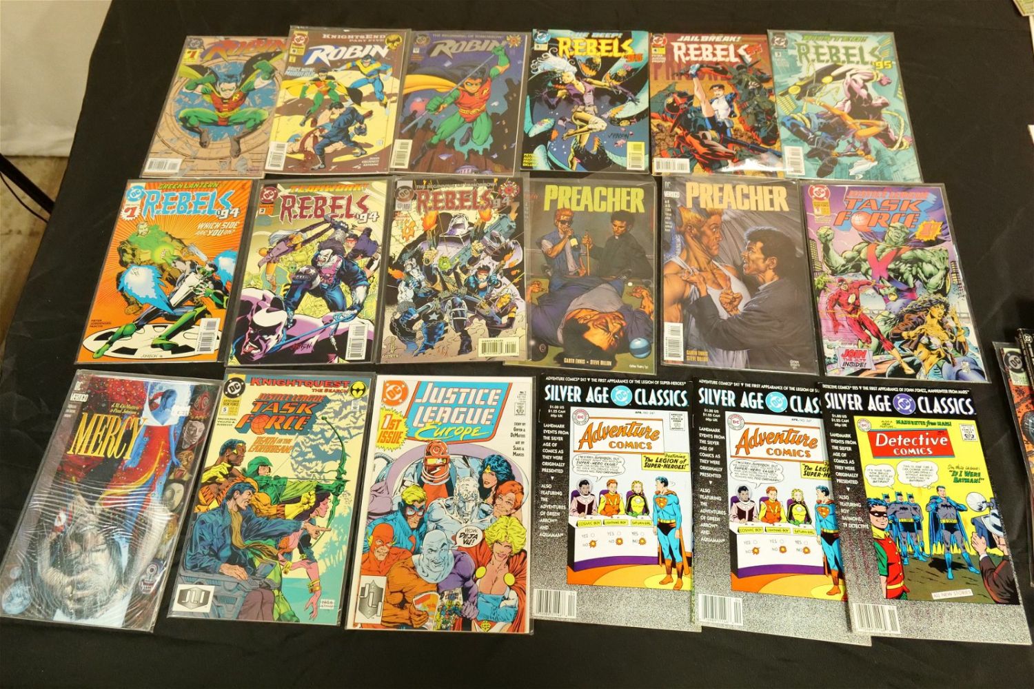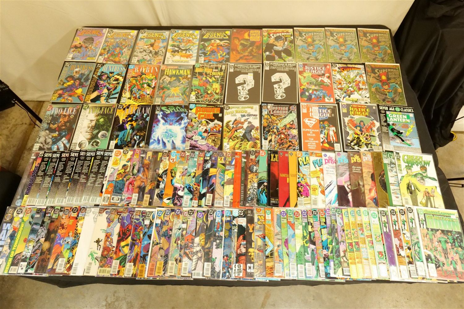Short Box of DC Modern Comics with Complete Legends Set. Some comics include Showcase Presents, Justice League of America, Green Arrow, Catwoman, Green Lantern, and More. Includes First Appearance of Amanda Waller and 1st Modern Suicide Squad. Box is approx. 2/3rds Full. All invoices must be paid within 24 hours of the sale. We offer multiple shipping options, please read the terms as they have changed. We also offer Pick-Ups Thursday, Friday, Saturday, and Monday immediately following the sale. BY APPOINTMENT ONLY. PLEASE READ THE NEW TERMS!!!