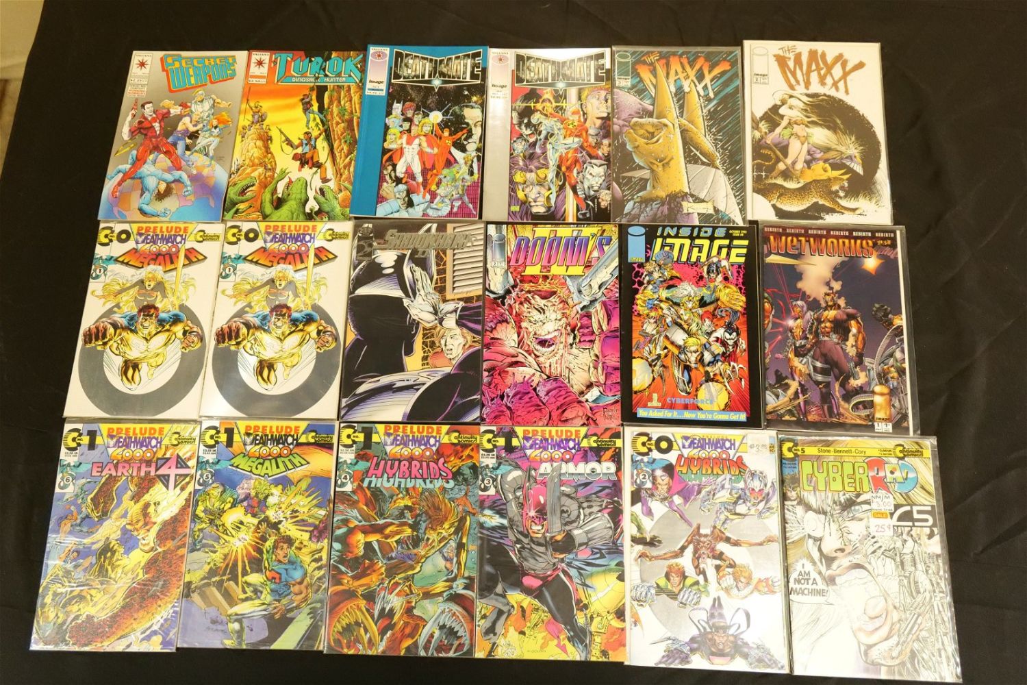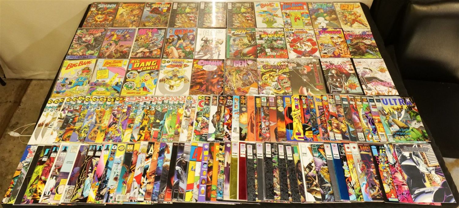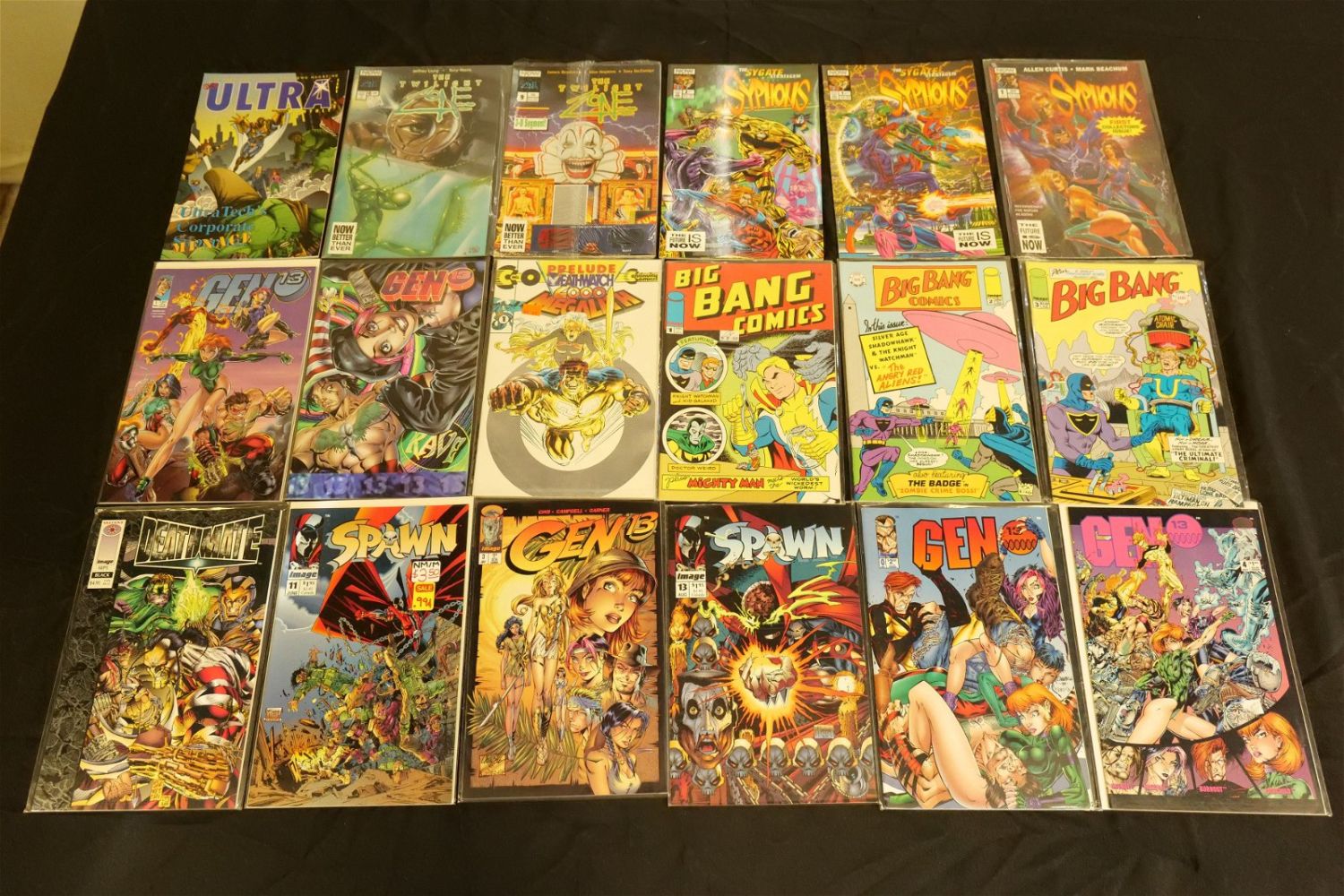 Large Lot of Independent Comics including Spawn, Gen 13, Ultraforce, Big Bang Comics, Astro City, and More. Short Box is approx. 2/3rds Full. All invoices must be paid within 24 hours of the sale. We offer multiple shipping options, please read the terms as they have changed. We also offer Pick-Ups Thursday, Friday, Saturday, and Monday immediately following the sale. BY APPOINTMENT ONLY. PLEASE READ THE NEW TERMS!!!