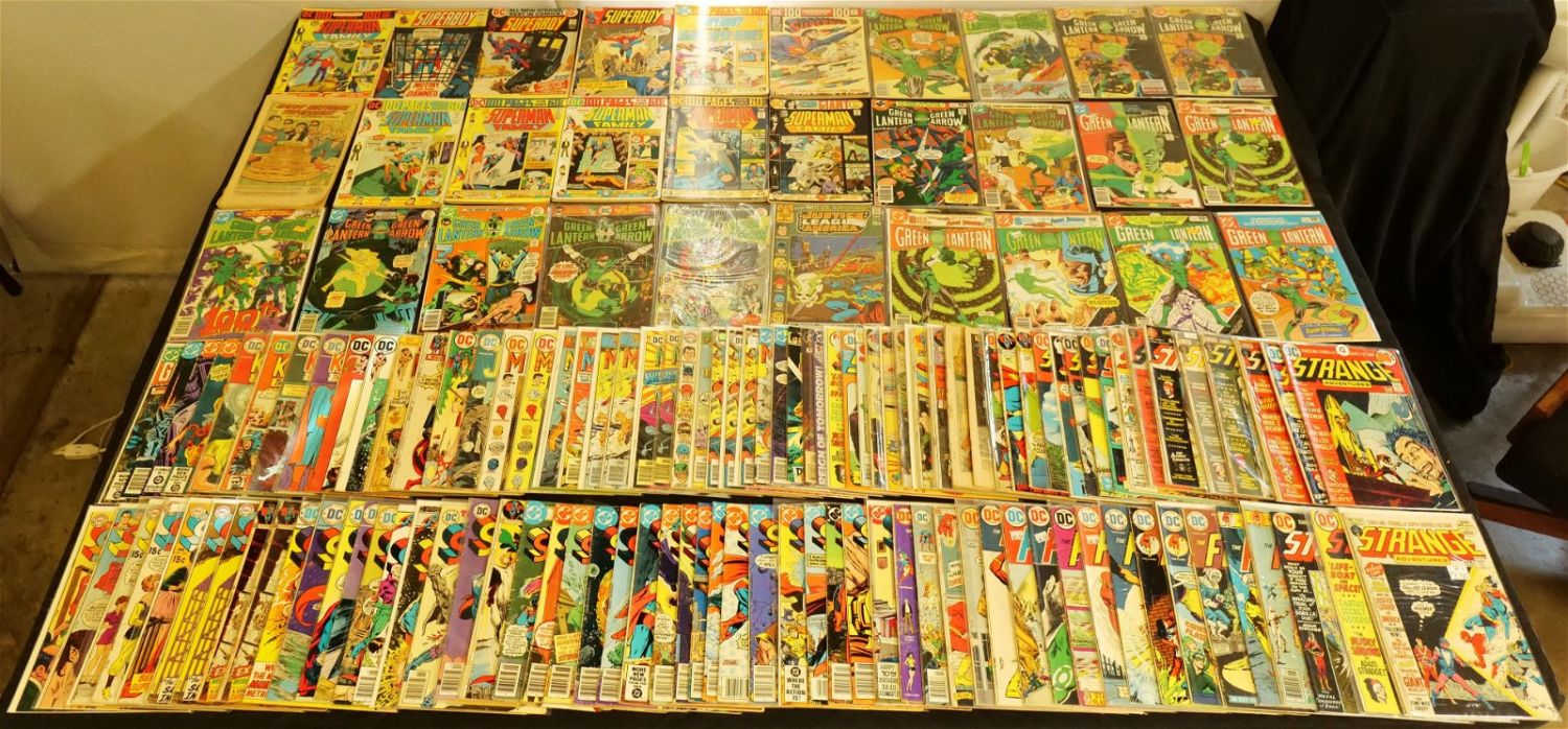 Short Box of Bronze Age DC Comics including The Flash, Green Lantern, Superboy, Superman, Kamandi, Strange Adventures and More. All invoices must be paid within 24 hours of the sale. We offer multiple shipping options, please read the terms as they have changed. We also offer Pick-Ups Thursday, Friday, Saturday, and Monday immediately following the sale. BY APPOINTMENT ONLY. PLEASE READ THE NEW TERMS!!!