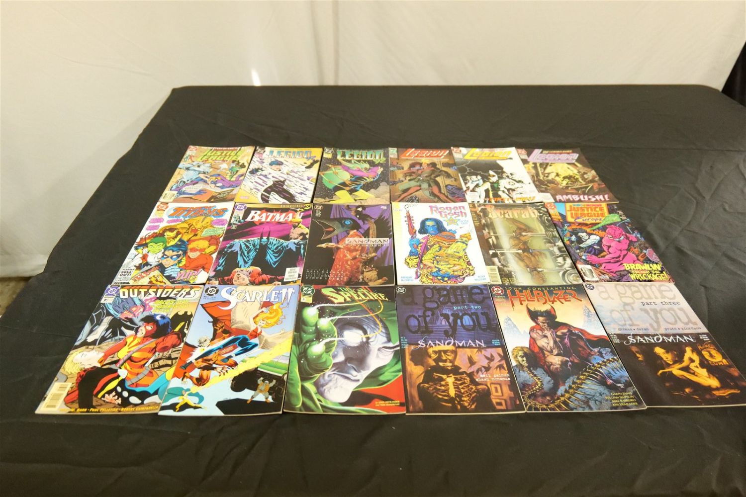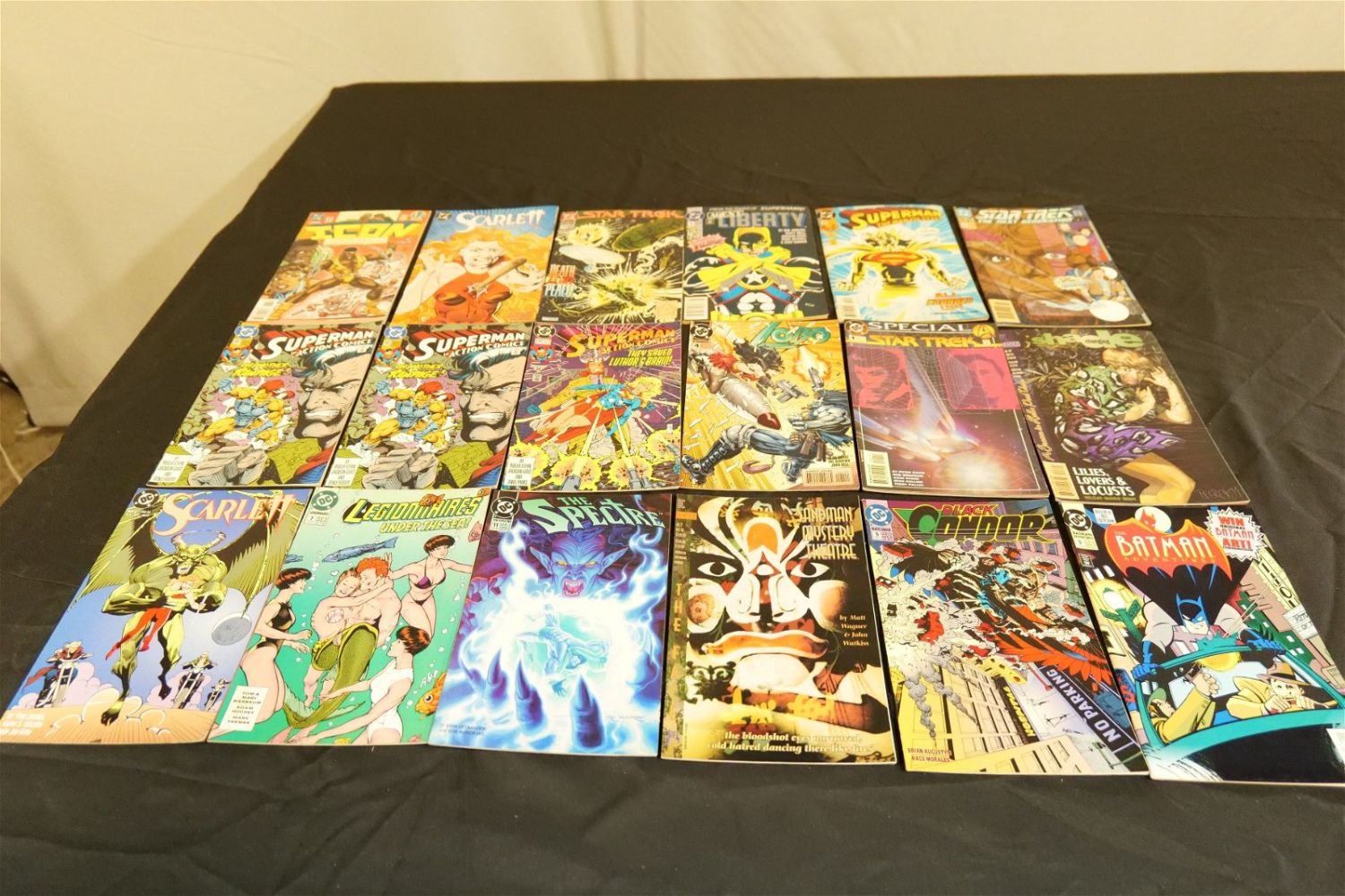 Large Lot of DC Comics including Justice League of America, Green Lantern Corps, Batman, Catwoman, Detective Comics, Star Trek, Lobo, and More. Approx 85% of a short box. All invoices must be paid within 24 hours of the sale. We offer multiple shipping options, please read the terms as they have changed. We also offer Pick-Ups Thursday, Friday, Saturday, and Monday immediately following the sale. BY APPOINTMENT ONLY. PLEASE READ THE NEW TERMS!!!