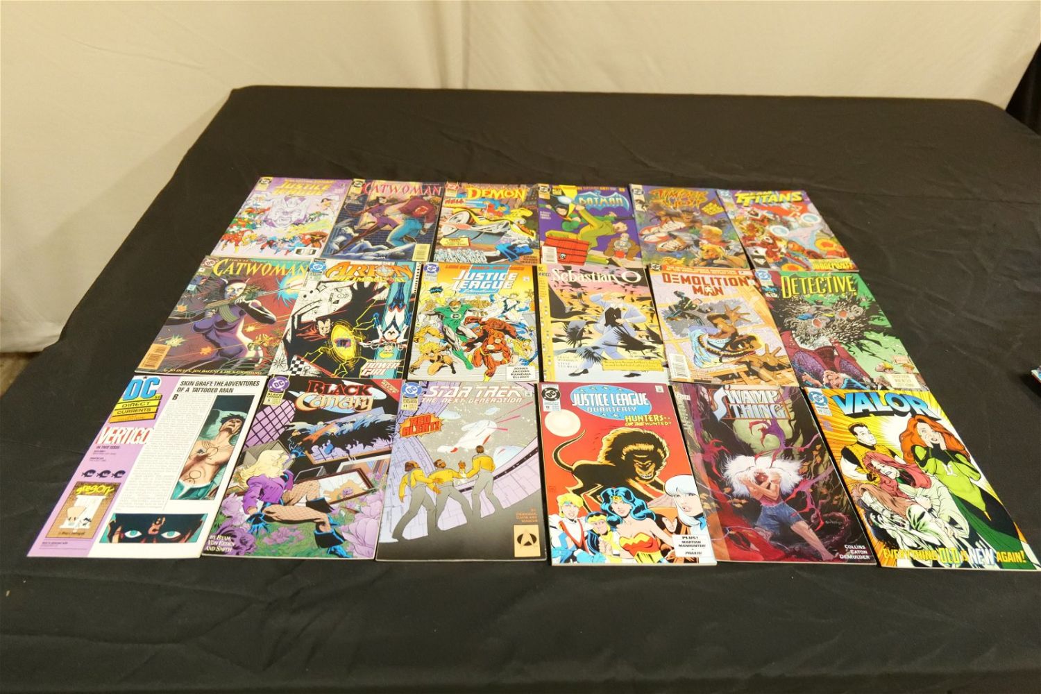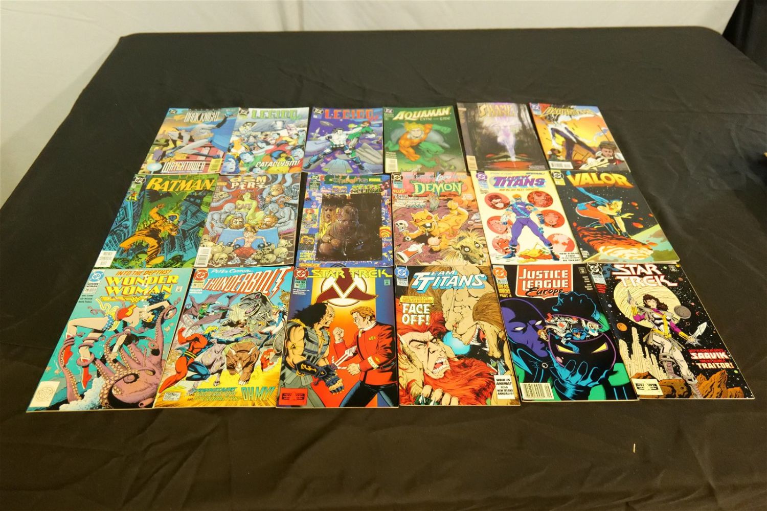 Lot of Mostly DC Comics including Batman, Aquaman, Star Trek, Justice League, Wonder Woman, Catwoman, Detective Comics, Swamp Thing and More. Approx. 1/2 Short Box. All invoices must be paid within 24 hours of the sale. We offer multiple shipping options, please read the terms as they have changed. We also offer Pick-Ups Thursday, Friday, Saturday, and Monday immediately following the sale. BY APPOINTMENT ONLY. PLEASE READ THE NEW TERMS!!!