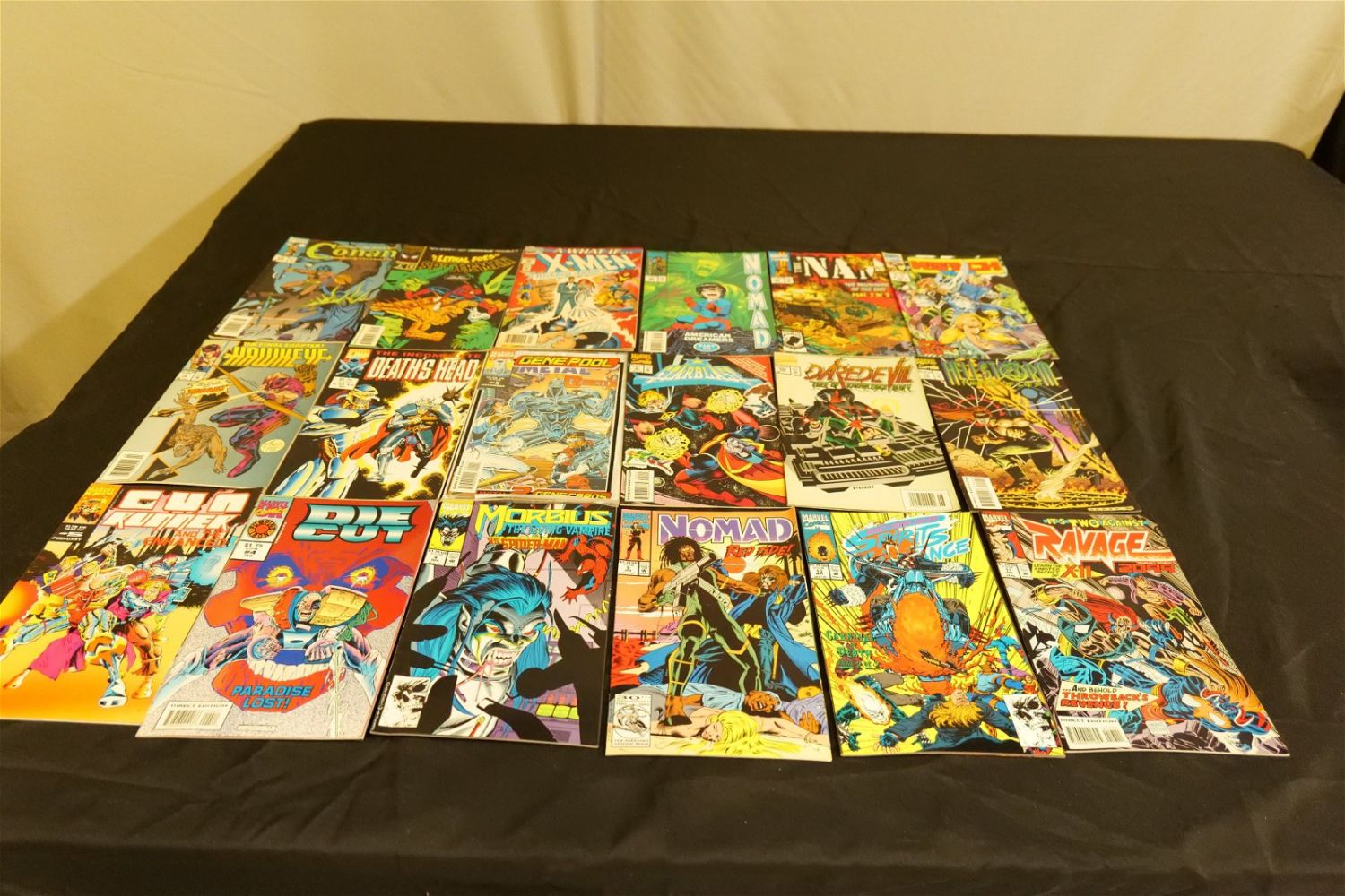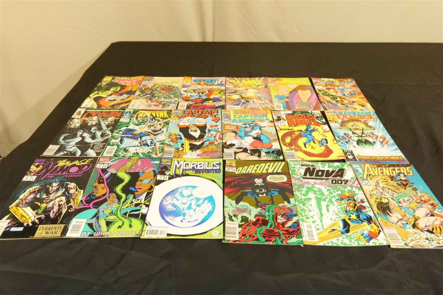 Large Lot of Marvel Comics including Warlock, Iron Man, Wolverine, The Uncanny X-Men, Captain America, Avengers, Daredevil and More. Approx. 85% Short Box. All invoices must be paid within 24 hours of the sale. We offer multiple shipping options, please read the terms as they have changed. We also offer Pick-Ups Thursday, Friday, Saturday, and Monday immediately following the sale. BY APPOINTMENT ONLY. PLEASE READ THE NEW TERMS!!!