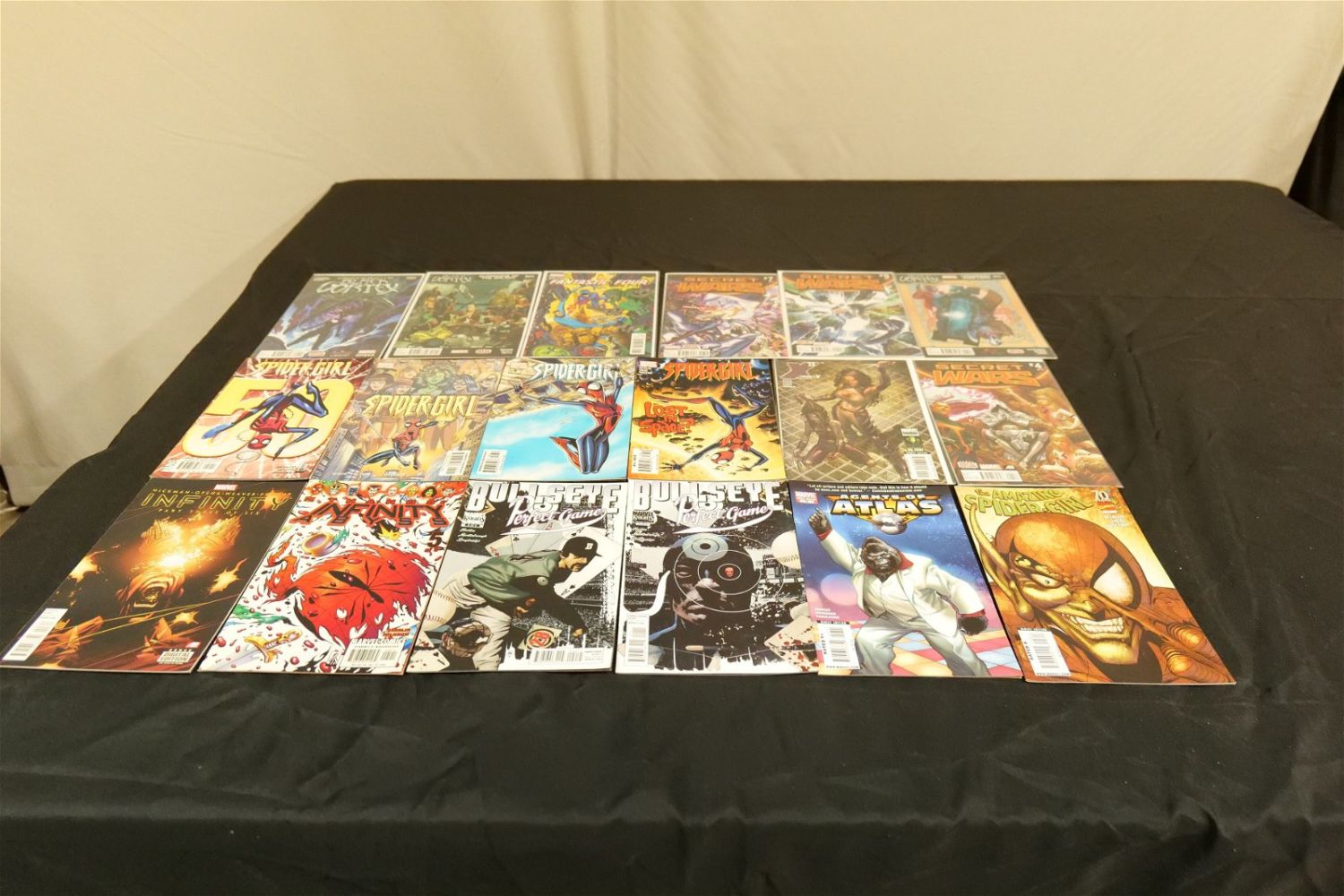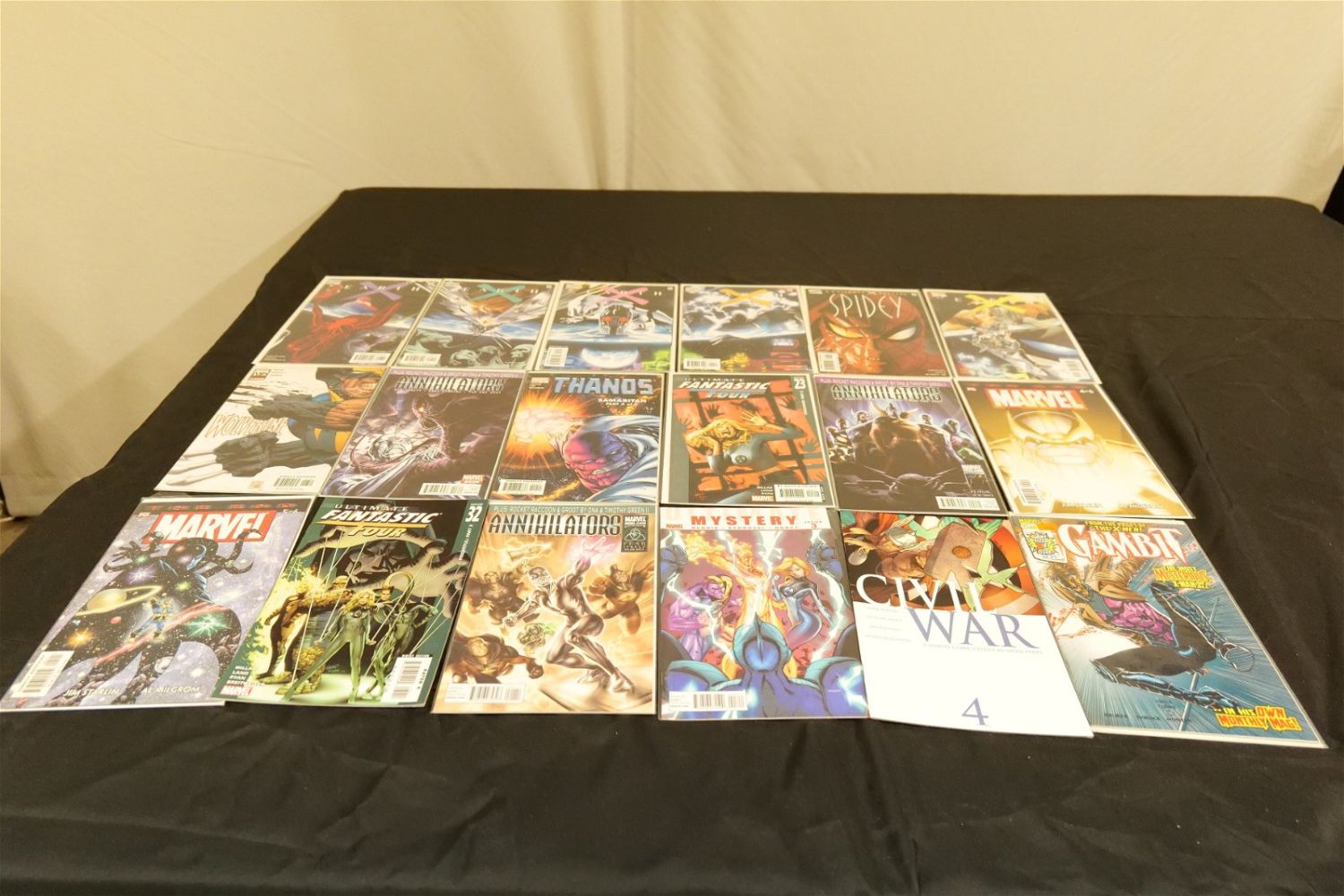 Short Box of Modern Marvel Comics with Complete Sets. Includes Earth X, Civil War, Secret Invasion, and More. Short Box is Full. All invoices must be paid within 24 hours of the sale. We offer multiple shipping options, please read the terms as they have changed. We also offer Pick-Ups Thursday, Friday, Saturday, and Monday immediately following the sale. BY APPOINTMENT ONLY. PLEASE READ THE NEW TERMS!!!