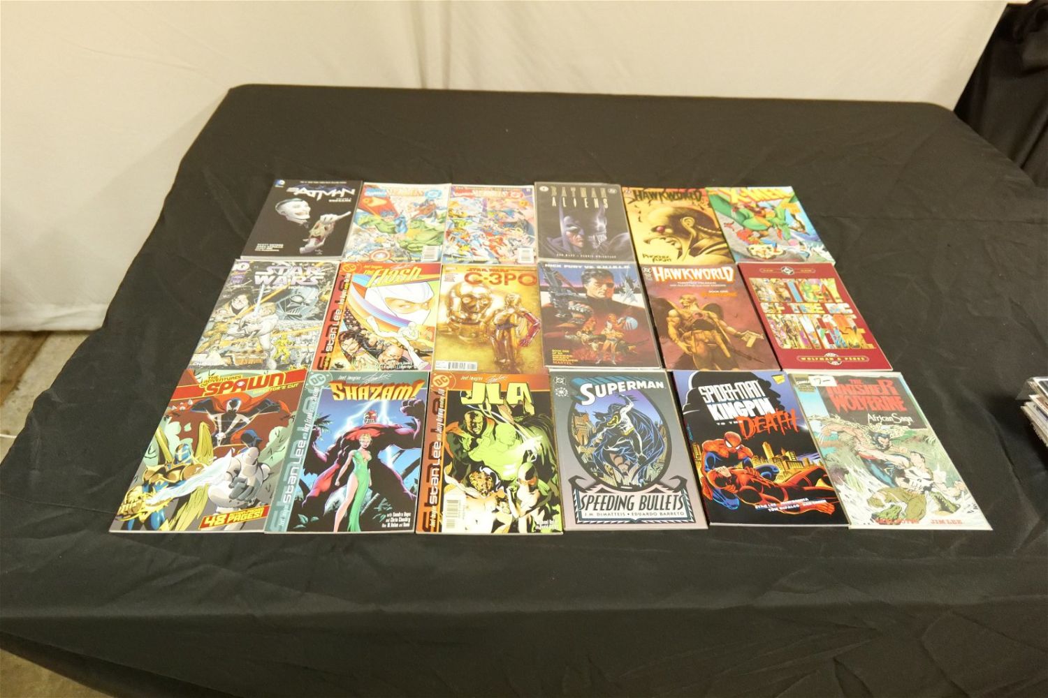 Short Box of Prestige Format and Graphic Novels. Including Spawn, Batman, Shazam, Star Wars, DC Versus Marvel, From Hell, X-Men and More. Short Box is Full. All invoices must be paid within 24 hours of the sale. We offer multiple shipping options, please read the terms as they have changed. We also offer Pick-Ups Thursday, Friday, Saturday, and Monday immediately following the sale. BY APPOINTMENT ONLY. PLEASE READ THE NEW TERMS!!!