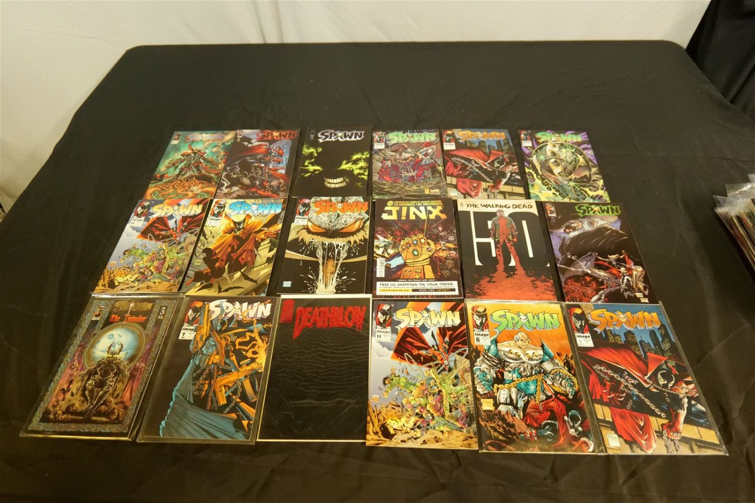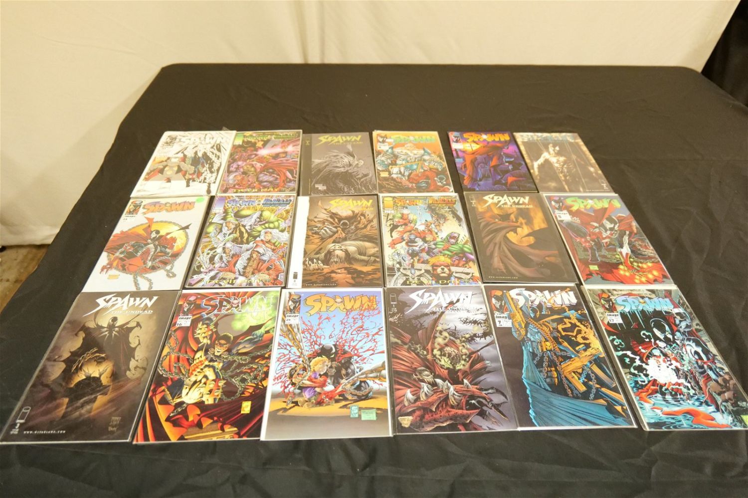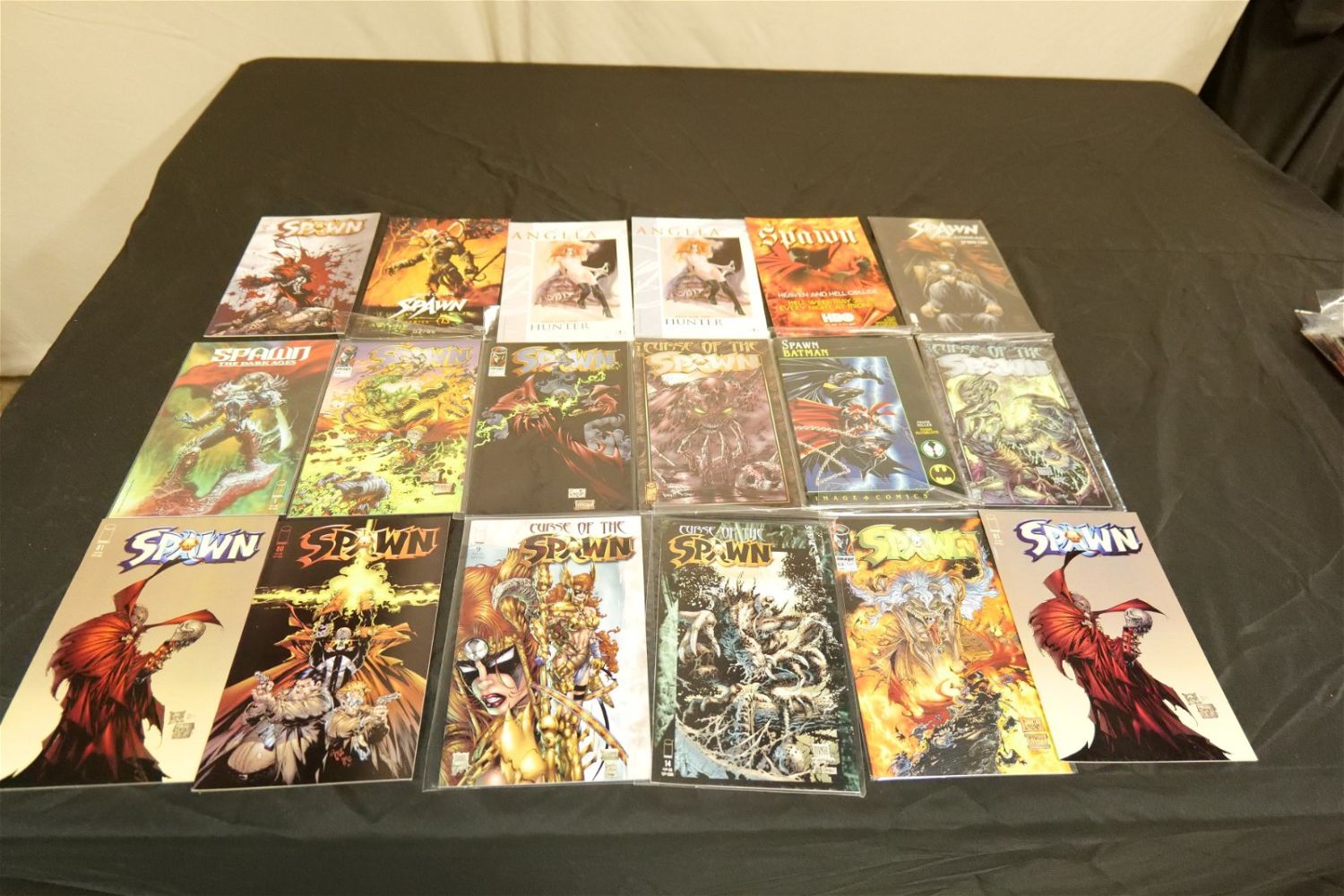 Short Box of Spawn Comics. Short Box is approx. 90% Full. All invoices must be paid within 24 hours of the sale. We offer multiple shipping options, please read the terms as they have changed. We also offer Pick-Ups Thursday, Friday, Saturday, and Monday immediately following the sale. BY APPOINTMENT ONLY. PLEASE READ THE NEW TERMS!!!