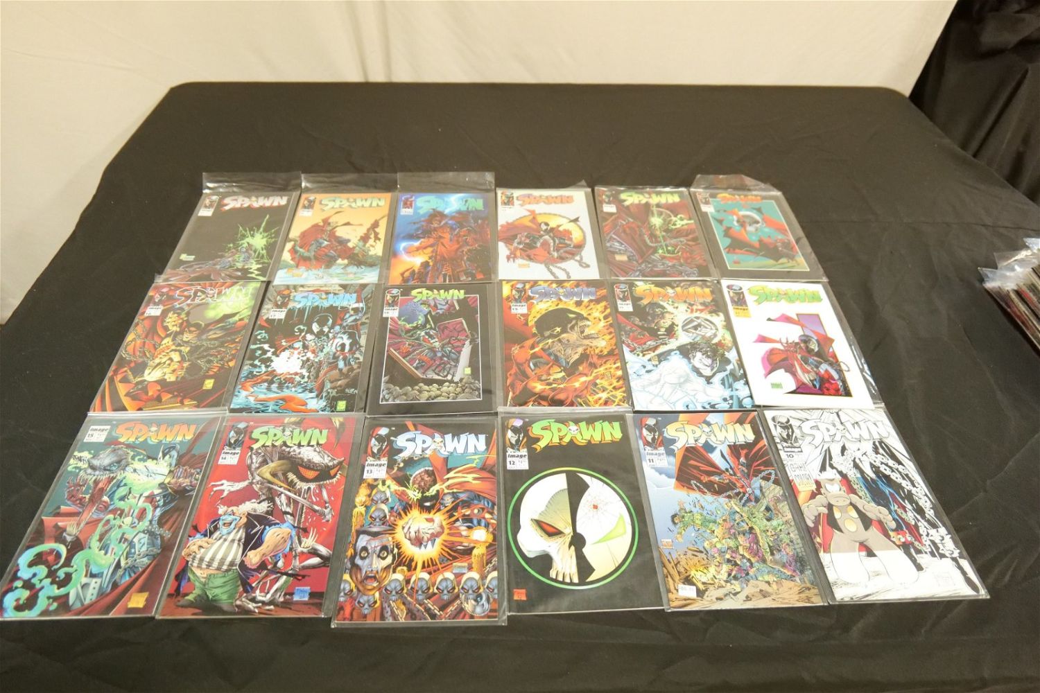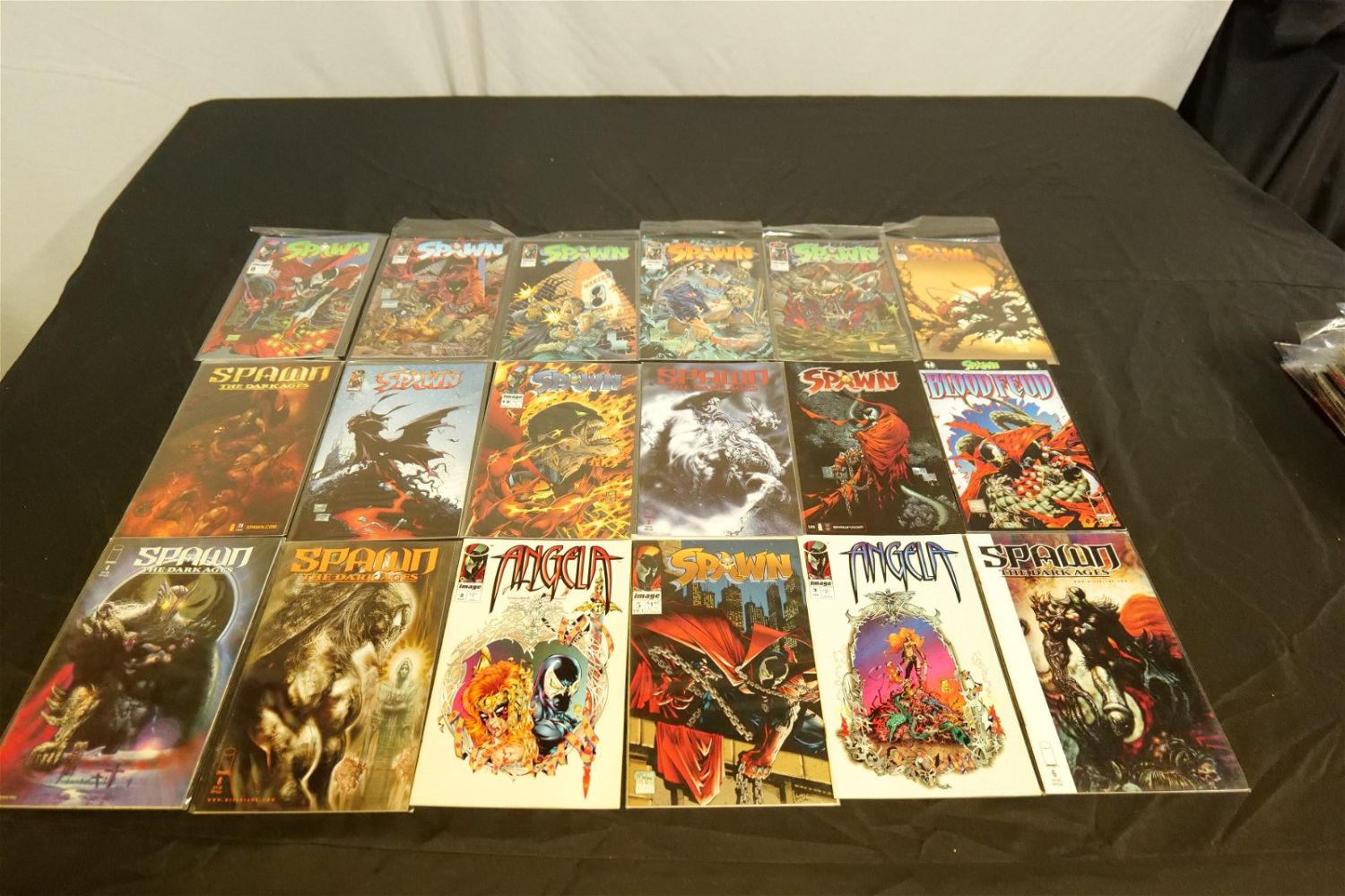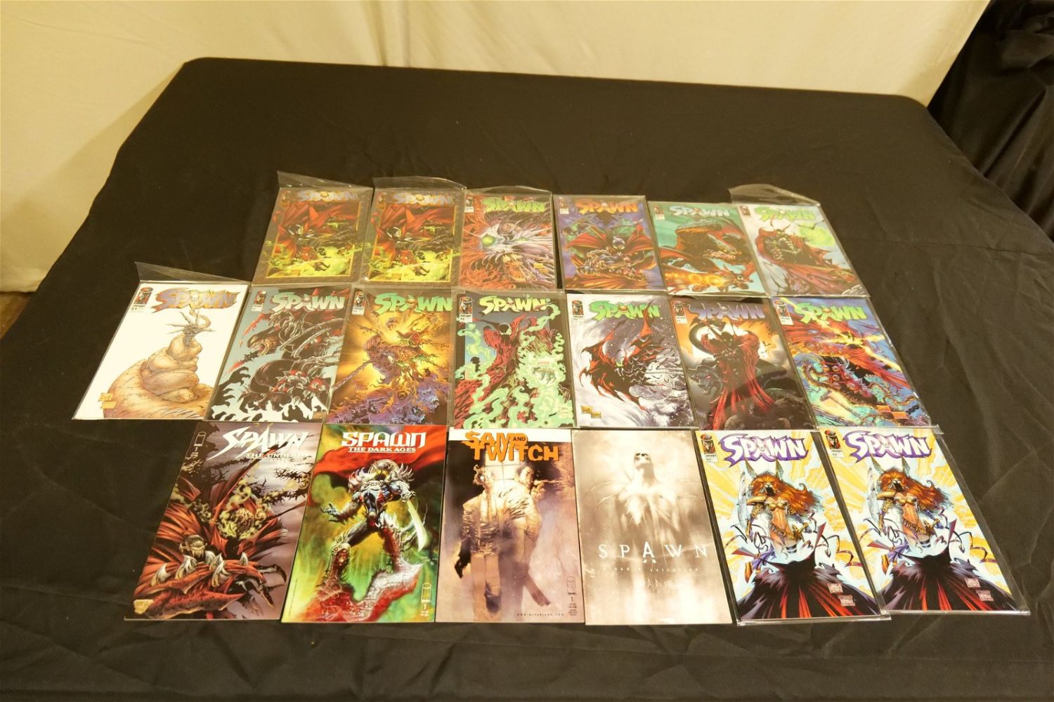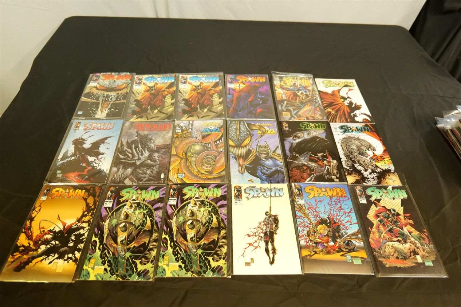 Short Box of Spawn Comics. Short Box is approx. 90% Full. All invoices must be paid within 24 hours of the sale. We offer multiple shipping options, please read the terms as they have changed. We also offer Pick-Ups Thursday, Friday, Saturday, and Monday immediately following the sale. BY APPOINTMENT ONLY. PLEASE READ THE NEW TERMS!!!
