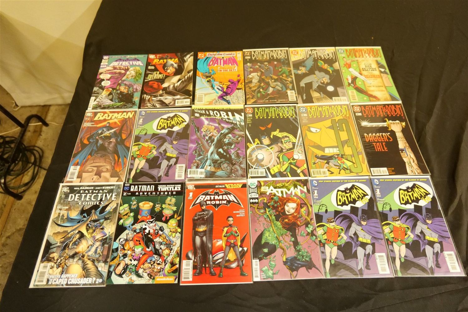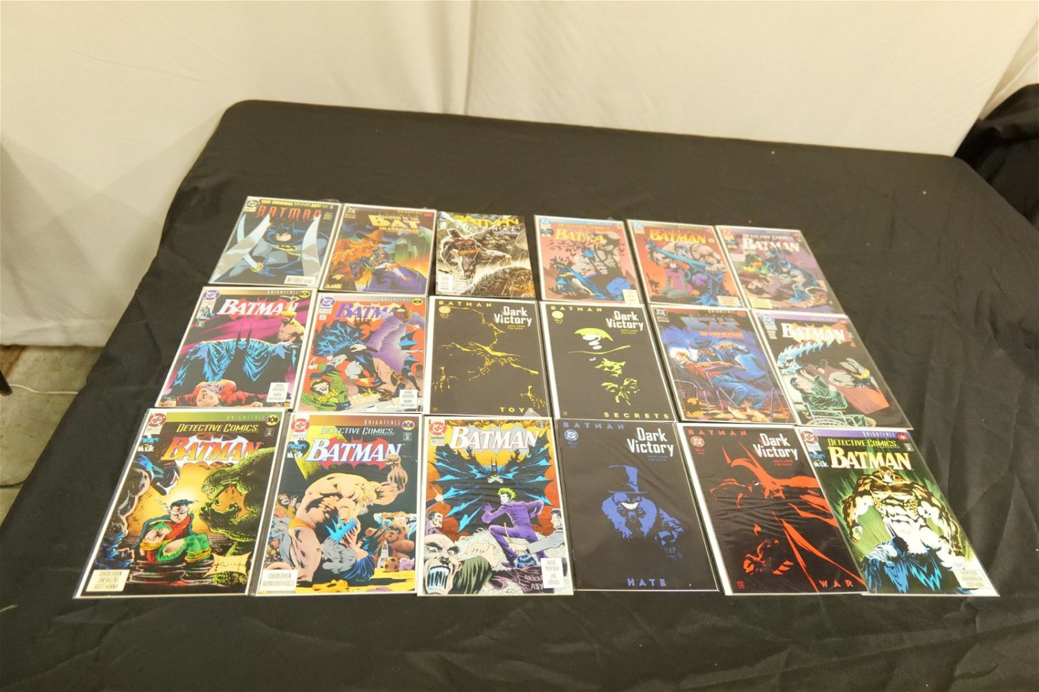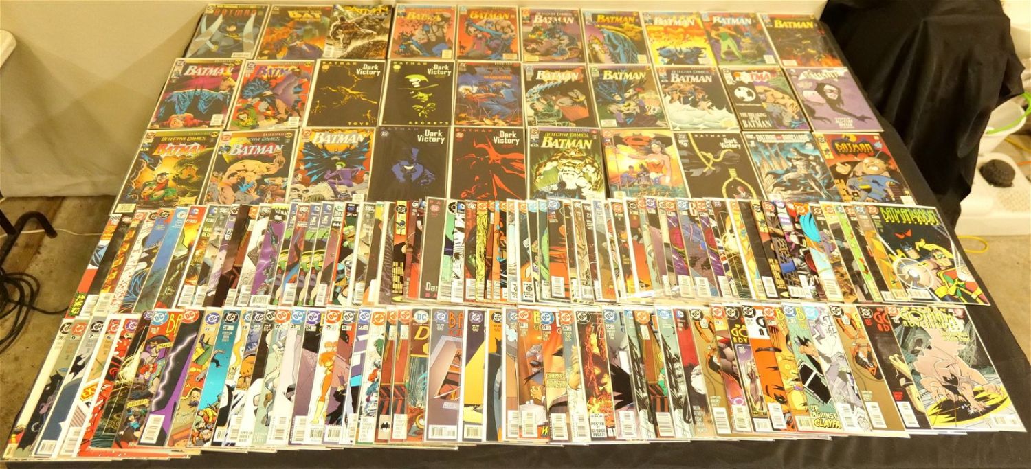 Short Box of Batman Comics from Bronze to Modern Age. Includes Knightfall, Shadow of the Bat, Dark Victory, Sword of Azrael, Detective Comics, Batman & Robin, Batman Beyond, Batman Gotham Adventures, and More. Short Box is Full. All invoices must be paid within 24 hours of the sale. We offer multiple shipping options, please read the terms as they have changed. We also offer Pick-Ups Thursday, Friday, Saturday, and Monday immediately following the sale. BY APPOINTMENT ONLY. PLEASE READ THE NEW TERMS!!!