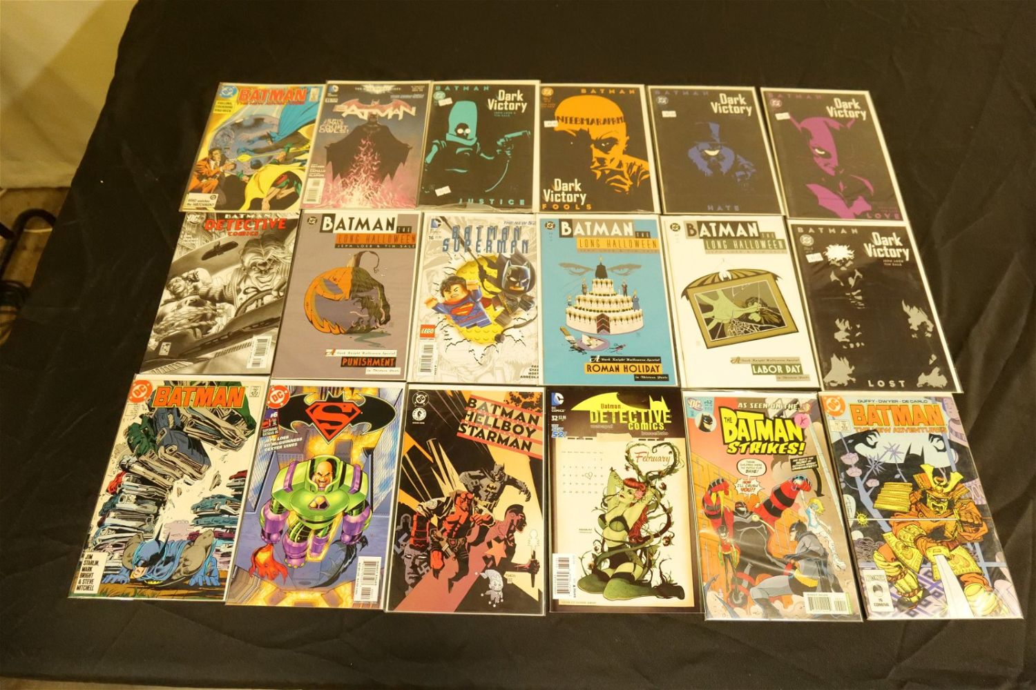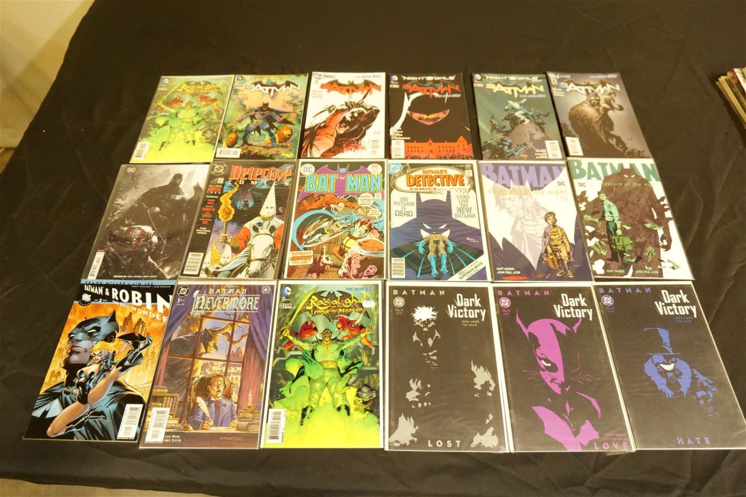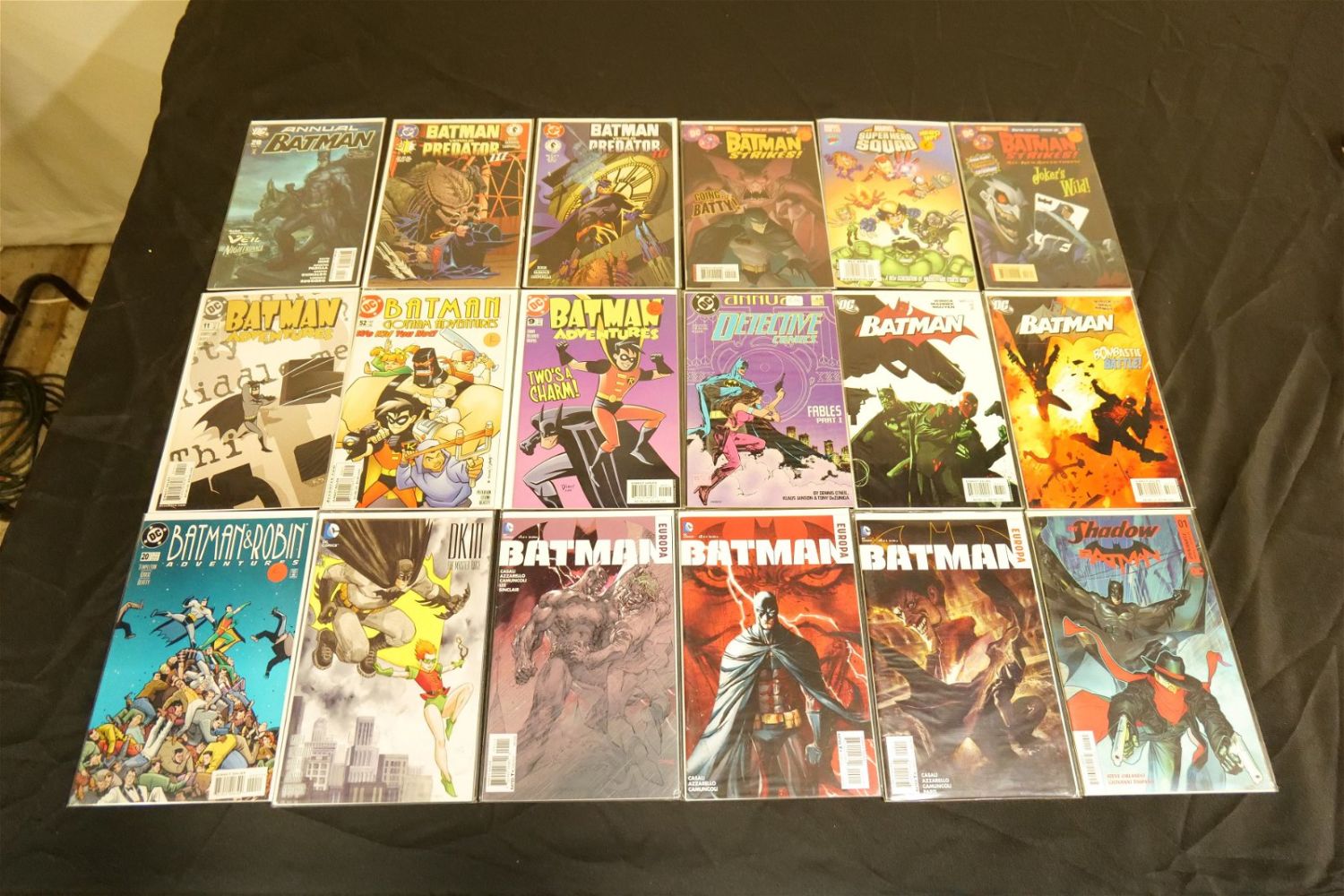 Short Box of Modern Batman Comics including Batman, Batman & Robin, Batman Family, Detective Comics, Dark Knight Returns, Long Halloween, Dark Victory, Batman vs. Predator, and More. Short Box is Full. All invoices must be paid within 24 hours of the sale. We offer multiple shipping options, please read the terms as they have changed. We also offer Pick-Ups Thursday, Friday, Saturday, and Monday immediately following the sale. BY APPOINTMENT ONLY. PLEASE READ THE NEW TERMS!!!