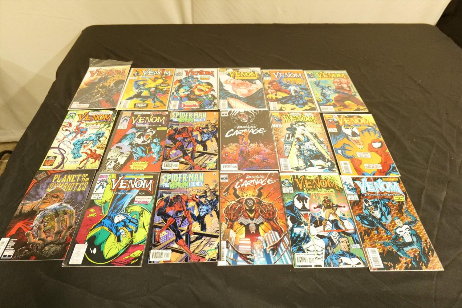 Large Lot of Marvel Venom Comics. Including Venom Titles such as Lethal Protector, The Enemy Within, What If Venom, Funeral Pyre, Venomized, Venomverse, Absolute Carnage, and More. Approx. 73 Comics. All invoices must be paid within 24 hours of the sale. We offer multiple shipping options, please read the terms as they have changed. We also offer Pick-Ups Thursday, Friday, Saturday, and Monday immediately following the sale. BY APPOINTMENT ONLY. PLEASE READ THE NEW TERMS!!!