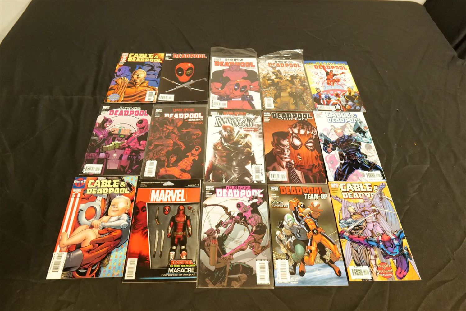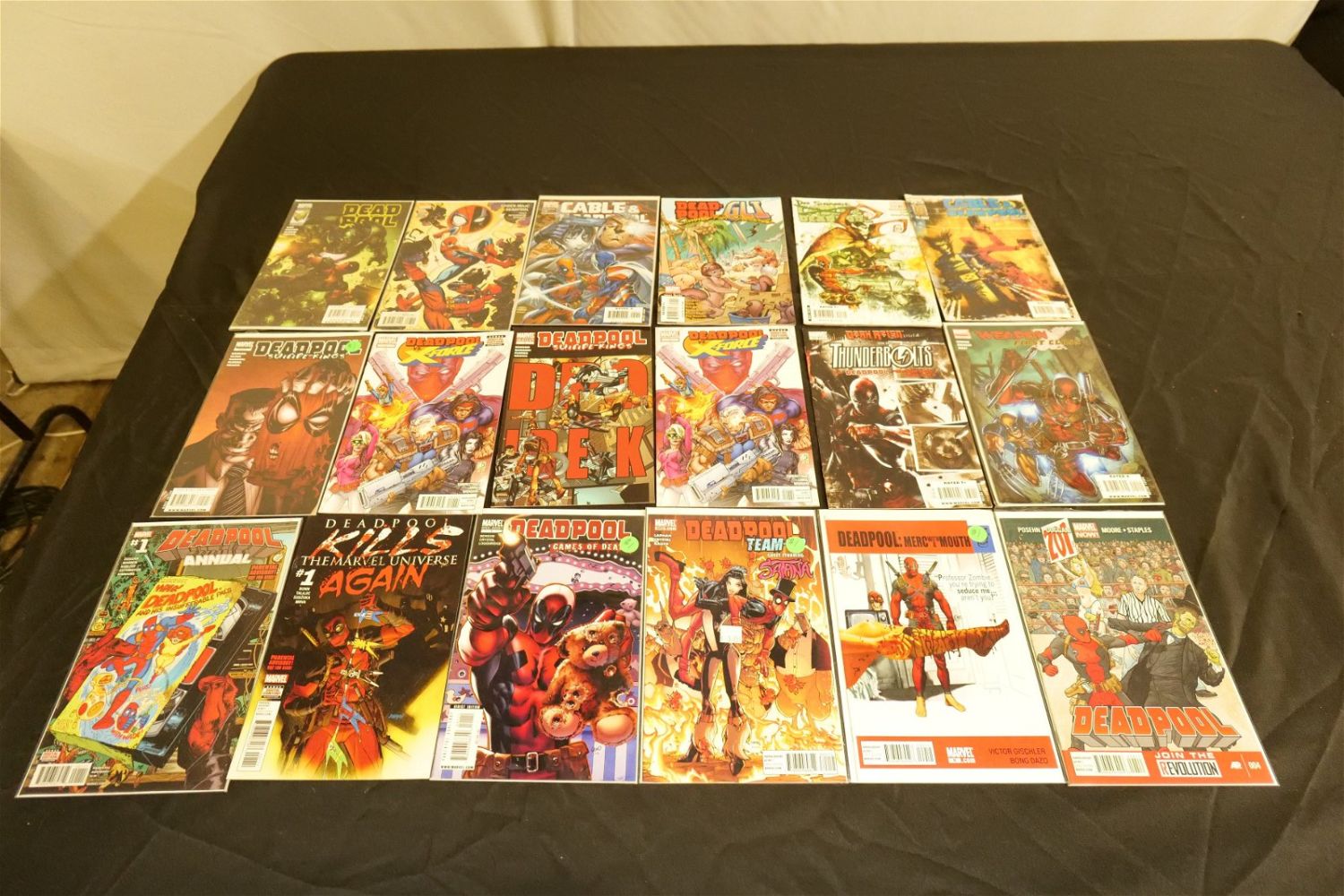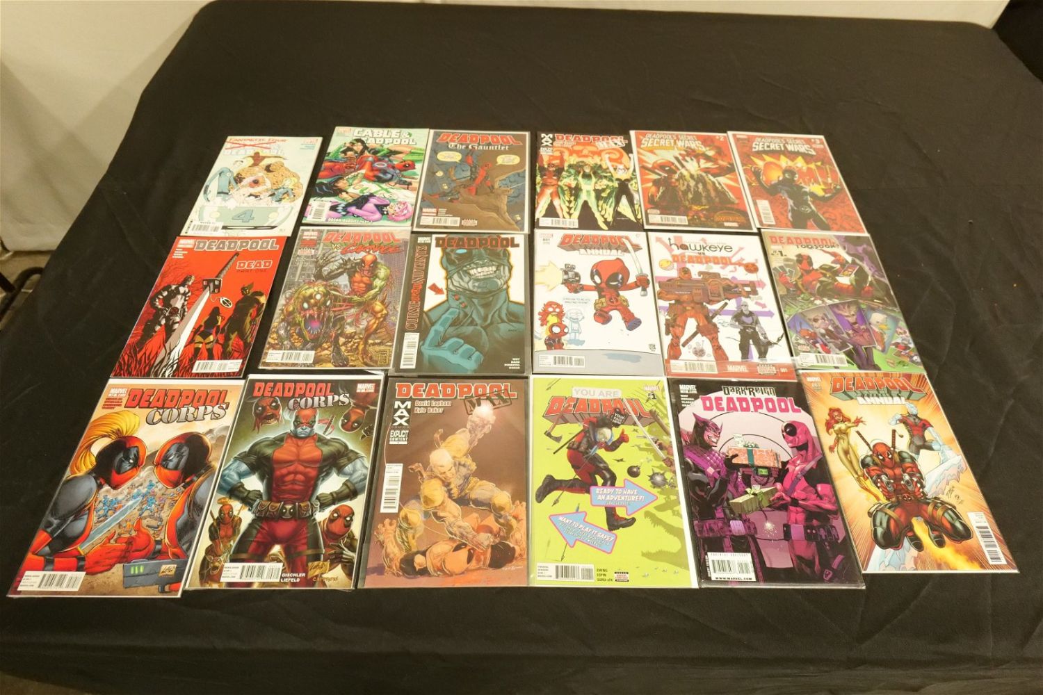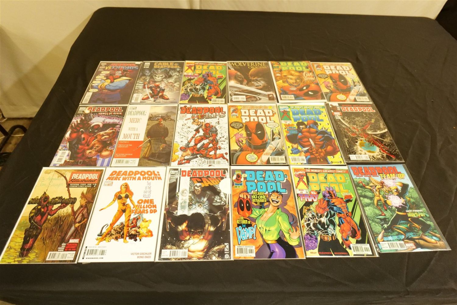 Large Lot of Deadpool Comics. Approx. 87 Comics. All invoices must be paid within 24 hours of the sale. We offer multiple shipping options, please read the terms as they have changed. We also offer Pick-Ups Thursday, Friday, Saturday, and Monday immediately following the sale. BY APPOINTMENT ONLY. PLEASE READ THE NEW TERMS!!!