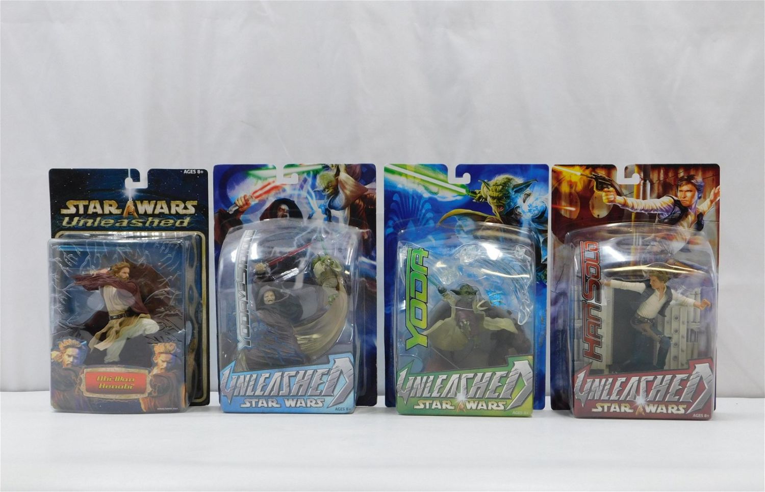 Lot of 4 Star Wars Unleashed Action Figures including Obi-Wan Kenobi, Yoda vs. Sidious, Yoda, and Han Solo. All new in packages. All invoices must be paid within 24 hours of the sale. There are 3 Shipping Options. Please read the Terms of Sale and Shipping Options in the Terms. If you don’t read the terms, you will be upset because you don’t know what is happening. Local pickups are at our Monmouth Junction location on Thursday, Friday, Saturday and Monday ONLY! All pickups are by appointment only. Any condition issues will be listed in the description. Please read the terms for full information.