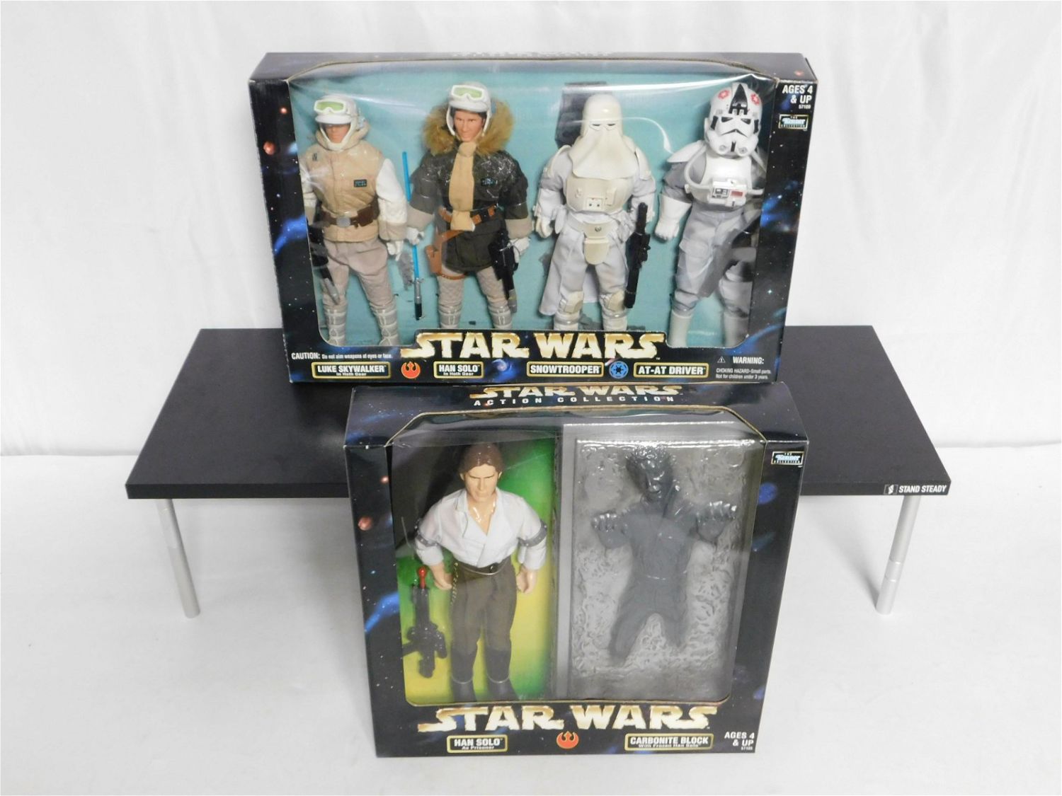 Lot of 2 Star Wars 12" Kenner Action Collection Series Figure Sets. Including Han Solo as Prisoner & Carbonite Block – Plastic has a tear on top edge and 4 Pack with Luke Skywalker in Hoth Gear, Han Solo in Hoth Gear, Snowtrooper, and AT-AT Driver . All New in Box. All invoices must be paid within 24 hours of the sale. There are 3 Shipping Options. Please read the Terms of Sale and Shipping Options in the Terms. If you don’t read the terms, you will be upset because you don’t know what is happening. Local pickups are at our Monmouth Junction location on Thursday, Friday, Saturday and Monday ONLY! All pickups are by appointment only. Any condition issues will be listed in the description. Please read the terms for full information.